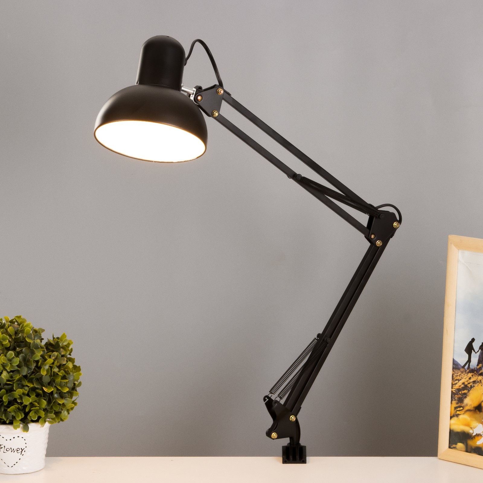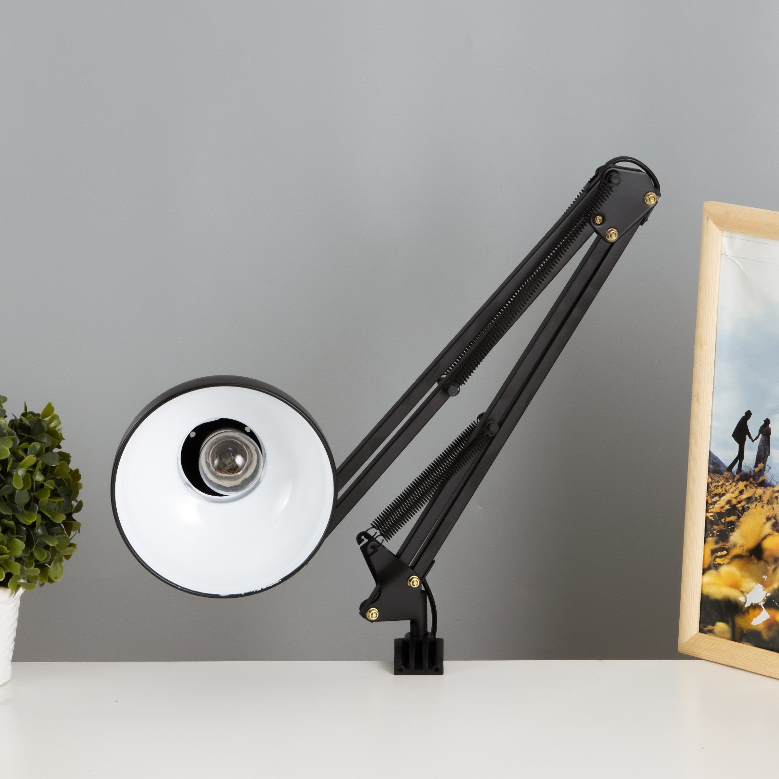 Лампа настольная на шарнире 800 крус, чёрная e27 40w risalux. Классический настольный светильник с шарнирным креплением идеально подходит для создания уютной и функциональной рабочей зоны. С высотой 84 см и прочным чёрным металлическим основанием, он легко устанавливается на столе и обеспечивает необходимое освещение для учебы или работы. Оснащённый цоколем E27, этот светильник поддерживает лампы мощностью до 40 Вт, что делает его универсальным решением для различных задач. Особенности Металлическое основание обеспечивает надёжность и стильный внешний вид.Конусный рассеиватель направляет свет вниз, создавая комфортные условия для чтения и работы.Управление осуществляется с помощью выключателя на проводе для удобства использования.Крепление на струбцине позволяет легко регулировать положение светильника, адаптируя его под ваши потребности.Создайте идеальную атмосферу Этот светильник не только освещает пространство, но и придаёт вашему рабочему месту стильный вид. Он станет отличным выбором для студентов и профессионалов, обеспечивая комфортные условия для работы и учёбы. Выберите этот светильник, чтобы сделать своё пространство более функциональным и привлекательным! Тип питания:От сети 220 В|Вид лампы:Накаливания|Количество ламп:1|Цоколь:E27|Высота, см:84|Мощность, Вт:40|Гарантийный срок, мес.:24|Мощность на цоколь, Вт:40|Вид:Лампа|Материал основания:Металл|Цвет основания:Чёрный|Тип рассеивателя:Плафон|Тип крепления:На струбцине|Оттенок рассеивателя:Тёмные тона|Материал рассеивателя:Металл|Управление светильником:С выключателем на проводе|Вид:Классический|Форма рассеивателя:Конусный|Направление рассеивателя:Вниз|Особенность стиля:Школьный|Цвет рассеивателя:Чёрный|Тип питания:От сети 220 В|Тип источника освещения:Лампа не в комплекте|Страна:Китай  развернуть описание ▼