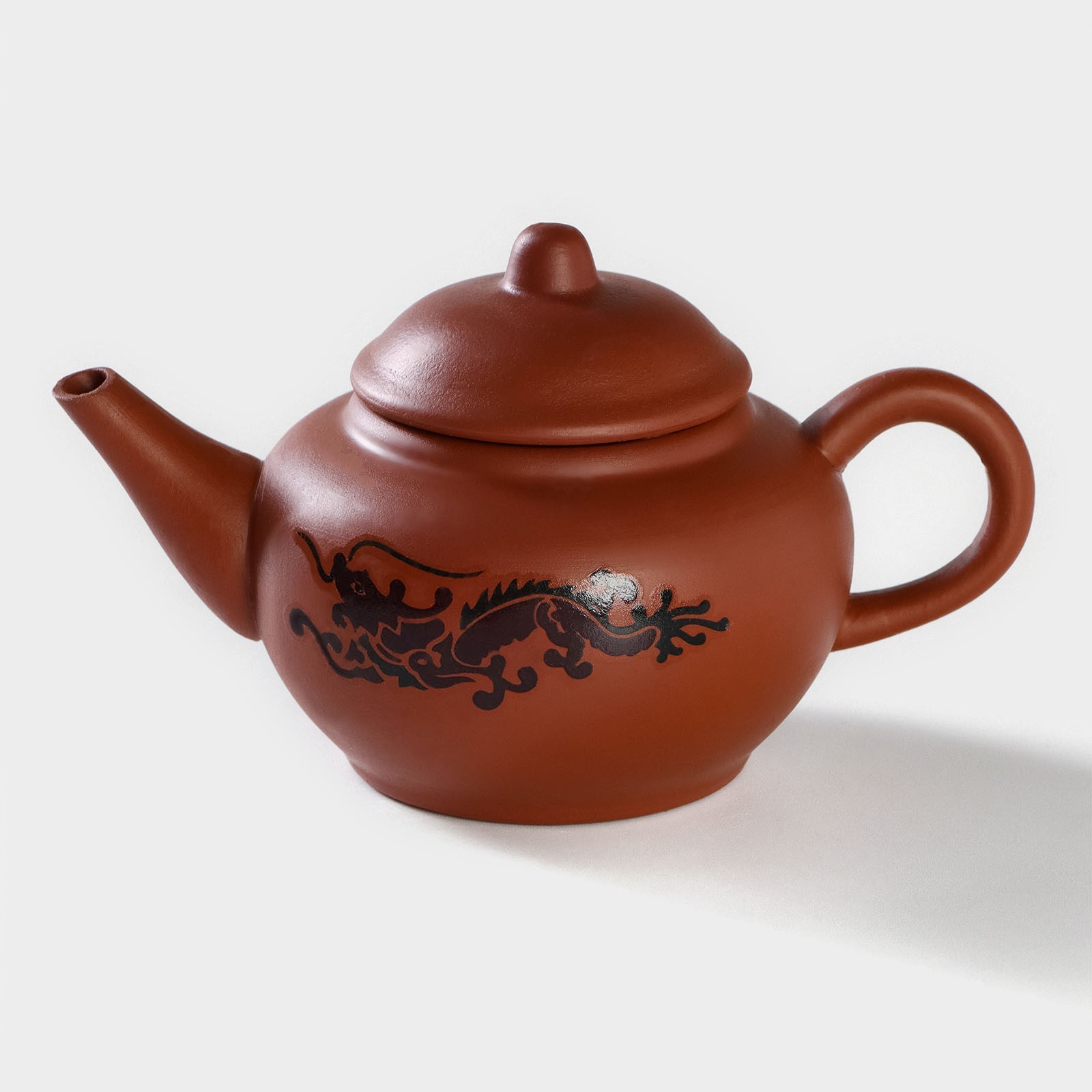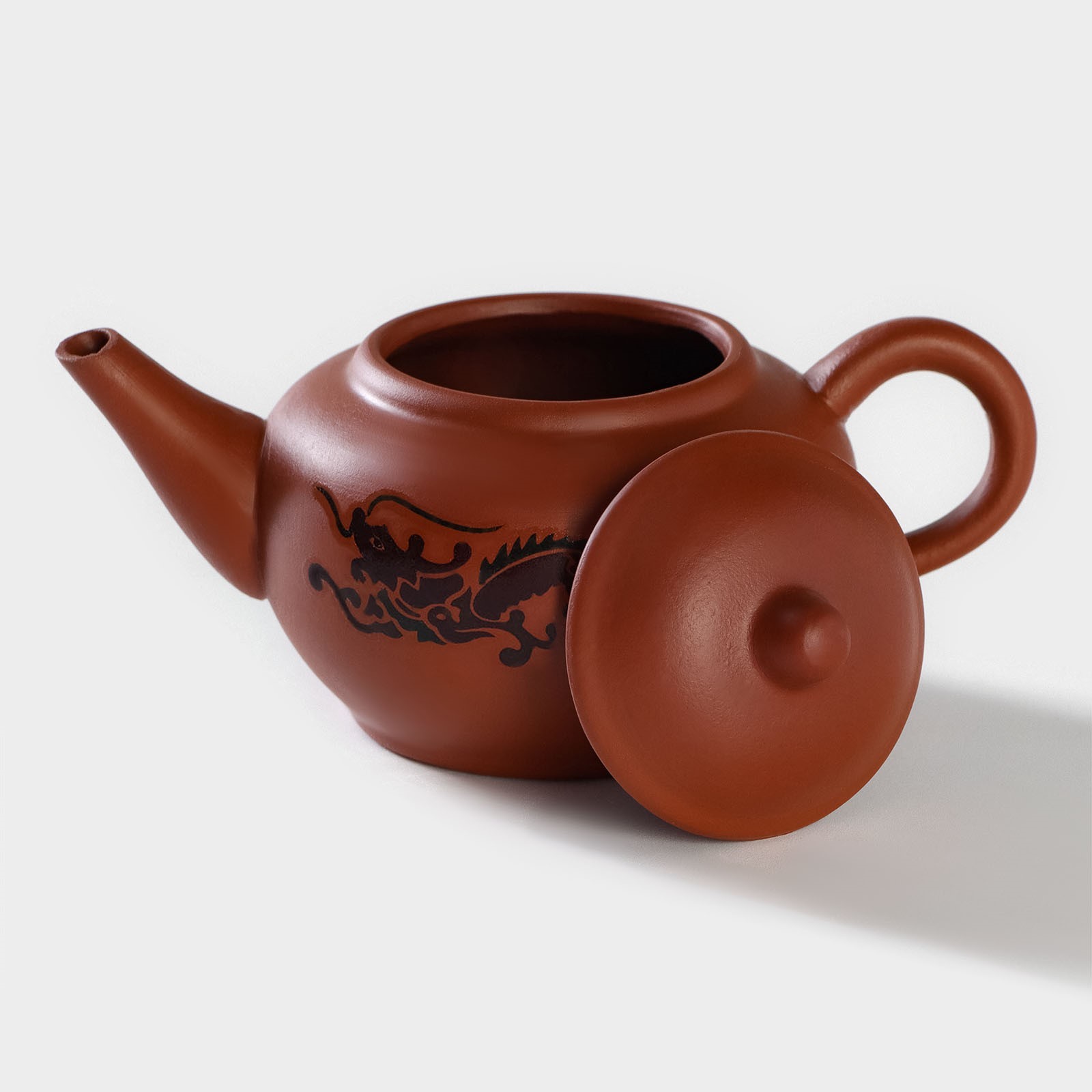 Набор для чайной церемонии керамический «дракон», 5 предметов: 4 пиалы 25 мл, чайник 200 мл, цвет коричневый