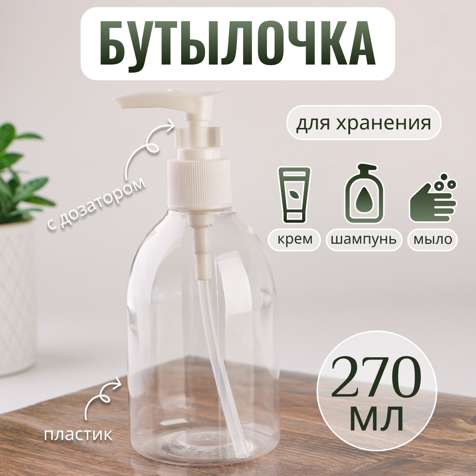Бутылочка для хранения, с дозатором, 270 мл, цвет белый/прозрачный