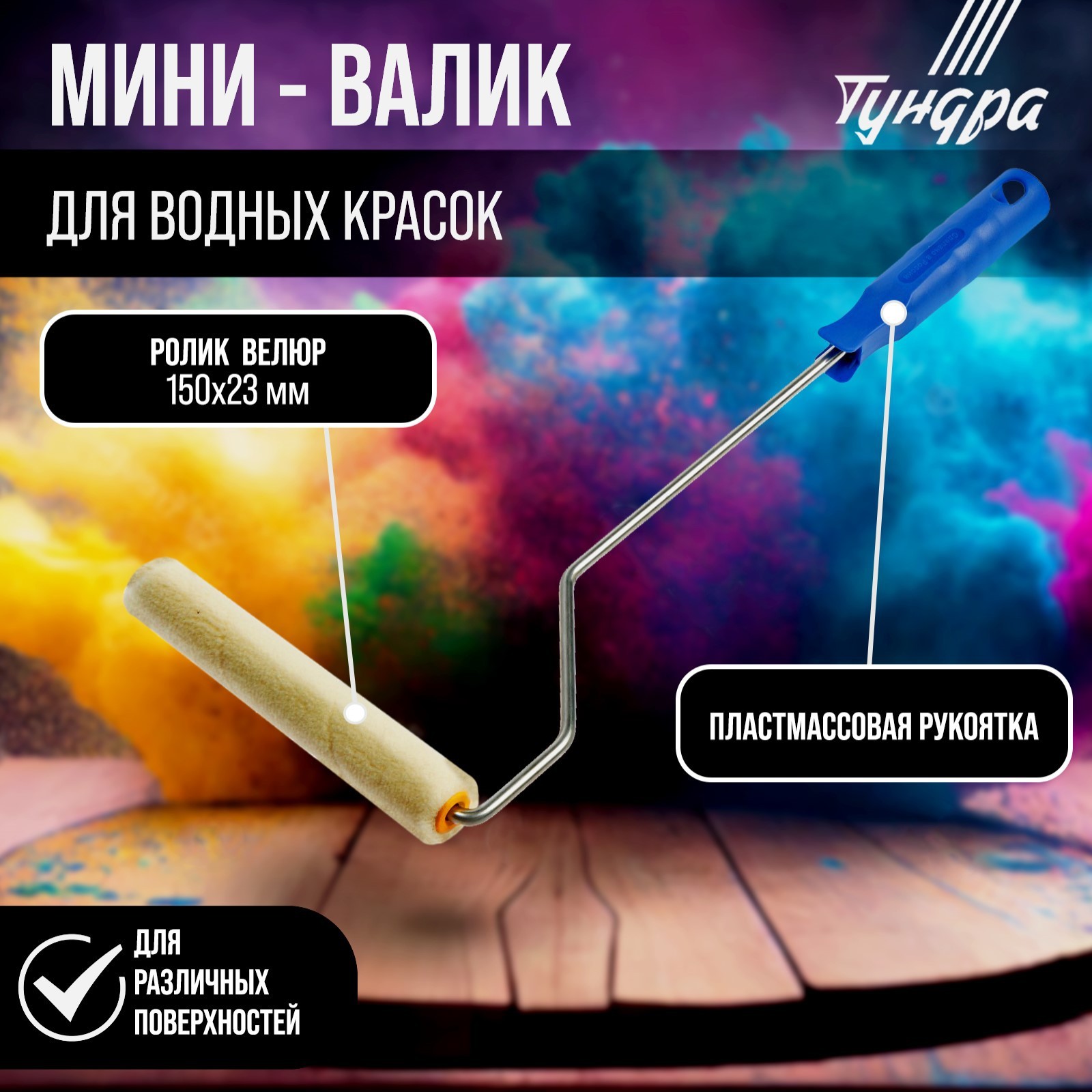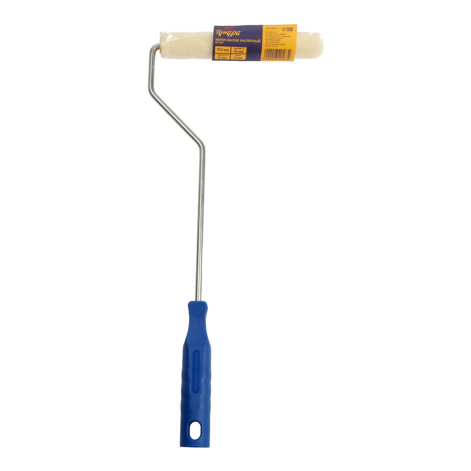Мини-валик тундра, велюр, 150 мм, рукоятка D=6 мм, D=15 мм, ворс 5 мм
