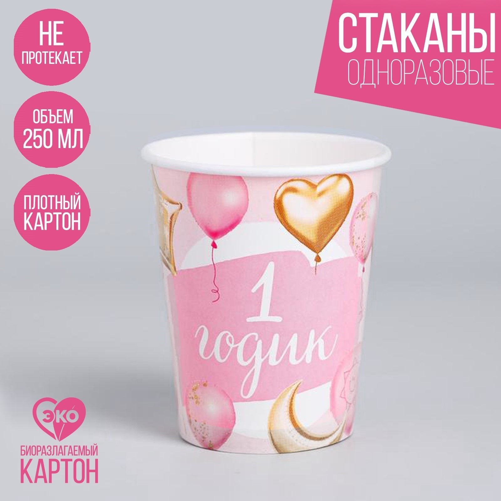 Стакан одноразовый бумажный "1 годик малышка", 250мл.