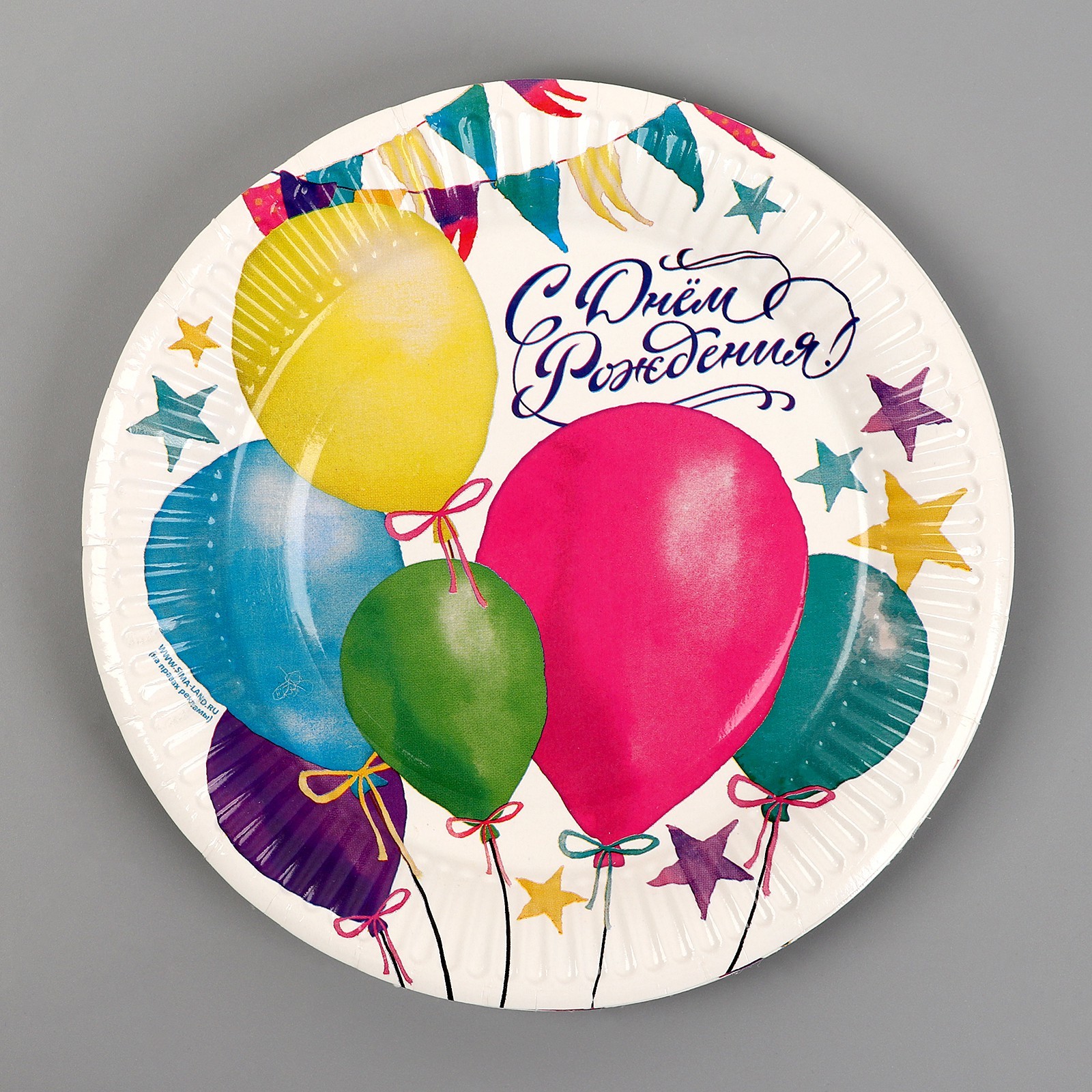 Тарелка одноразовая бумажная "шарики" (18 см)