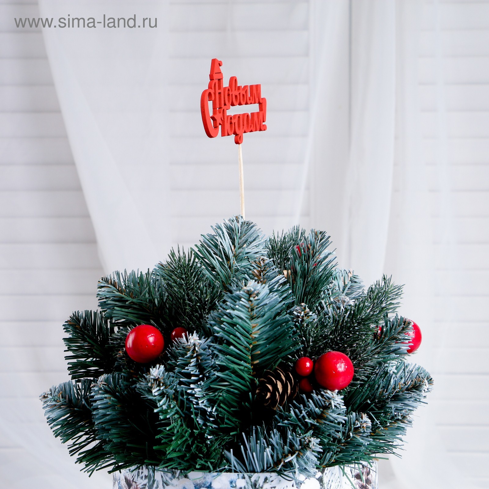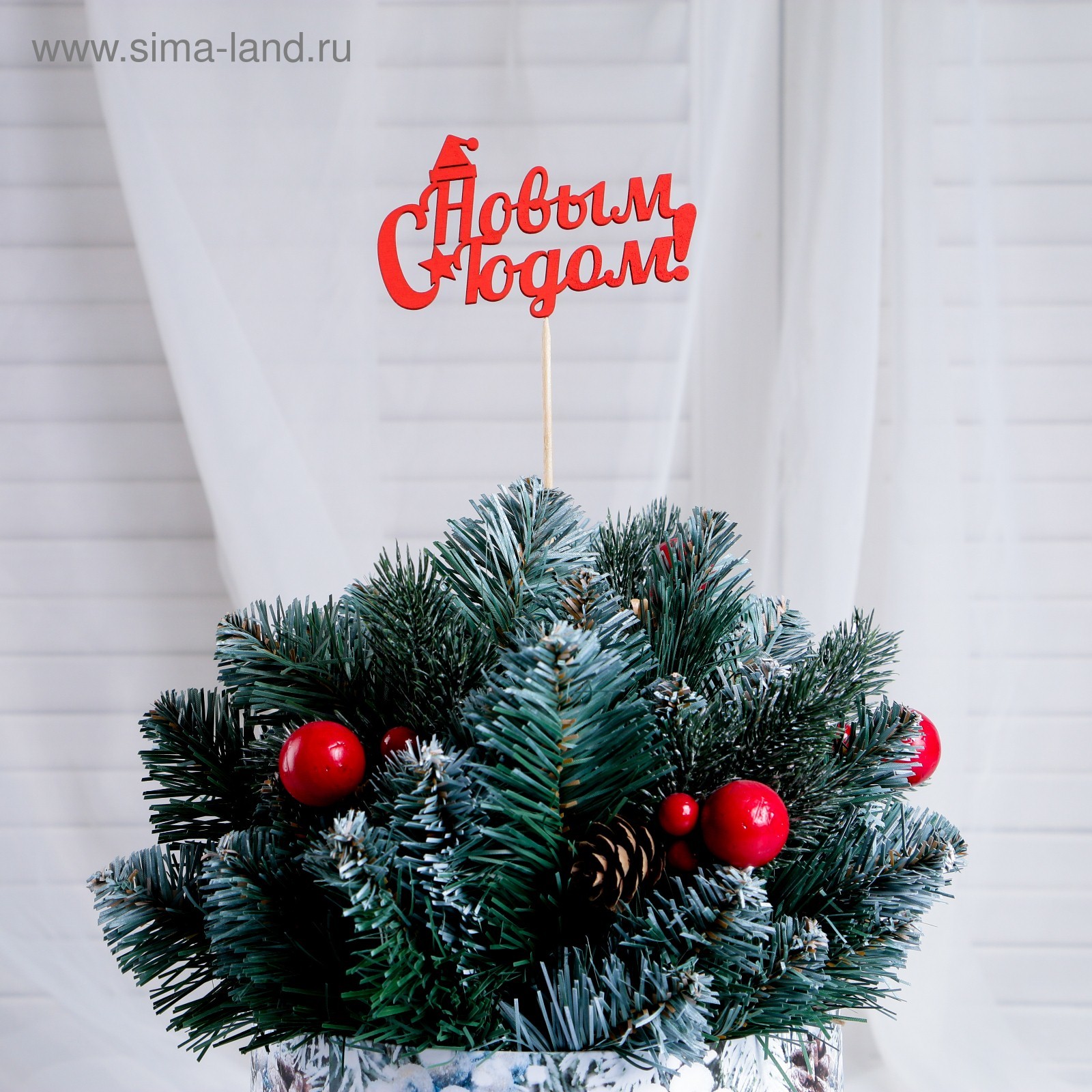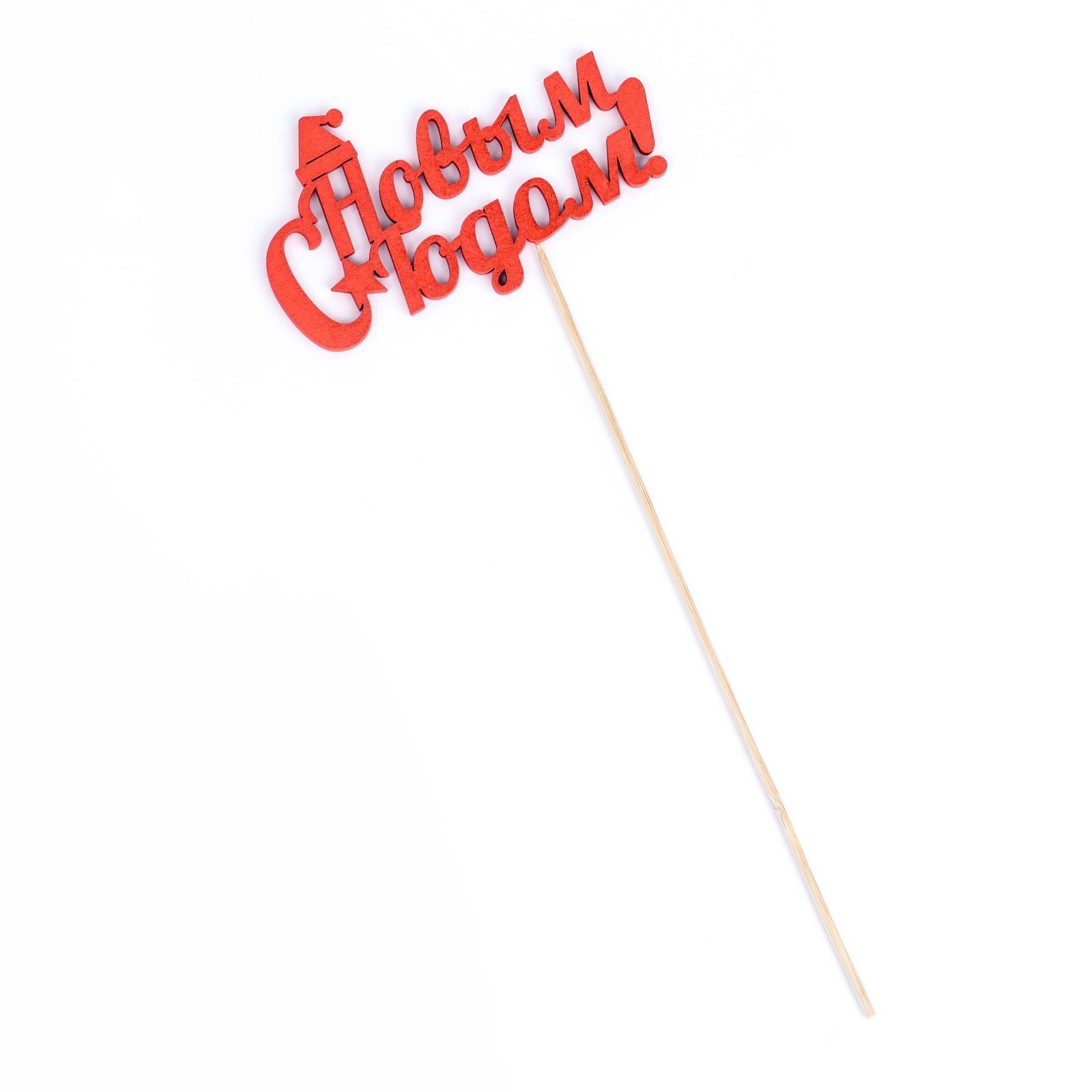 Топпер "с новым годом, с колпаком", 10х6см, красный дарим красиво