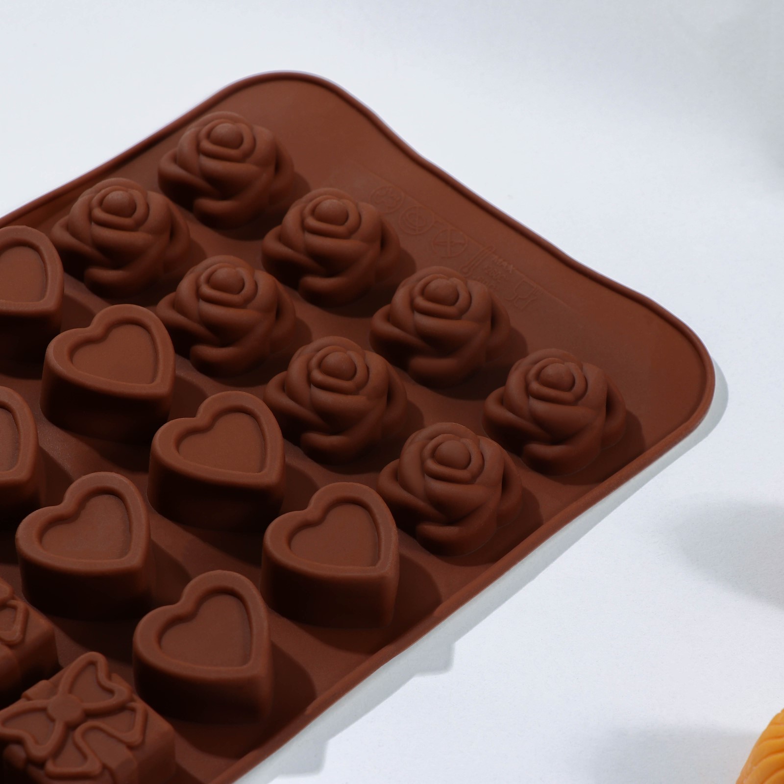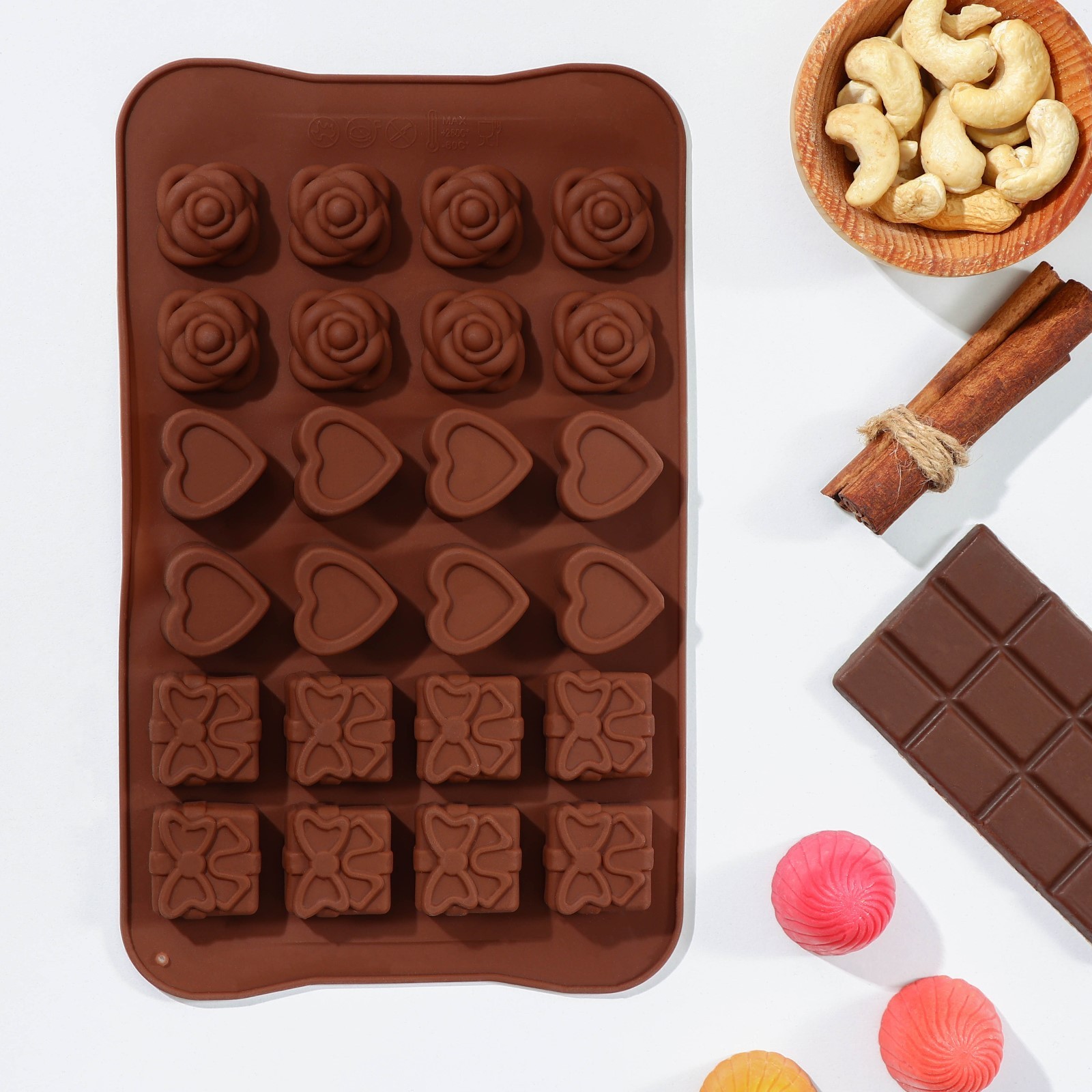 Форма для шоколада доляна «подарок, сердце, роза», 23,2x13,8x1,1 см, 24 ячейки (2,6x2,6x2 см), цвет микс