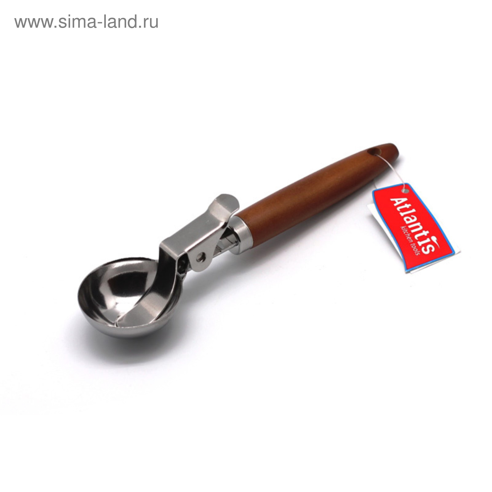 Ложка для мороженного atlantis, цвет коричневый. Цвет: Коричневый Материал ручки: Дерево Материал: Нержавеющая сталь Можно мыть в посудомоечной машине: Да  развернуть описание ▼