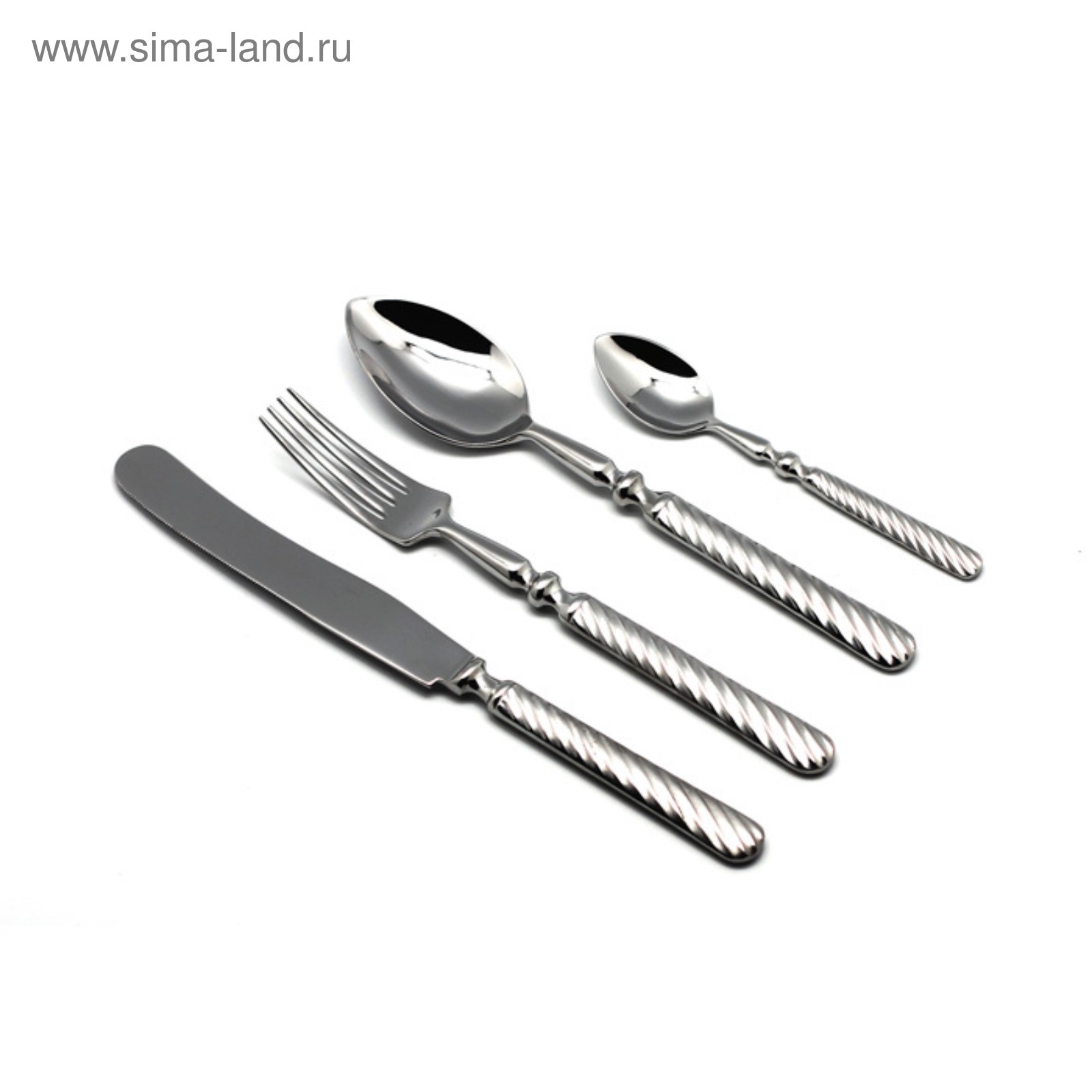Набор столовых приборов, 24 предмета. Цвет: Серебристый Количество персон: 6 В наборе, шт.: 24 Материал ручки: Сталь Вид упаковки: Коробка Материал: Сталь Можно мыть в посудомоечной машине: Да Цвет ручки: Серебристый Состав набора: Нож десертный Состав набора: Ложка чайная Состав набора: Ложка столовая Состав набора: Вилка столовая Матовая поверхность: Нет Внешний вид: Без особенностей  развернуть описание ▼