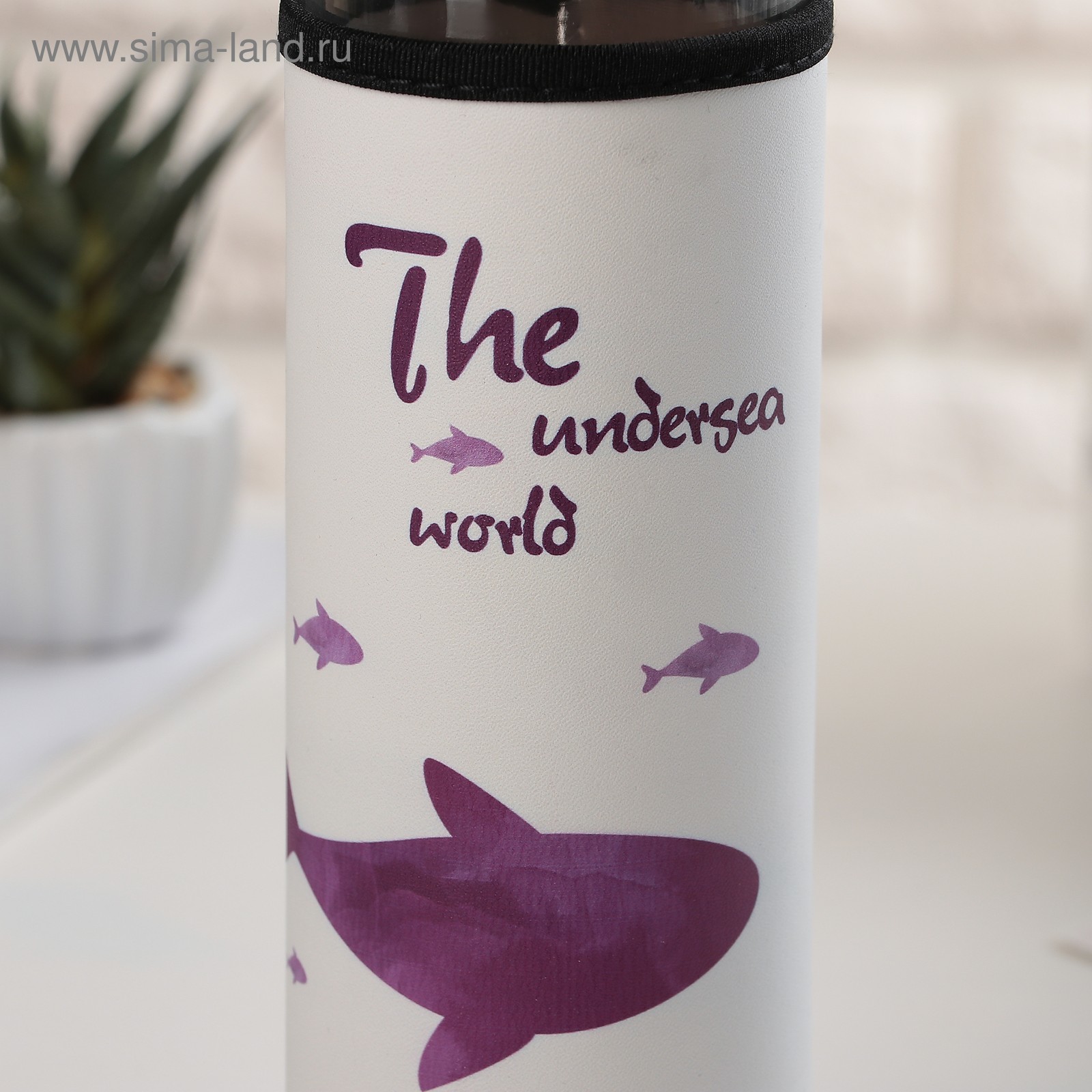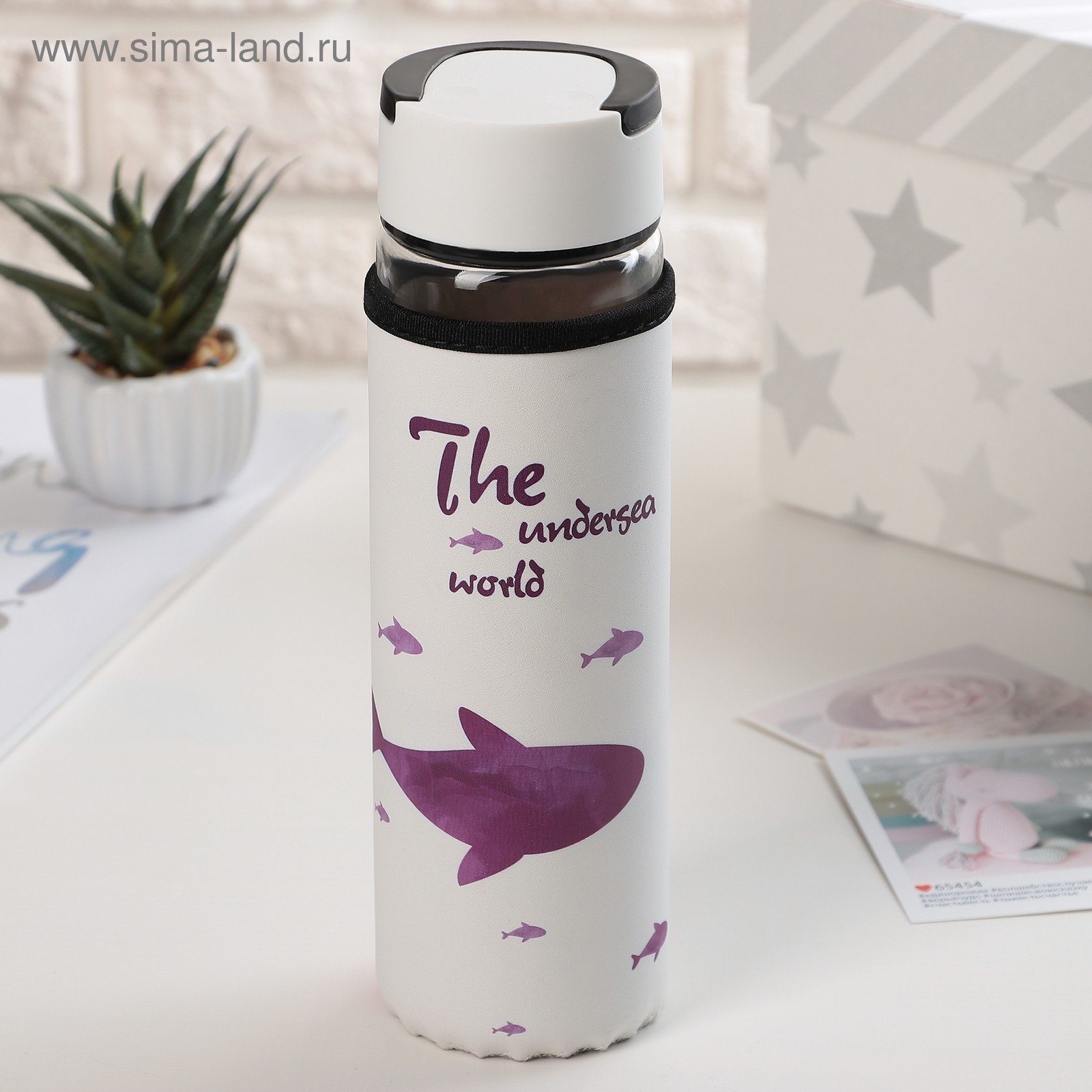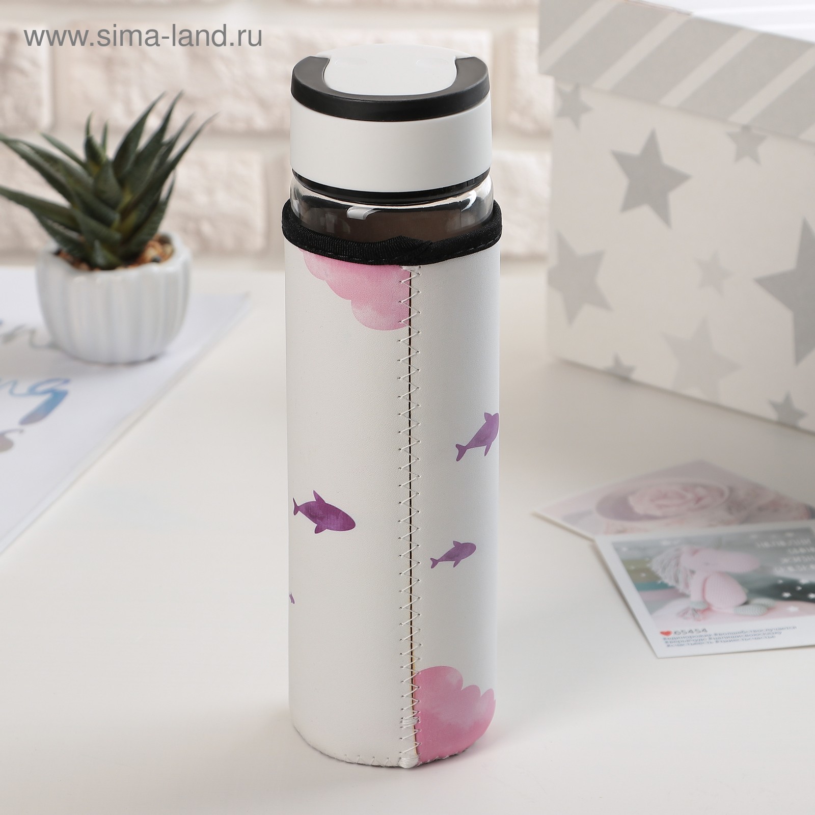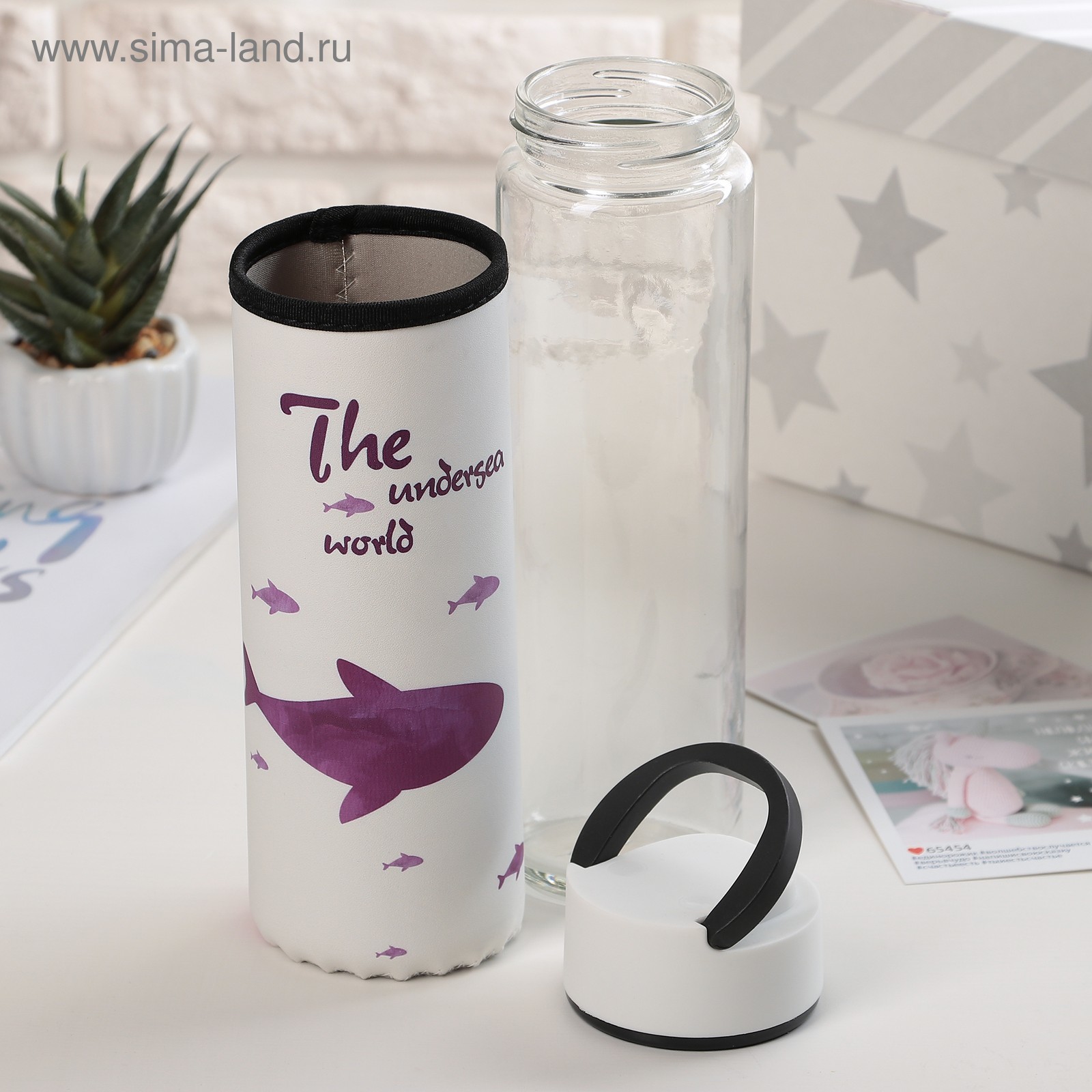 Бутылка для воды стеклянная с ручкой в чехле «кит», 500 мл, H=23,5 см, рисунок микс
