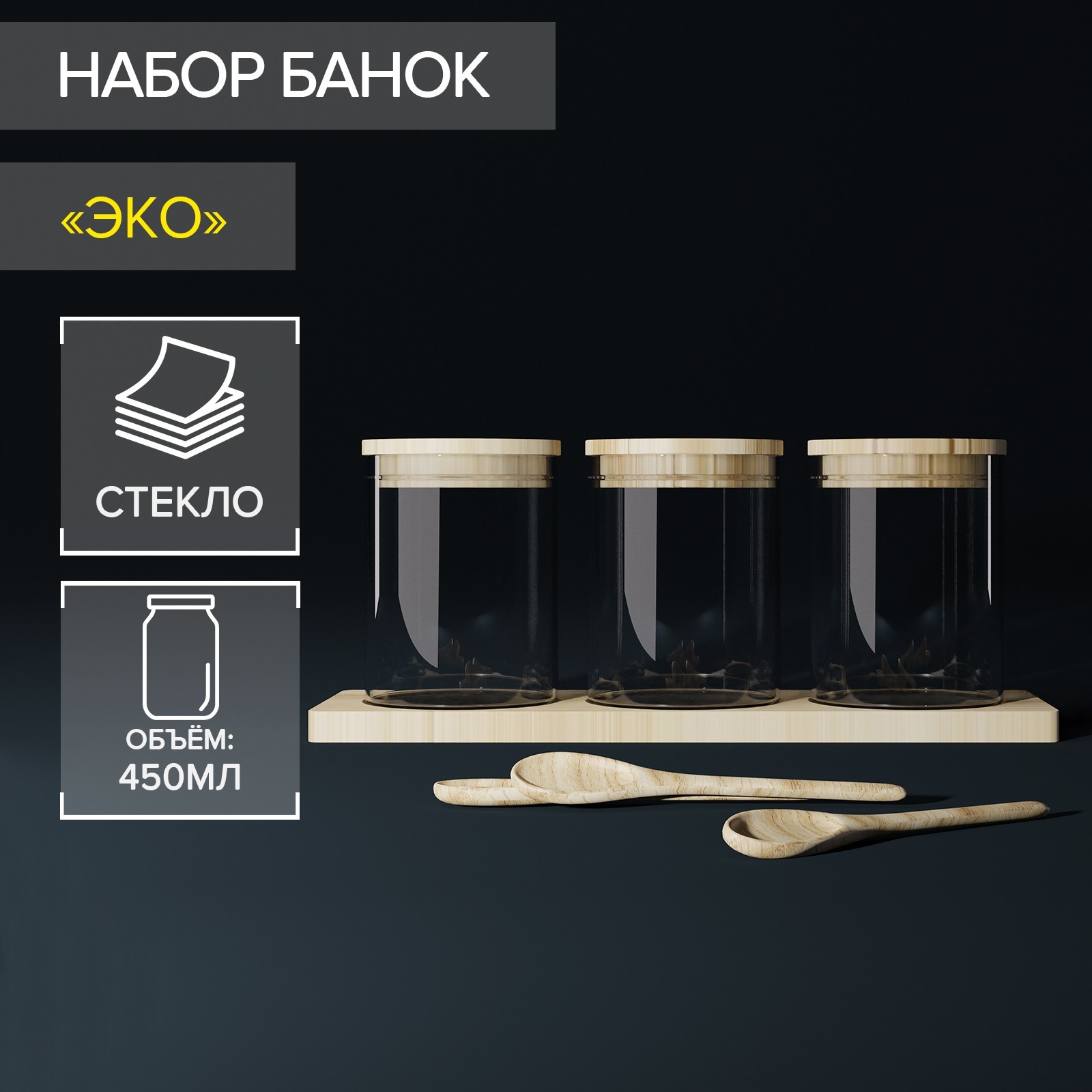 Набор банок стеклянных для сыпучих продуктов «эко», 450 мл, 3 шт
