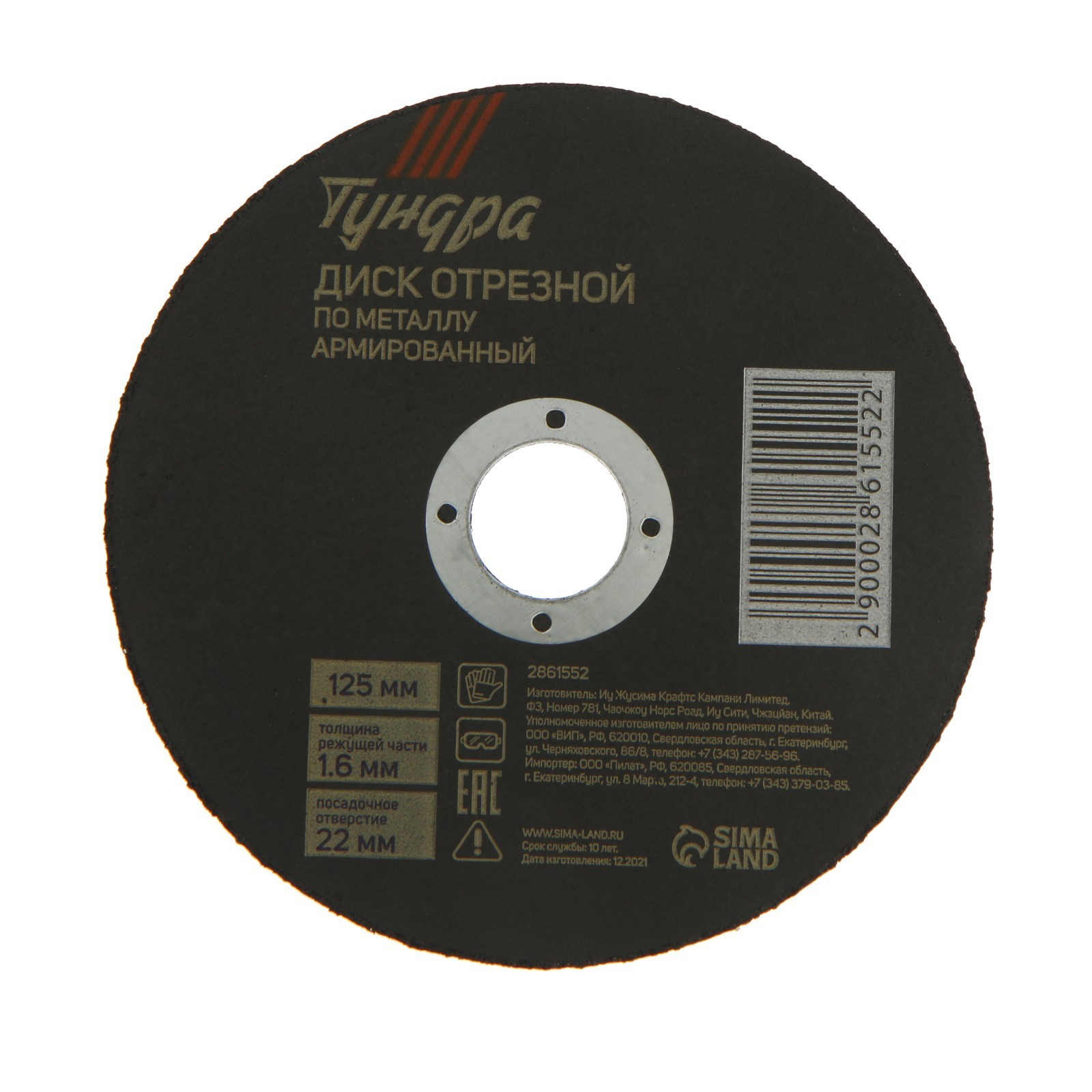 Круг отрезной по металлу тундра, армированный, 125 1.6 22 мм