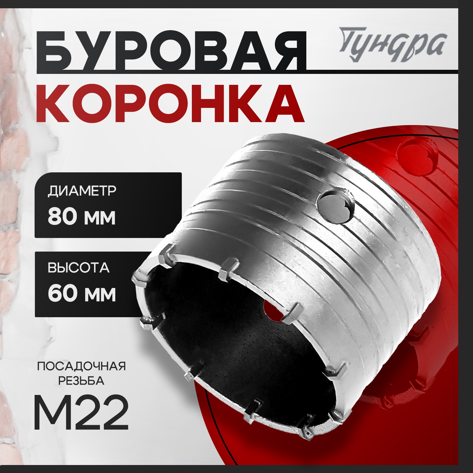 Коронка буровая тундра, высота 60 мм, м22 80 мм
