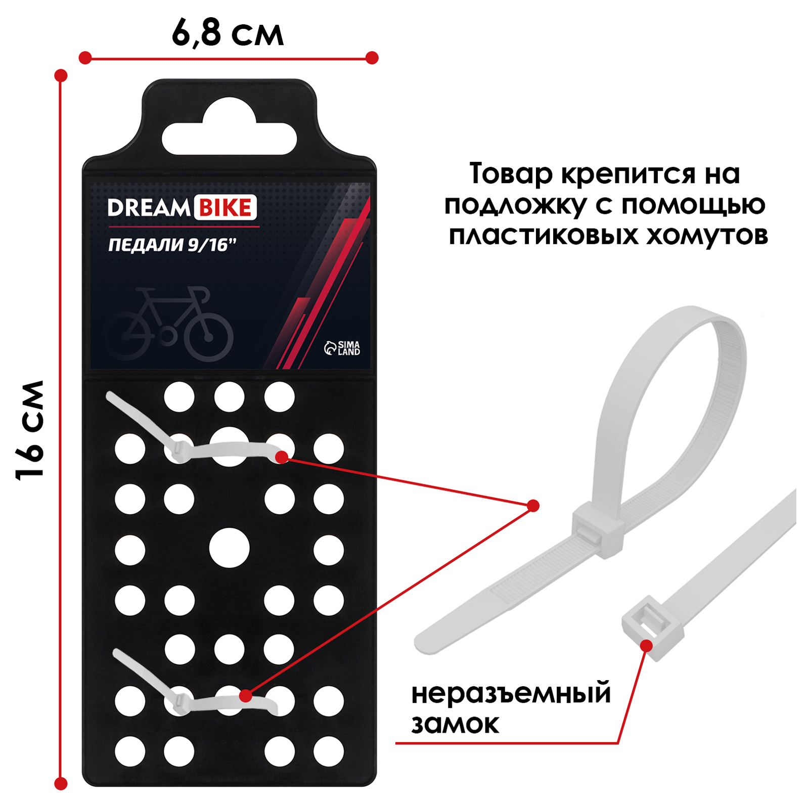 Педали 9/16" с подшипником Dream Bike, пластик/сталь