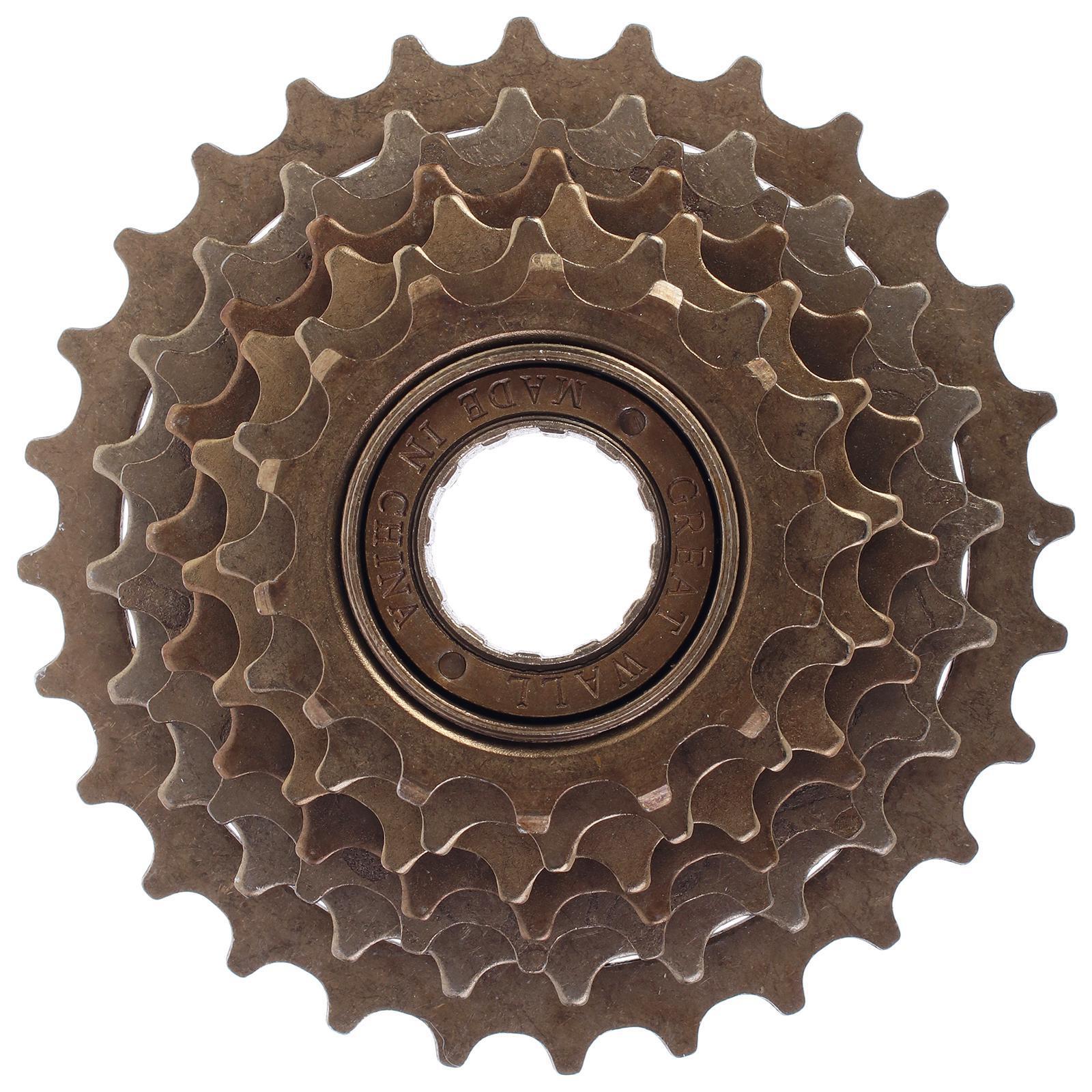 Трещотка saiguan fw-7, 7 скоростей, 14-29t. Трещотка совместима с велосипедами, оборудованными 21-скоростной трансмиссией. Количество зубьев на малой звезде 14, на большой 29. Цвет: Бронзовый Количество скоростей: 7 Количество звёзд: 7 Вид: Горный Тип: Трещотка  развернуть описание ▼