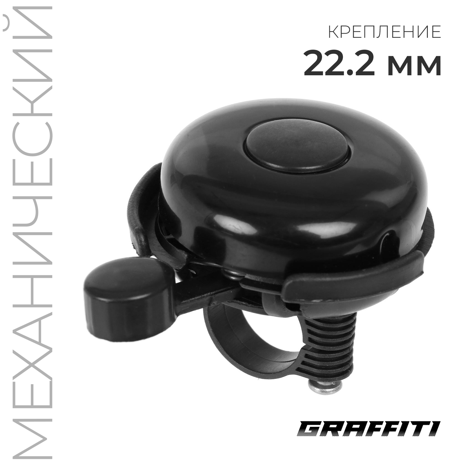 Звонок велосипедный graffiti. Громкий и узнаваемый звук этого звонка помогает обозначить себя на дороге и сделать езду более безопасной. Широкий язычок звонка удобен при использовании даже в перчатках. Звонок устанавливается на рулевую трубу велосипеда, самоката или коляски. Материал: стальТип: механический Цвет: Чёрный Тип: Механический  развернуть описание ▼