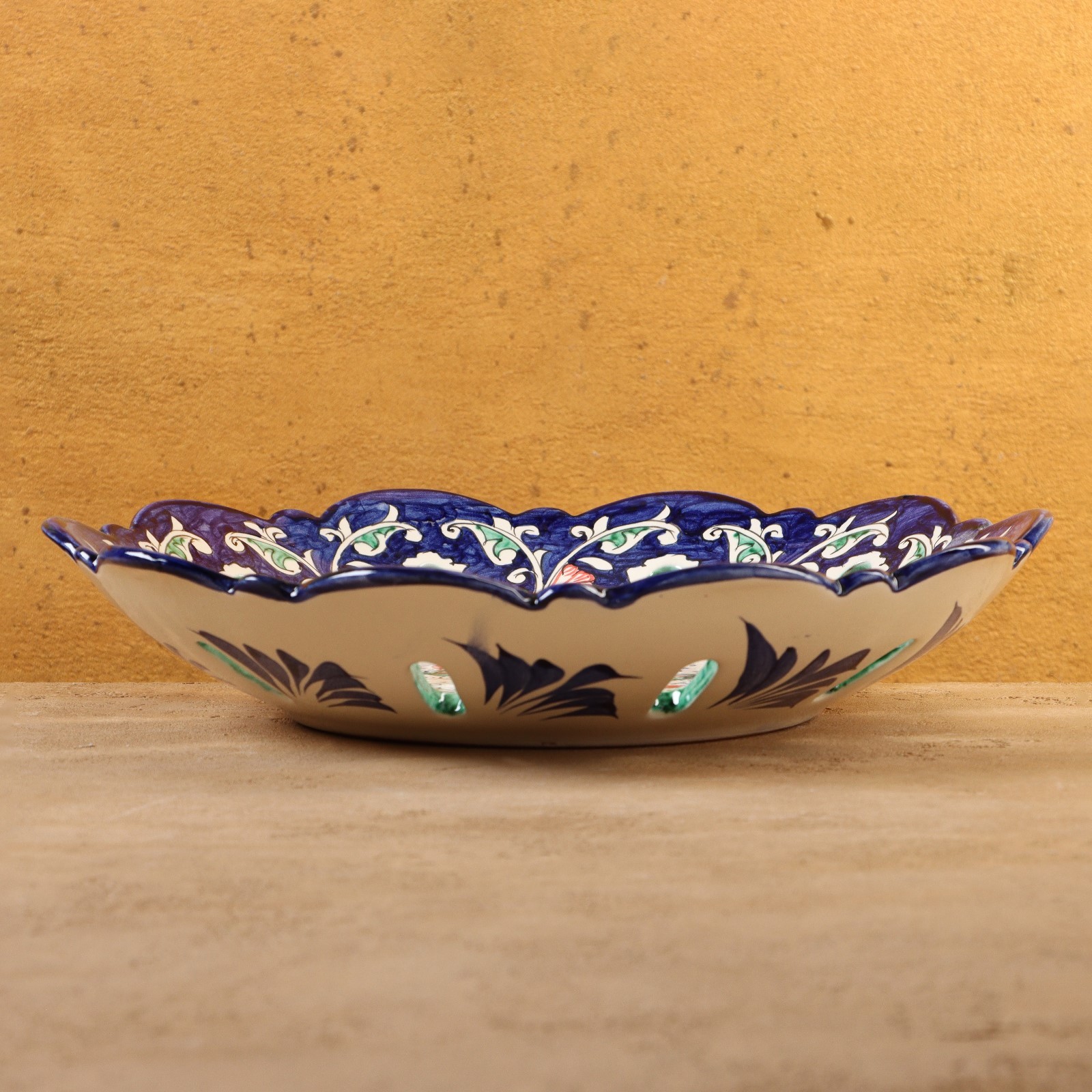 Фруктовница риштанская керамика "цветы", 33 см, синяя
