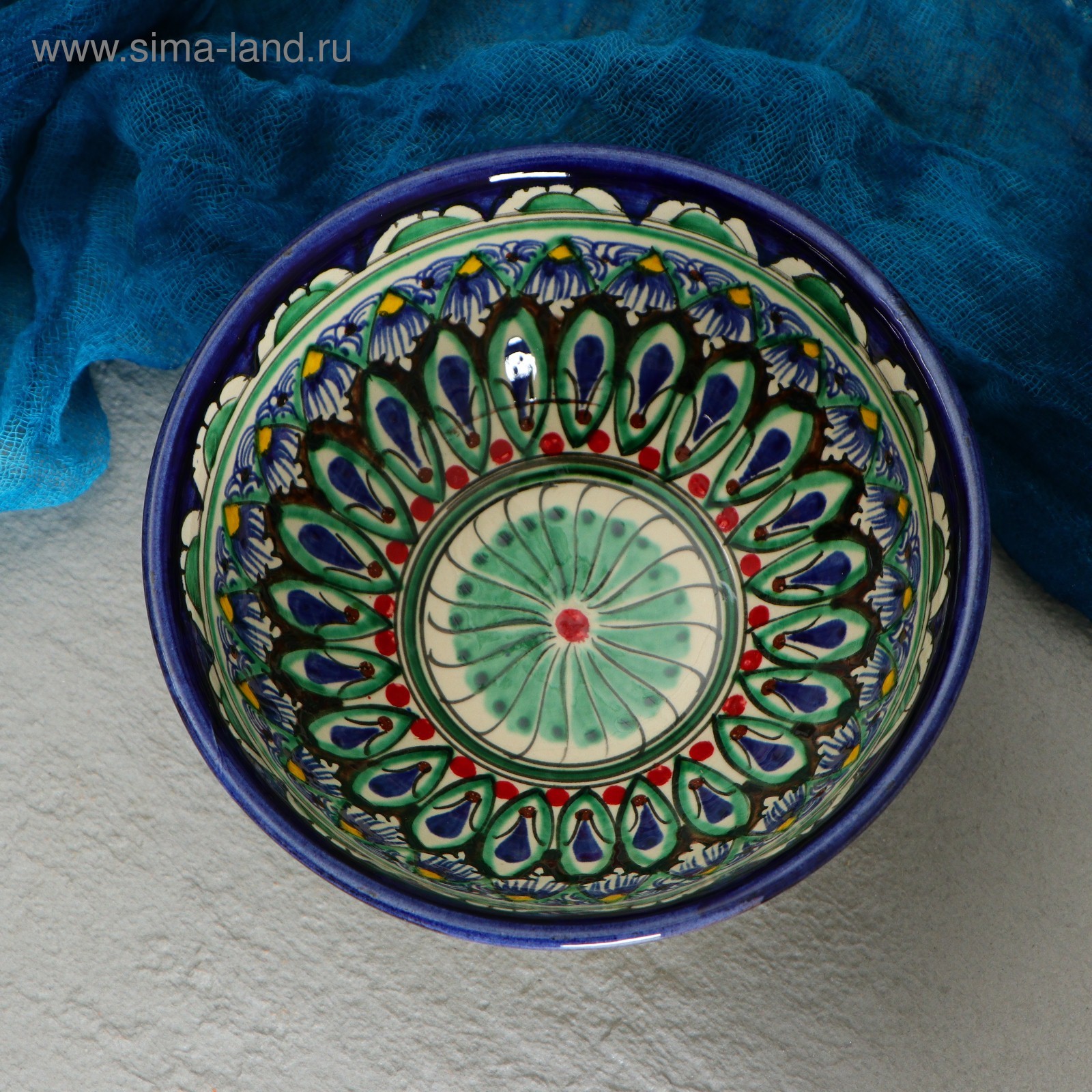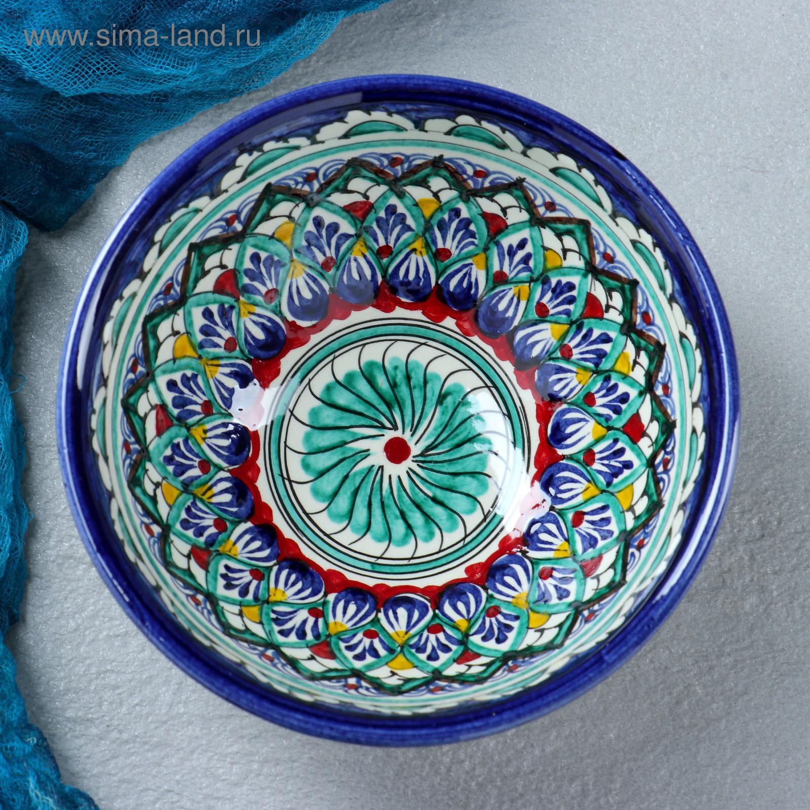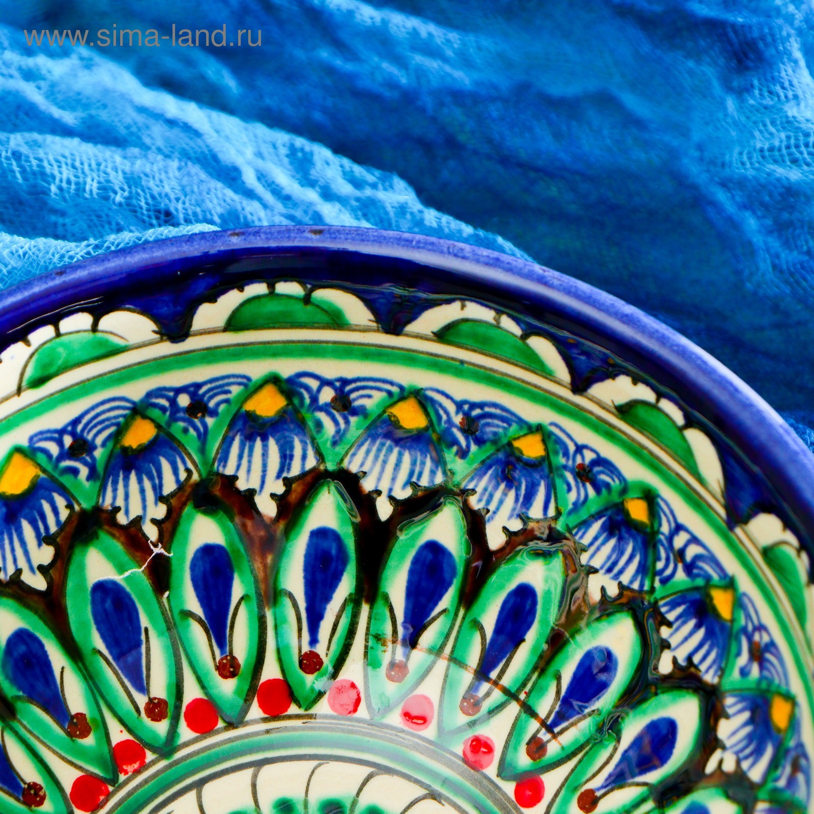 Коса риштанская керамика "цветы" 15 см, малая, синяя