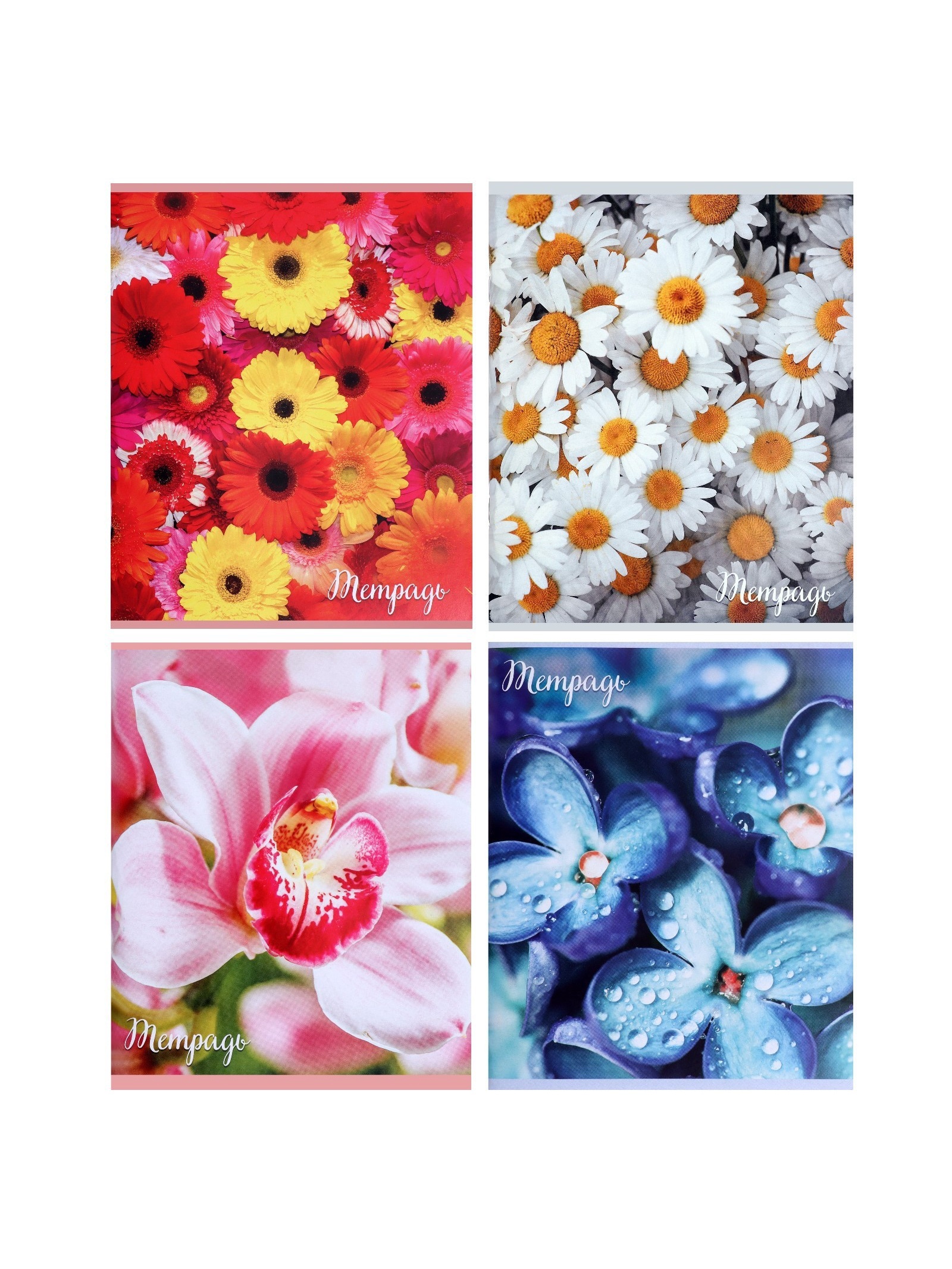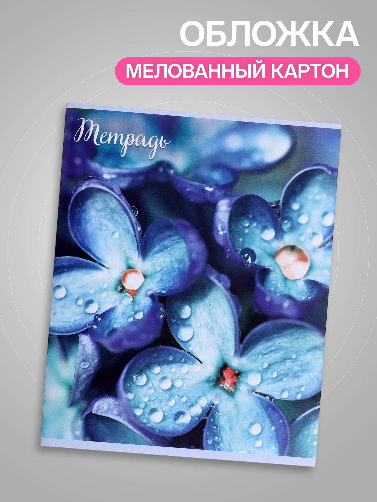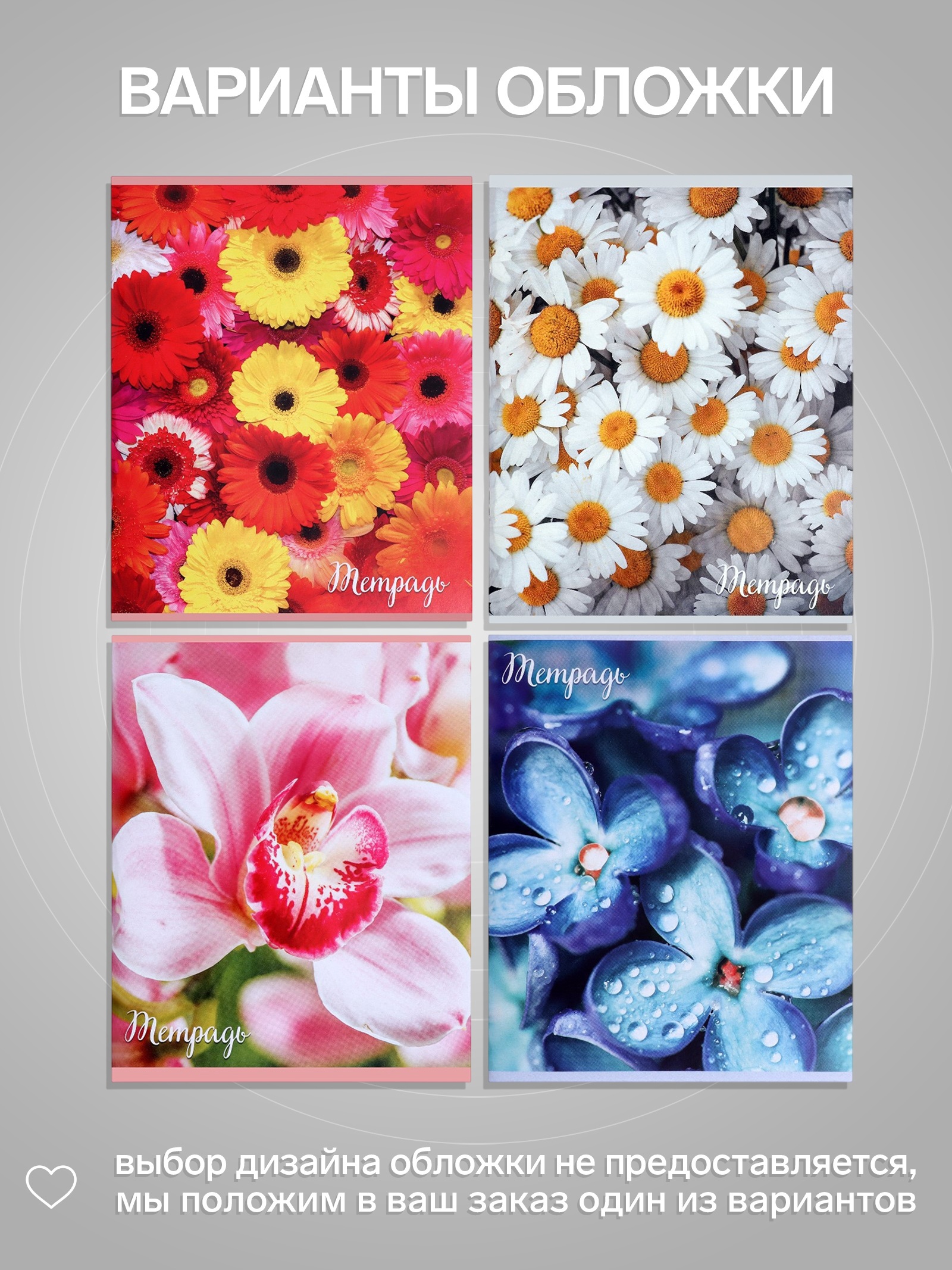 Тетрадь 96 листов в клетку «цветы», серые листы, микс