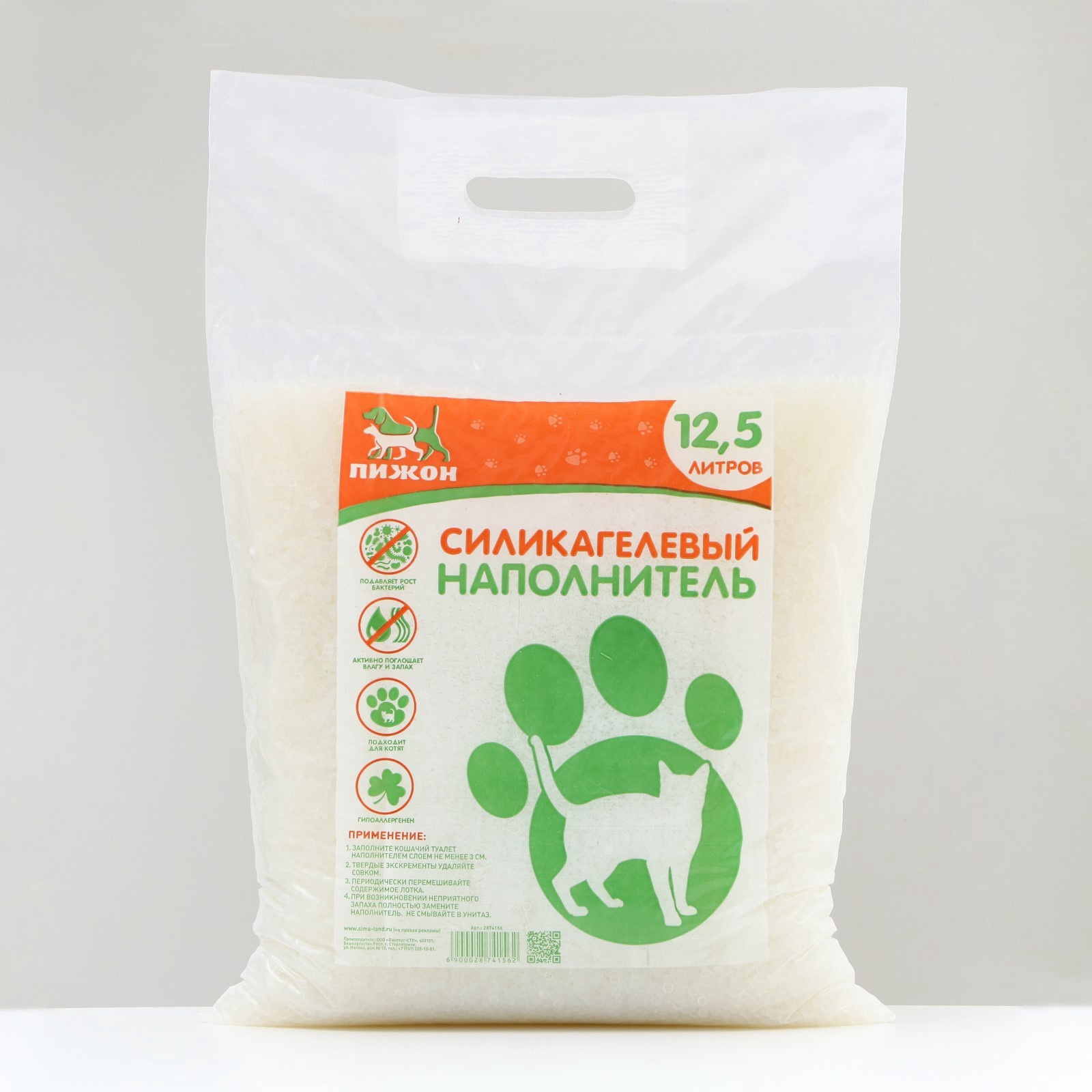 Наполнитель силикагелевый «пижон», 12.5 л.