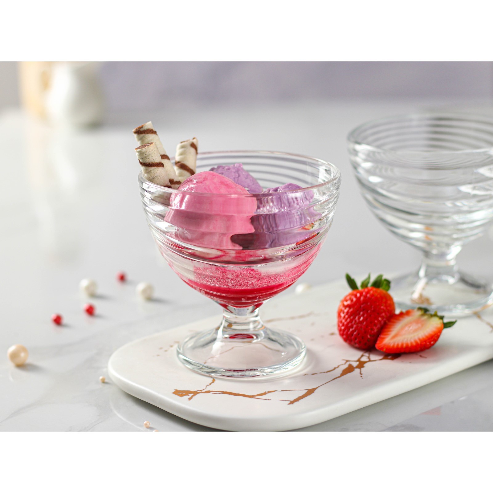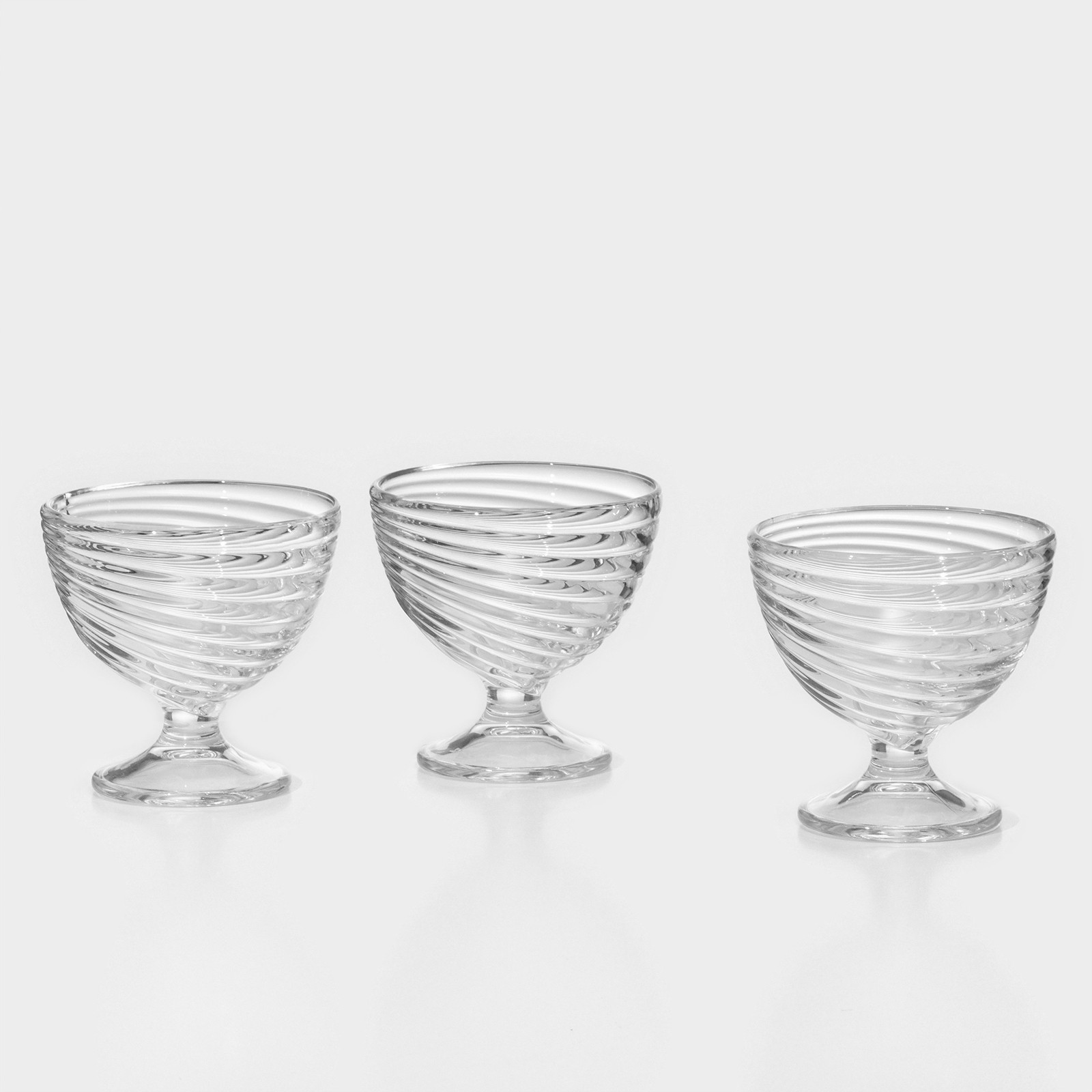 Набор стеклянных креманок для мороженого «свирл», 300 мл, 3 шт. Креманка– стеклянная ёмкость на ножке для порционной подачи десертов – классика ресторанной подачи мороженого, фруктовых салатов, желе, нежных пирожных на сливках, йогурта с фруктами, крема и прочих сладостей. Их используют в кафе, буфетах, столовых и дома для создания праздничной атмосферы за столом. Цвет: Прозрачный Форма: Круглая Диаметр, см: 11 parts count: 0 В наборе, шт.: 3 Диаметр в самой широкой части, см: 7 Объём, мл: 300 tnved: 7013499900 Крышка: Нет Материал: Стекло Можно мыть в посудомоечной машине: Да Можно использовать в СВЧ-печи: Да Текстура: С рельефом Особенности: Без особенностей Запрет реализации по сегментам: 00000000485 Форма: Круг, шар, цилиндр  развернуть описание ▼