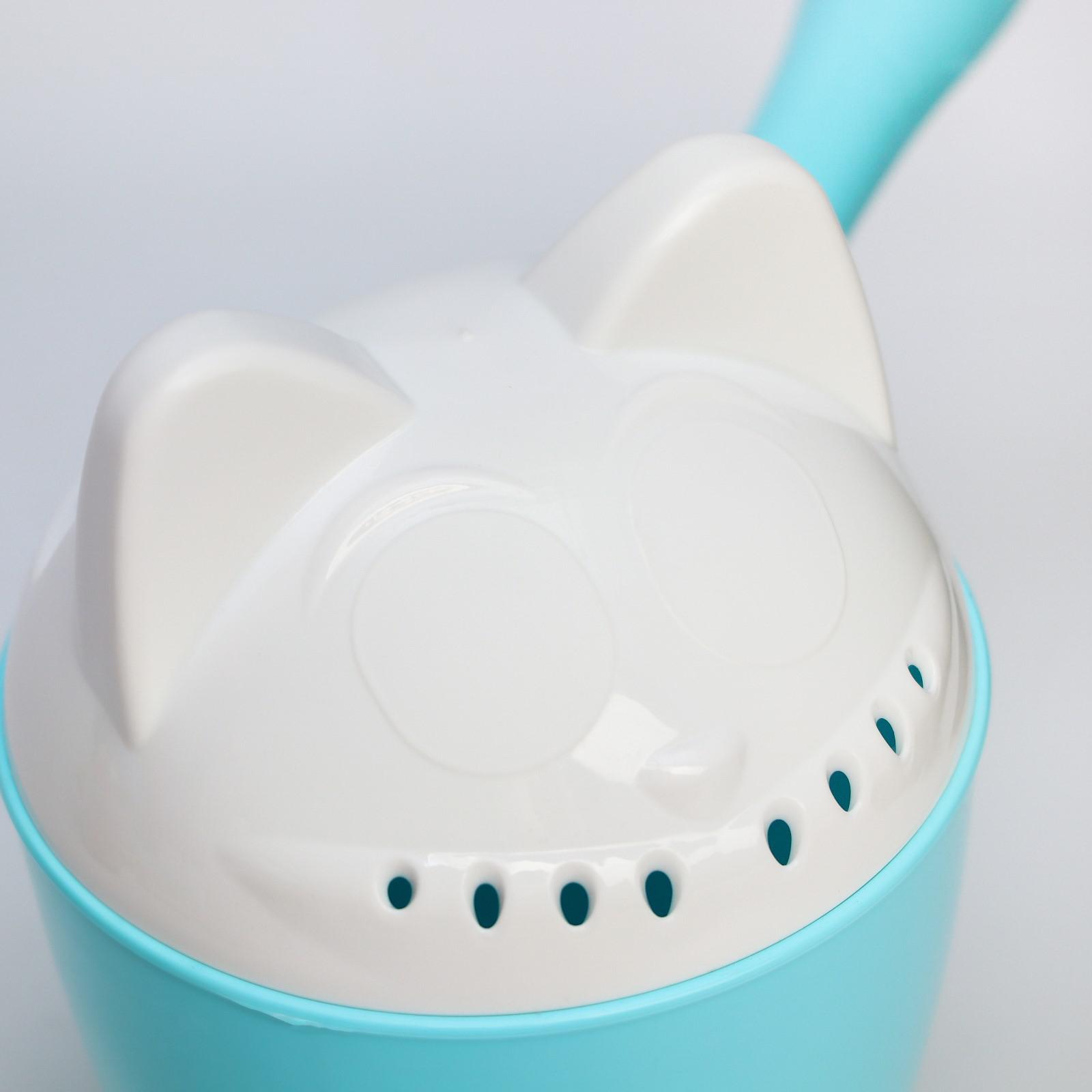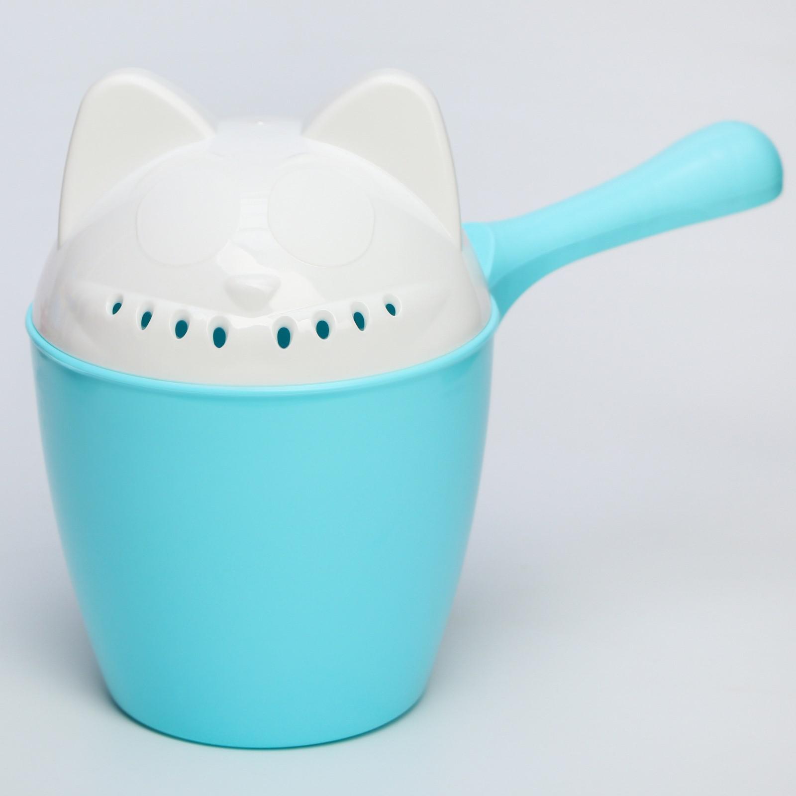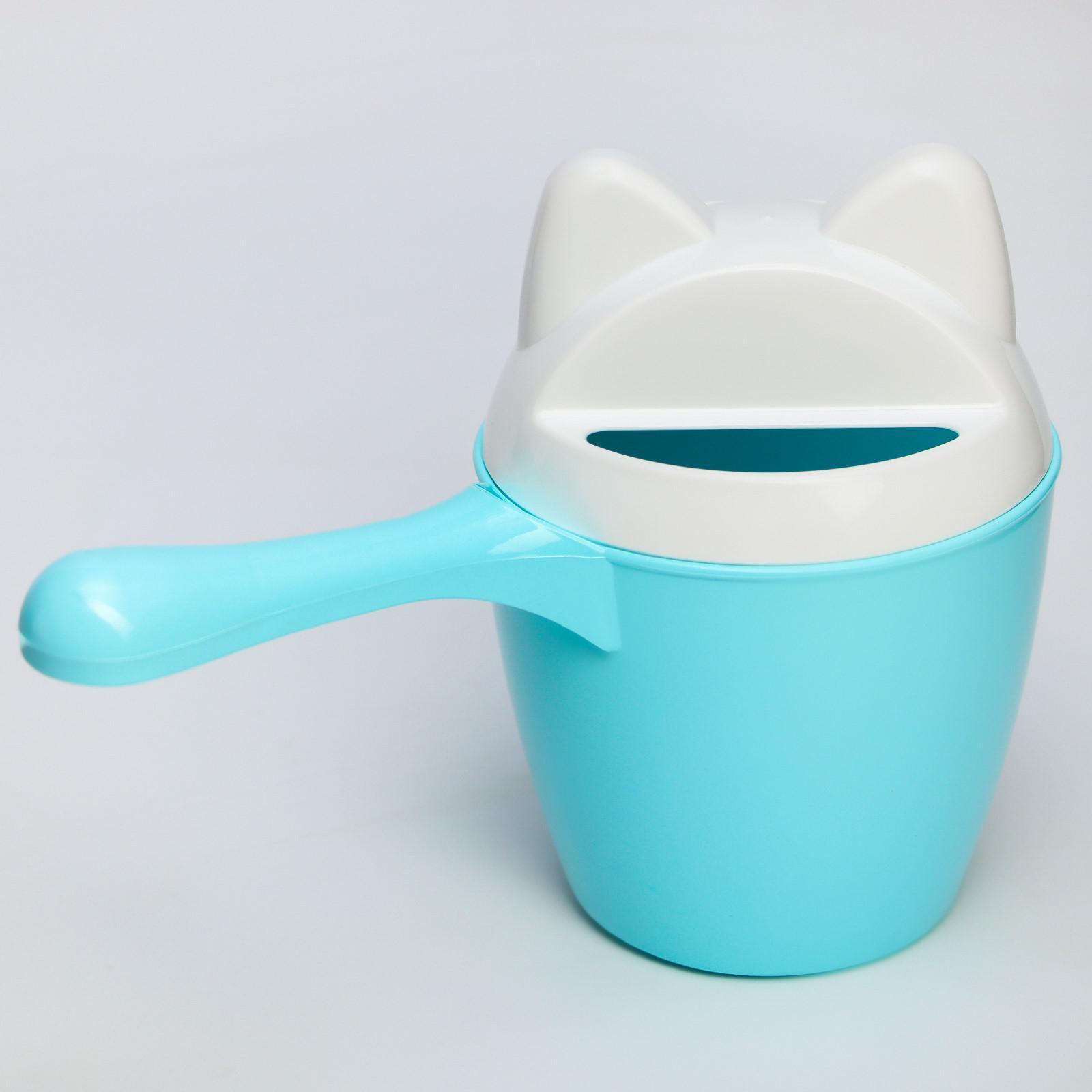 Ковш пластиковый для купания и мытья головы, детский банный ковшик «котофей», 1 л., с леечкой, цвет голубой