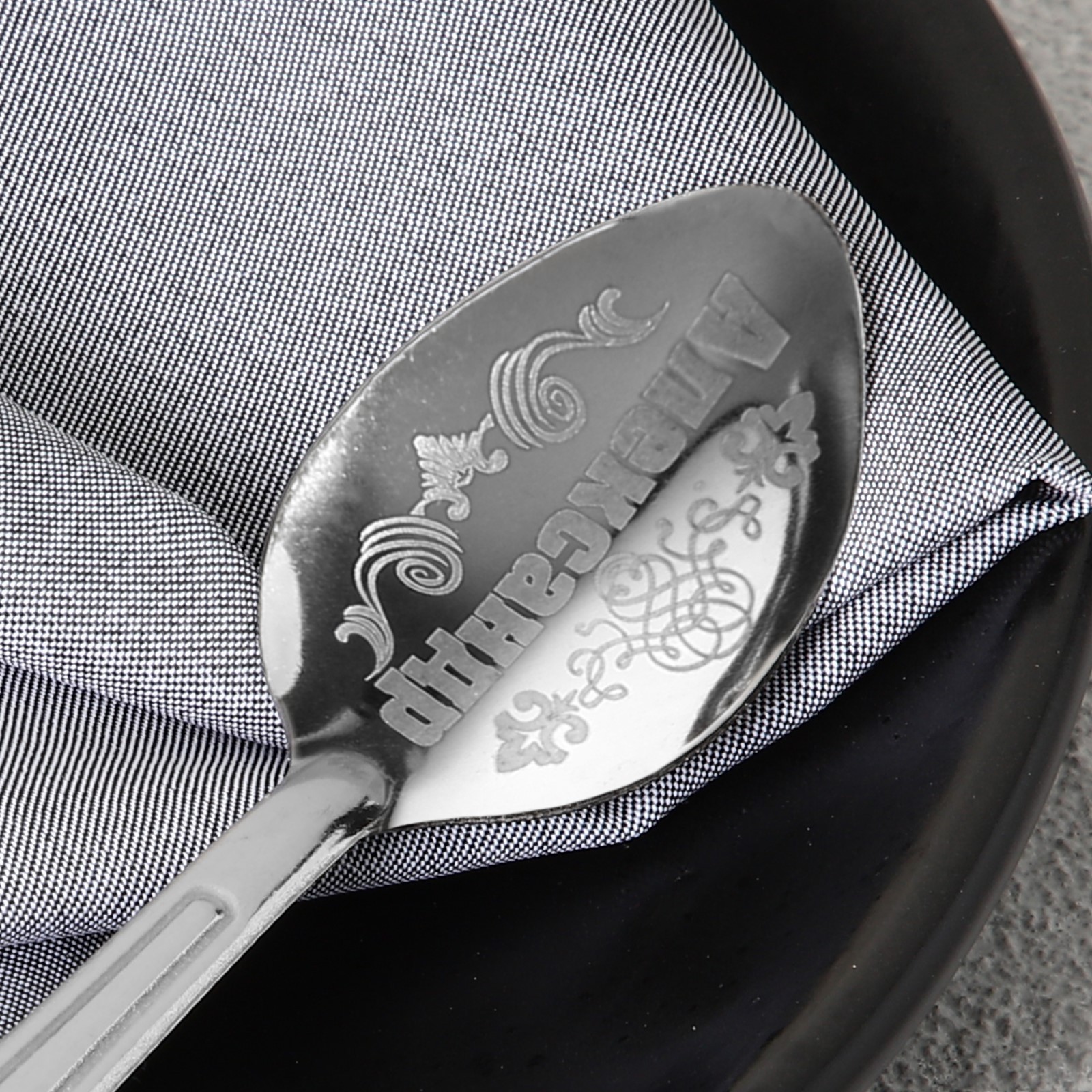 Ложка чайная именная «александр», 3 14 см. Для особых случаев — особый подарок. Ложка чайная именная «Александр», 3 14 см может украсить ваше чаепитие, обед или ужин, сделать каждую встречу неповторимой. Иногда, чтобы сказать близким людям, как они нам дороги, или поздравить с праздником, не нужны слова, достаточно подарить небольшой, но оригинальный сувенир, который будет поднимать настроение и приносить пользу. Ложка с лазерной гравировкой и изящной рукояткой преподносится на красочной открытке. На оборотной стороне изделия специально отведено место для подписи: кому и от кого был вручён подарок. Набор:Нет|Цвет:Серебристый|Для кого:Для мужчины|Для кого:Для мальчика|Длина, см:14|Объём, мл:5|Материал ручки:Нержавеющая сталь|Рисунок:Да|Тематика праздника:23 Февраля|Материал:Нержавеющая сталь|Выбор имени:Александр/Саша|Назначение:Сувенирные|Назначение:Чайные|Можно мыть в посудомоечной машине:Да|Цвет ручки:Серебристый|Особенности:Гравировка|Матовая поверхность:Нет|Внешний вид:На 23 февраля|Внешний вид:Именные|Страна:Китай  развернуть описание ▼