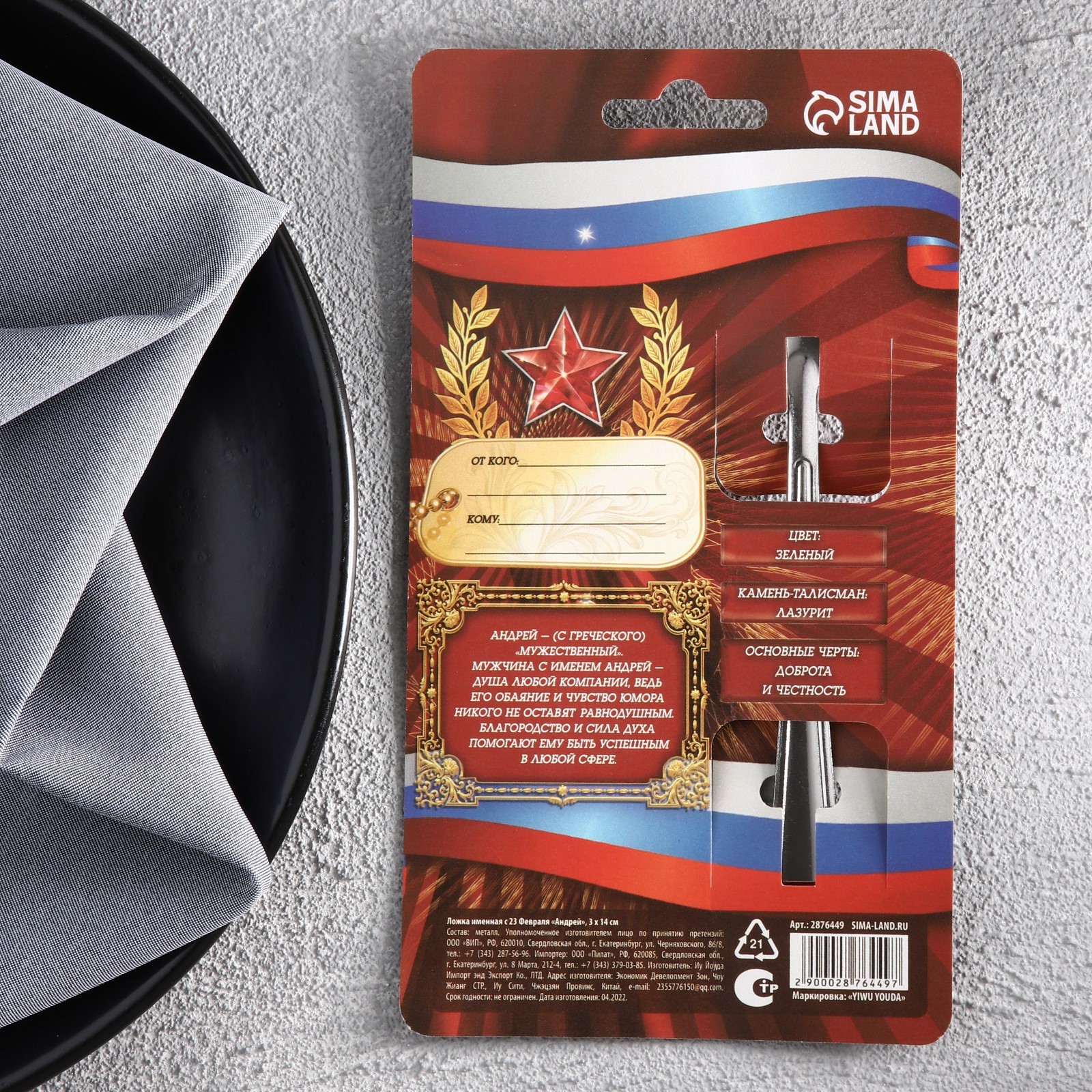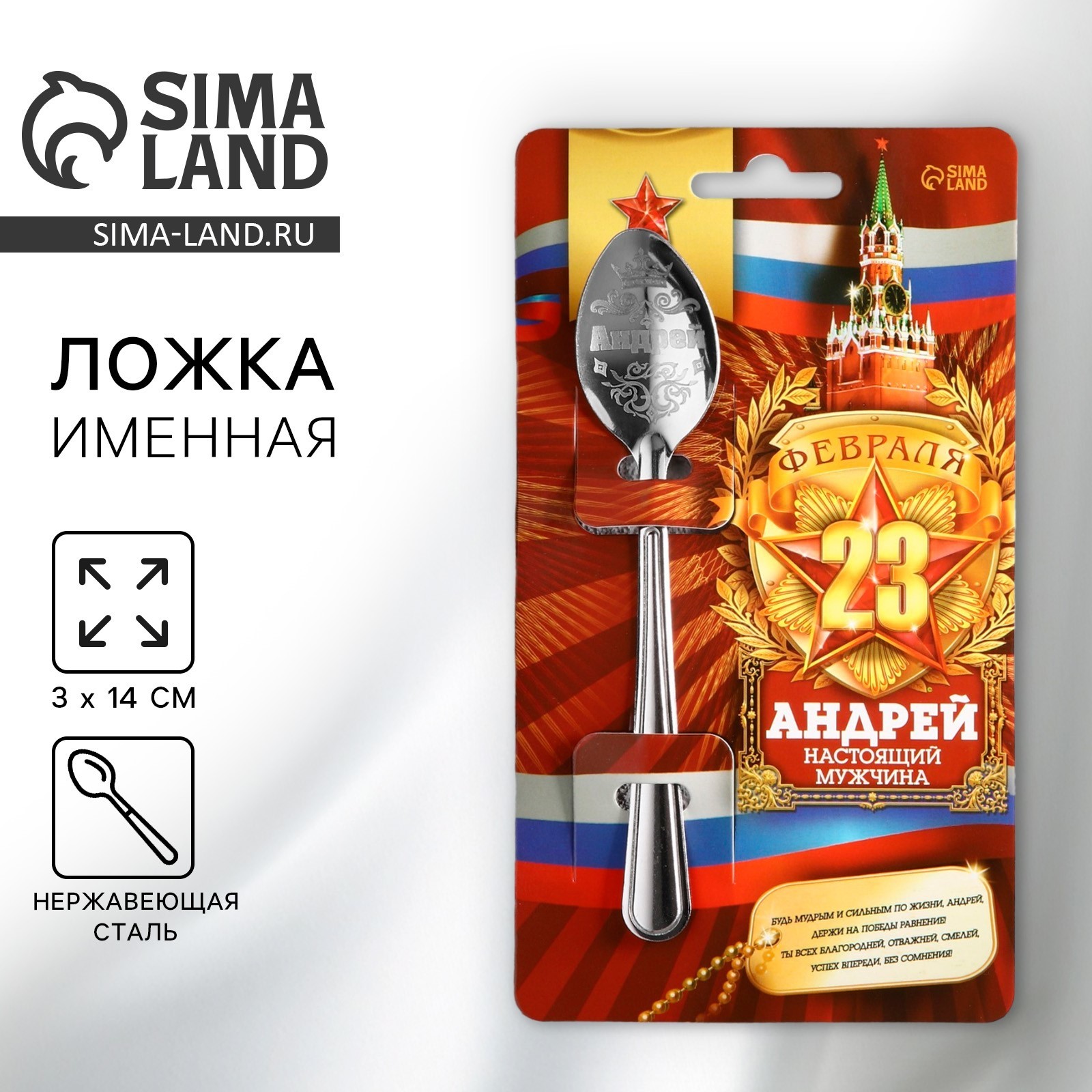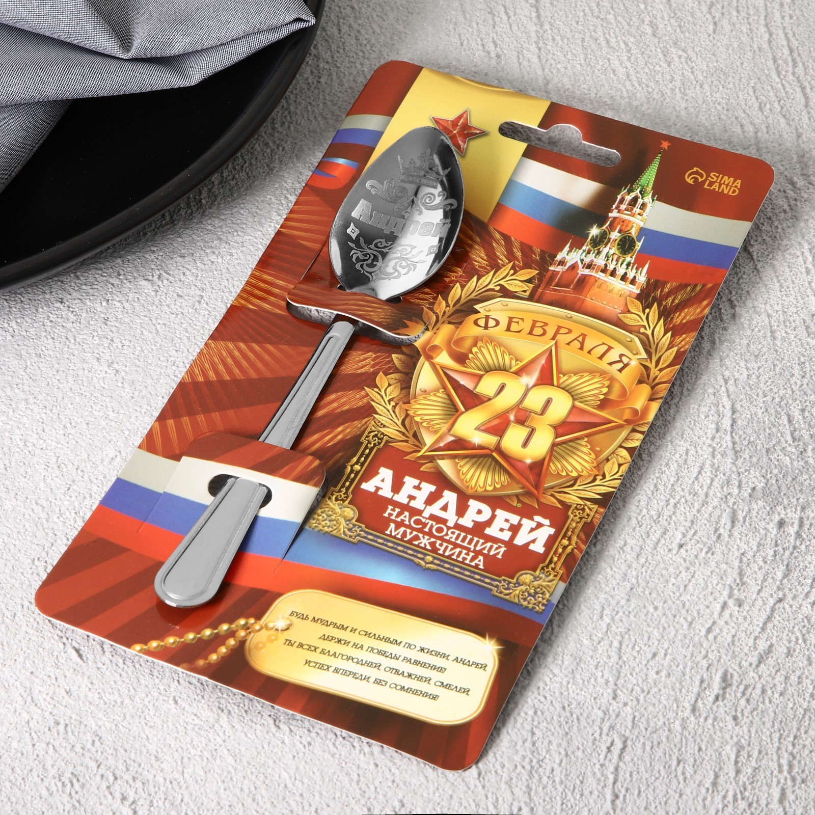 Ложка чайная с гравировкой с 23 февраля «андрей», 3 х 14 см.