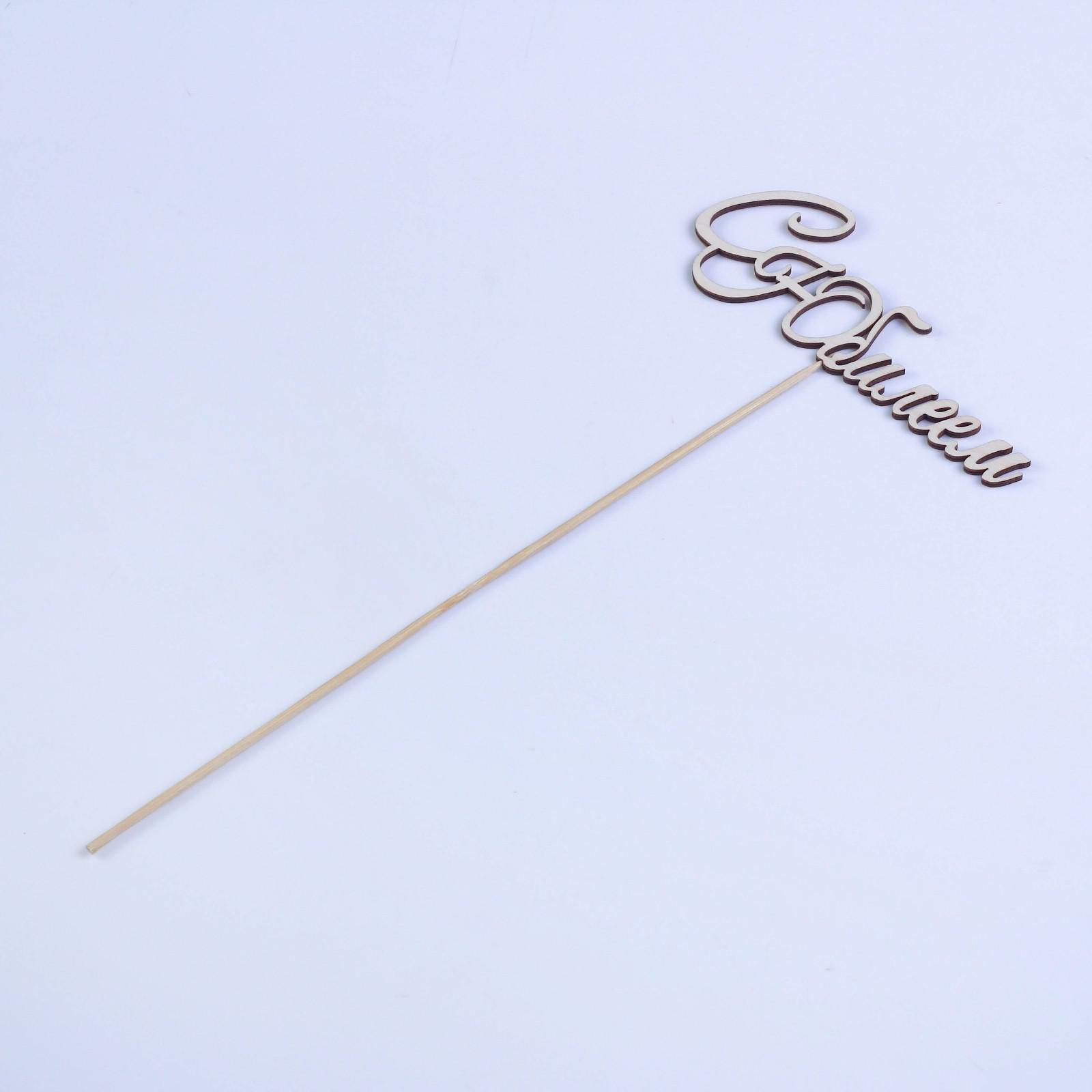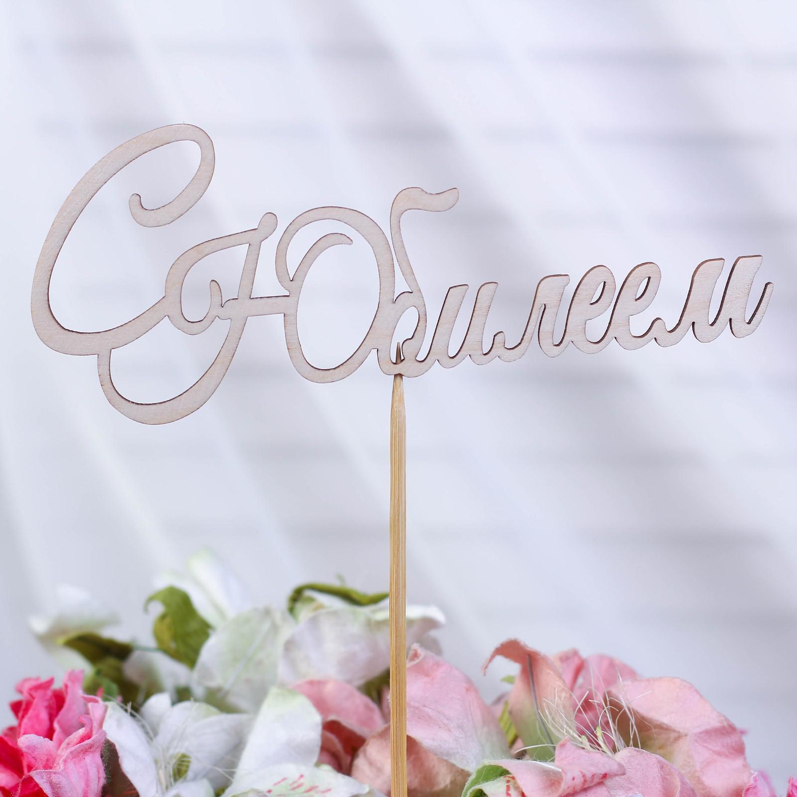 Топпер "с юбилеем" 15х6 см. Подготовка к праздникам — это весьма непростое занятие, которое требует много времени. Подчеркнуть особую атмосферу торжества помогут наши топперы. Просто вставьте их в сладкое угощение или букет цветов, и они добавят яркости вашему мероприятию и сделают его запоминающимся. Топперы — это маленькие декоративные таблички из дерева. Используйте украшение для оформления букета. Так вы подчеркнёте красоту цветов и подарите массу положительных эмоций дорогому вам человеку. Цвет: Бежевый Высота держателя, см: 30 Материал: Дерево Форма: Надпись Особенности: Без особенностей Вид: Топпер Размер надписи, см: 15 х 6 Поставляется в разобранном виде: Да  развернуть описание ▼