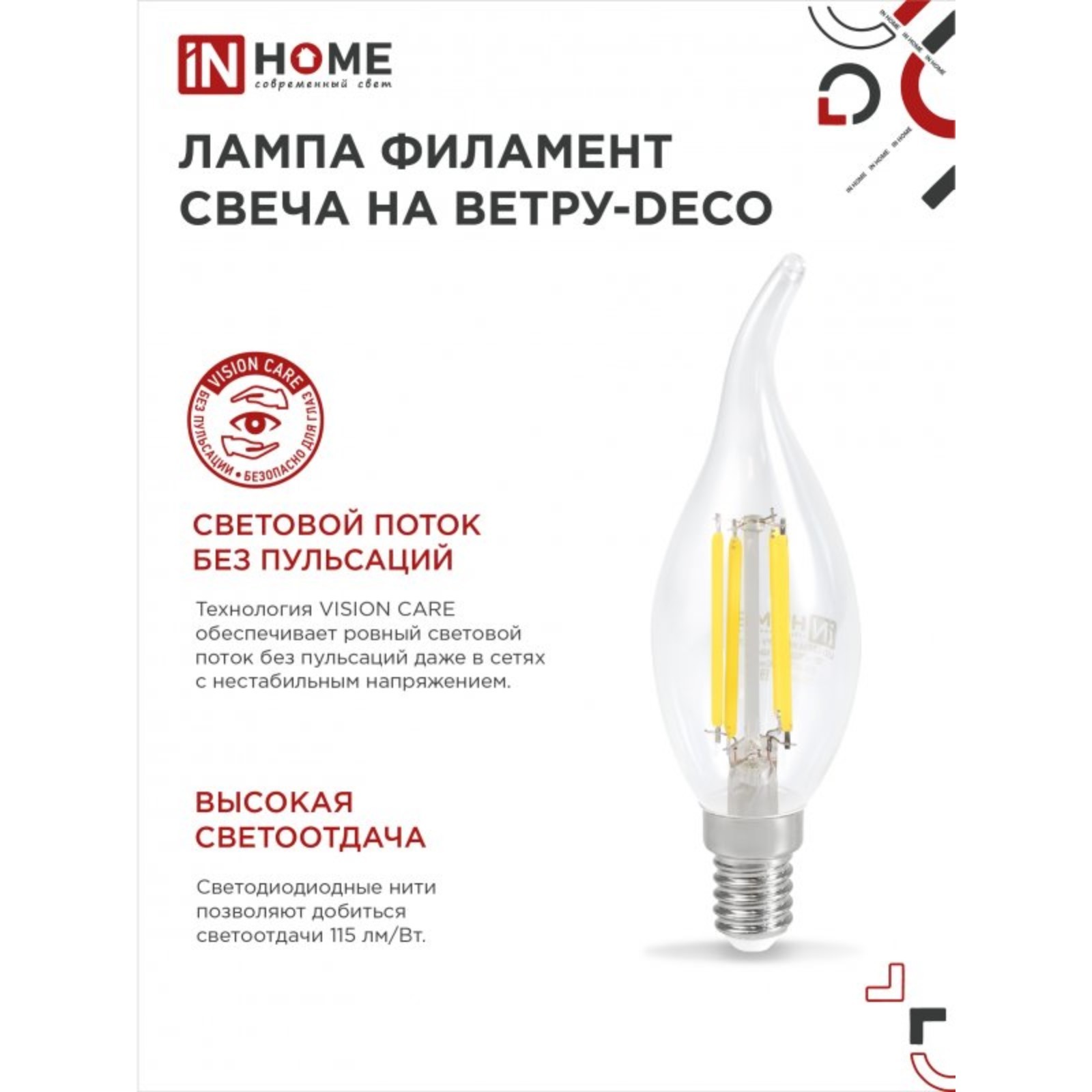 Лампа светодиодная In Home Led-свеча на ветру-deco, е14, 7 вт, 3000 к, 630 лм