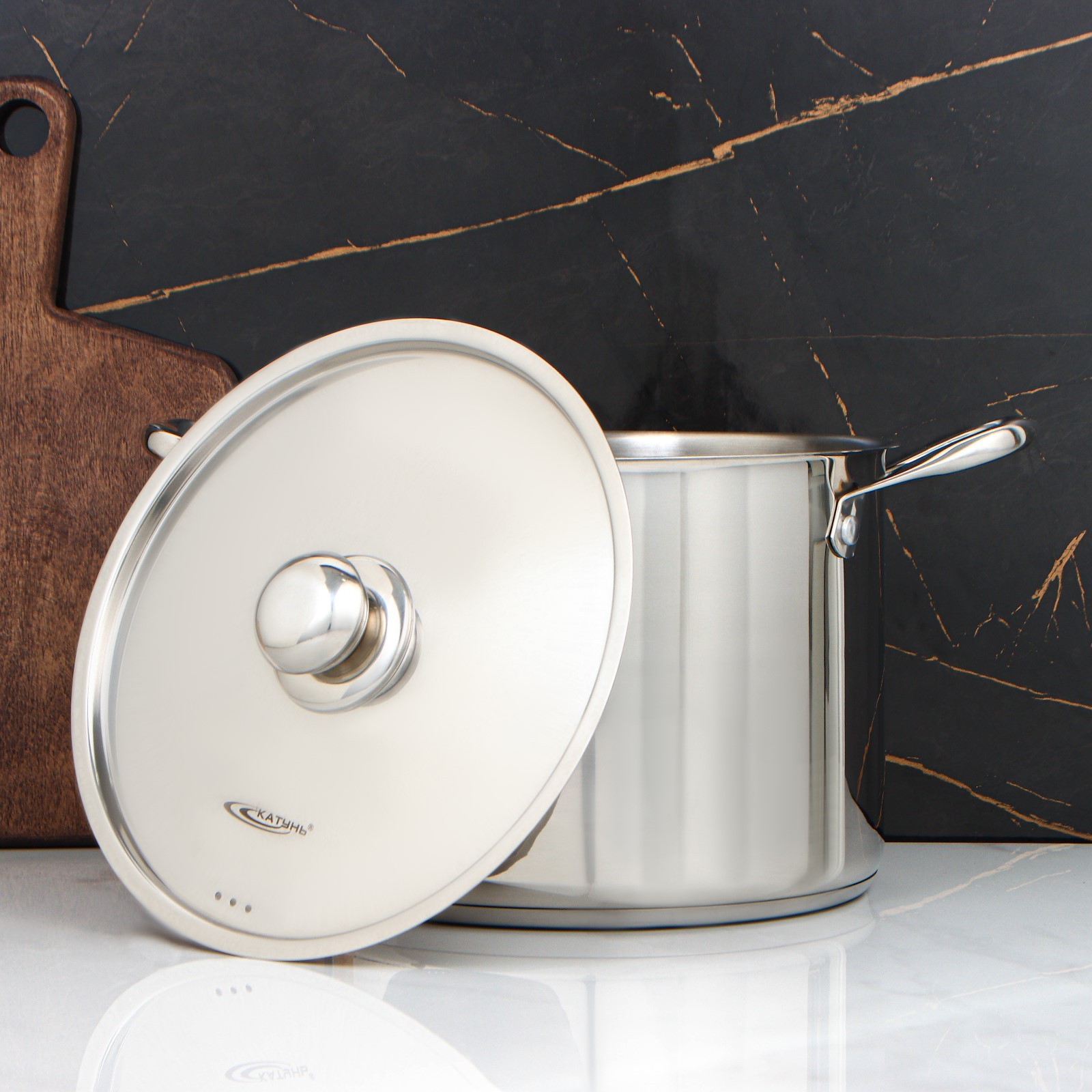Кастрюля «титан», 8 л, D=24 см, H=18 см, капсульное дно, индукция, металлическая крышка