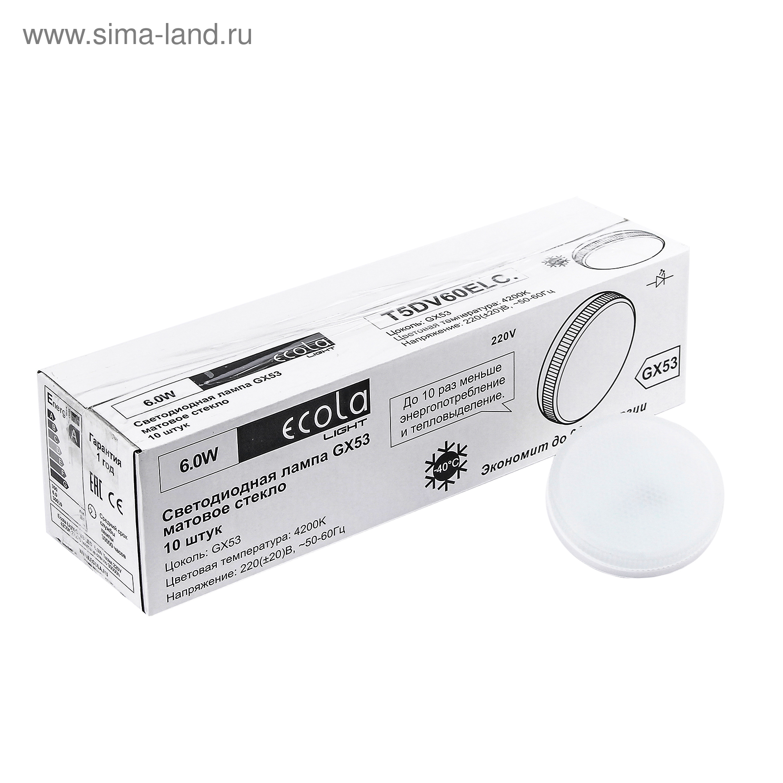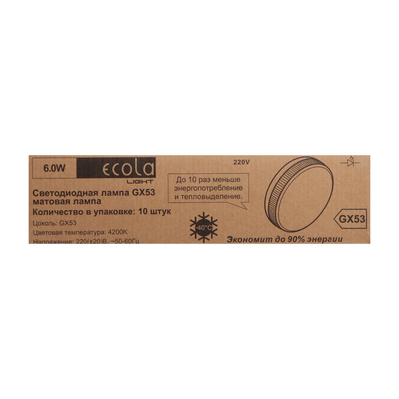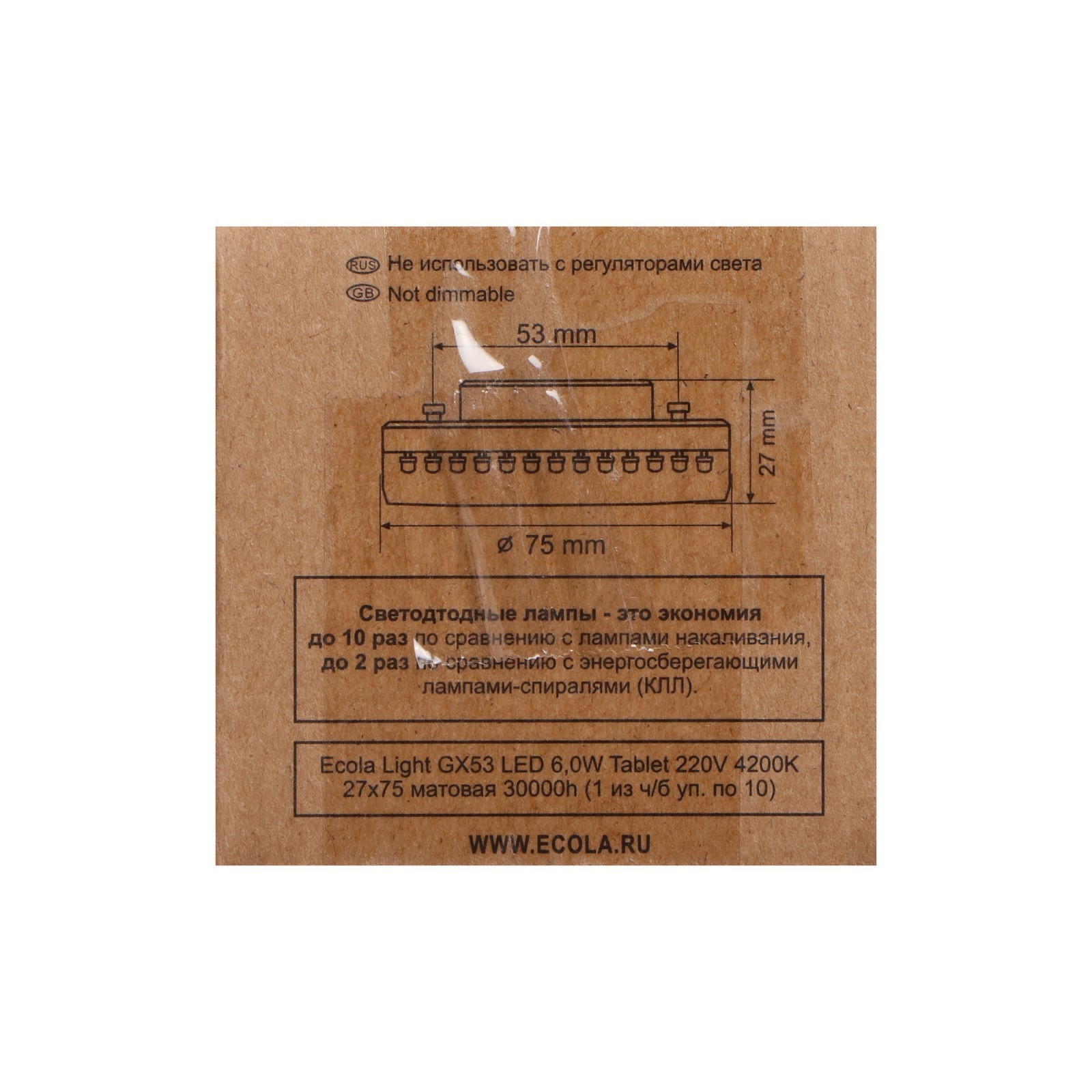 Лампа светодиодная Ecola Light, Gx53, 6 вт, 4200 K, 220 в, 27x75 мм, матовое стекло