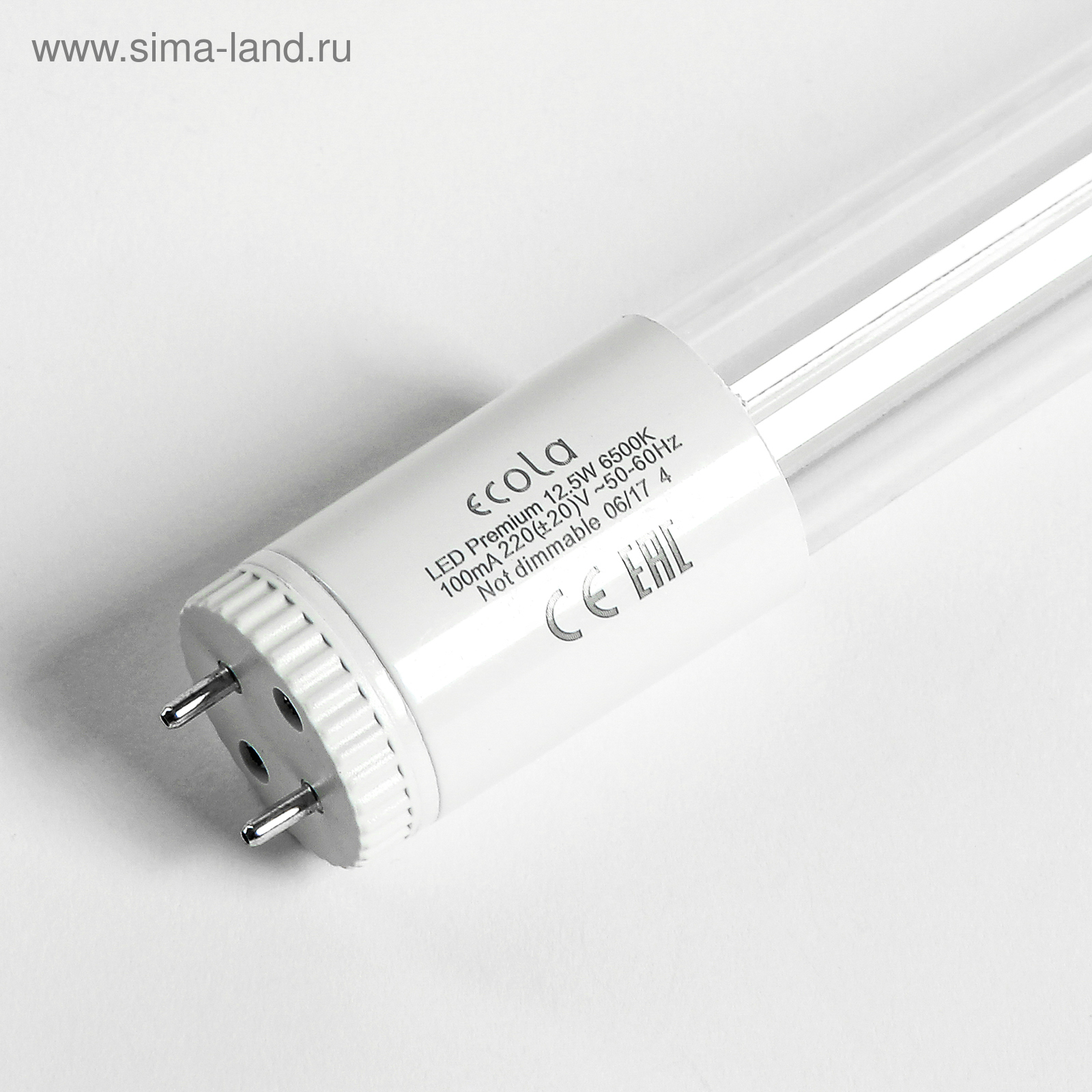 Лампа светодиодная Ecola, T8, G13, 12.5 вт, 6500 K, 605x28 мм, пов. цоколь, прозрачная