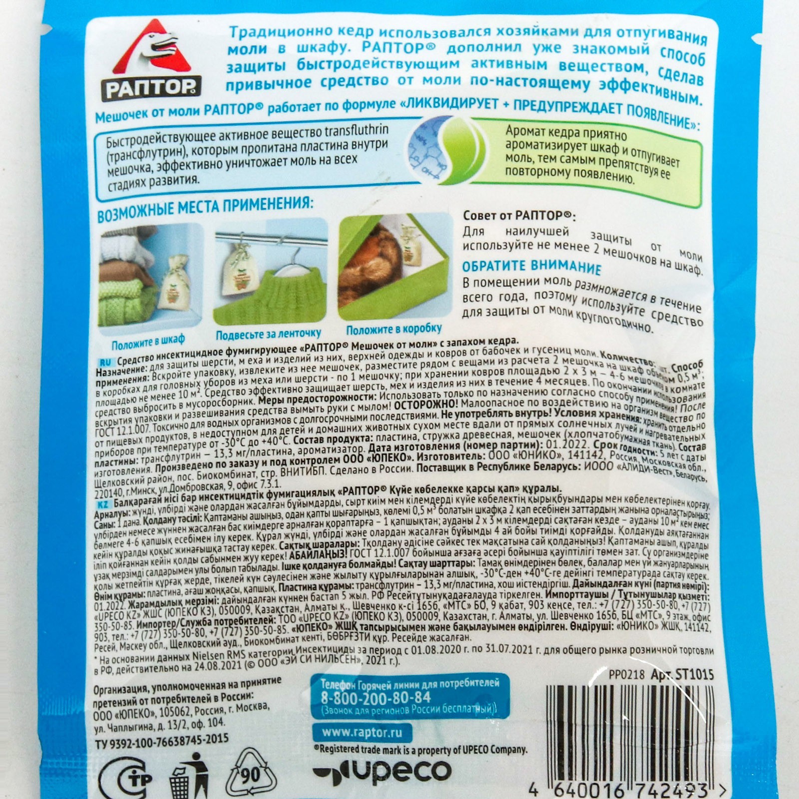 Мешочек от моли раптор, средство с запахом кедра, 1 шт