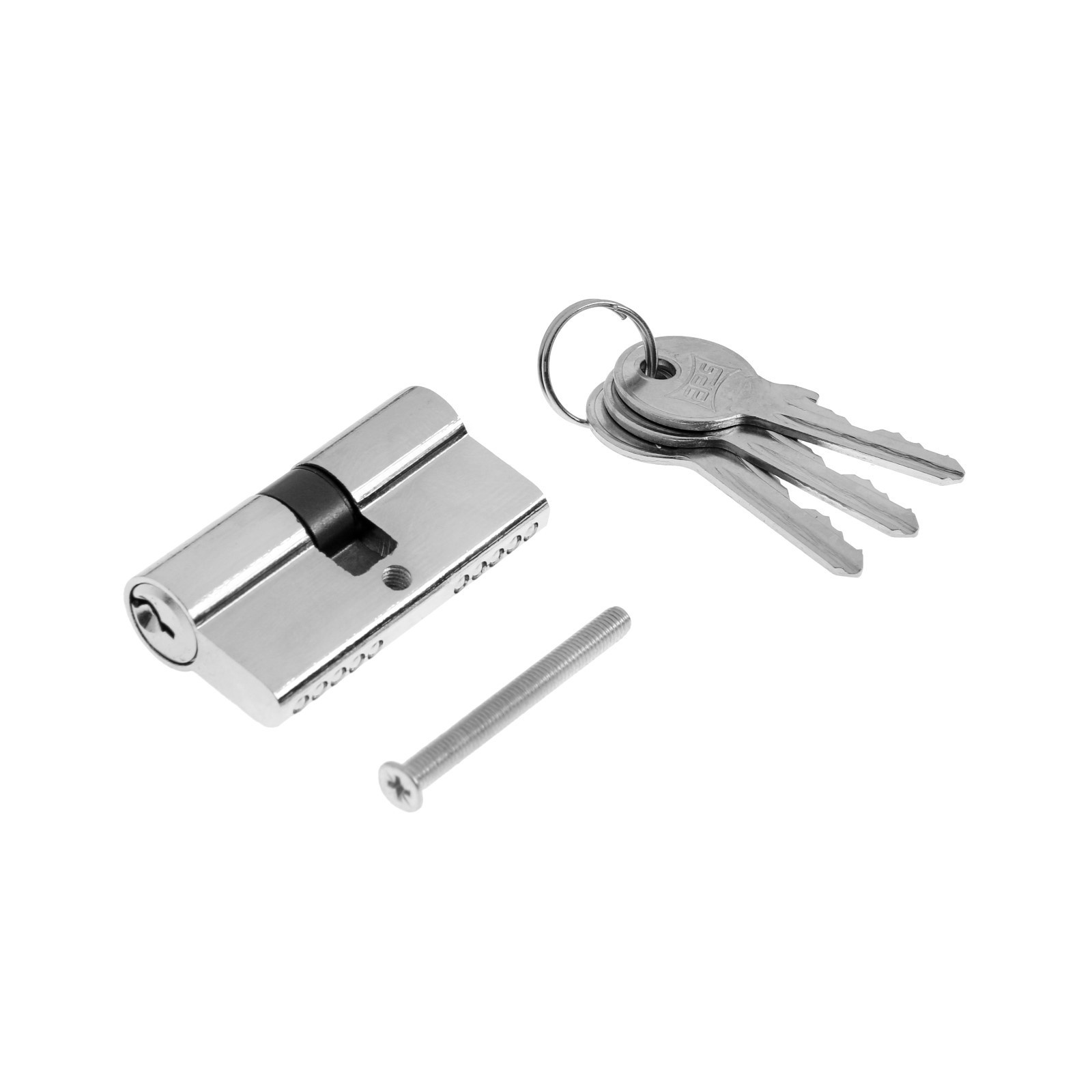 Цилиндровый механизм, 60 мм, английский ключ, 3 ключа, хром Цилиндровый механизм, 60 мм, английский ключ, 3 ключа, хром Цилиндровый механизм, 60 мм, английский ключ, 3 ключа, хром