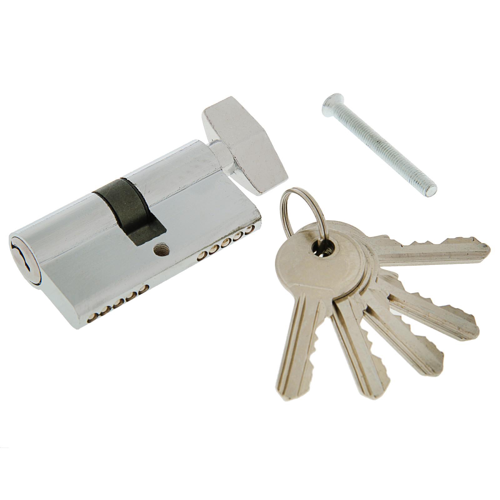 Цилиндровый механизм, 60 мм, с вертушкой, английский ключ, 5 ключей, цвет хром