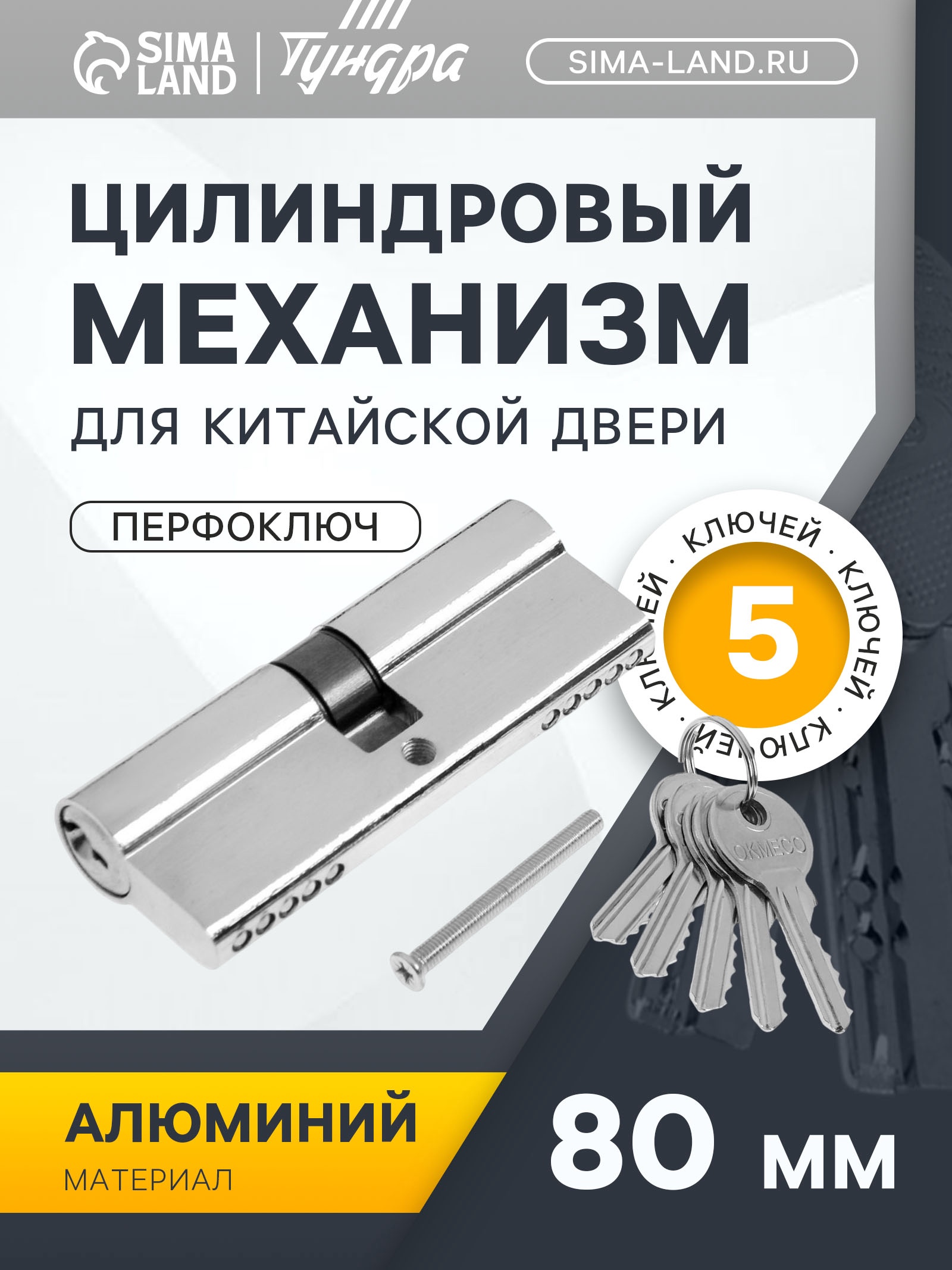 Цилиндровый механизм, 80 мм, английский ключ, 5 ключей, цвет хром