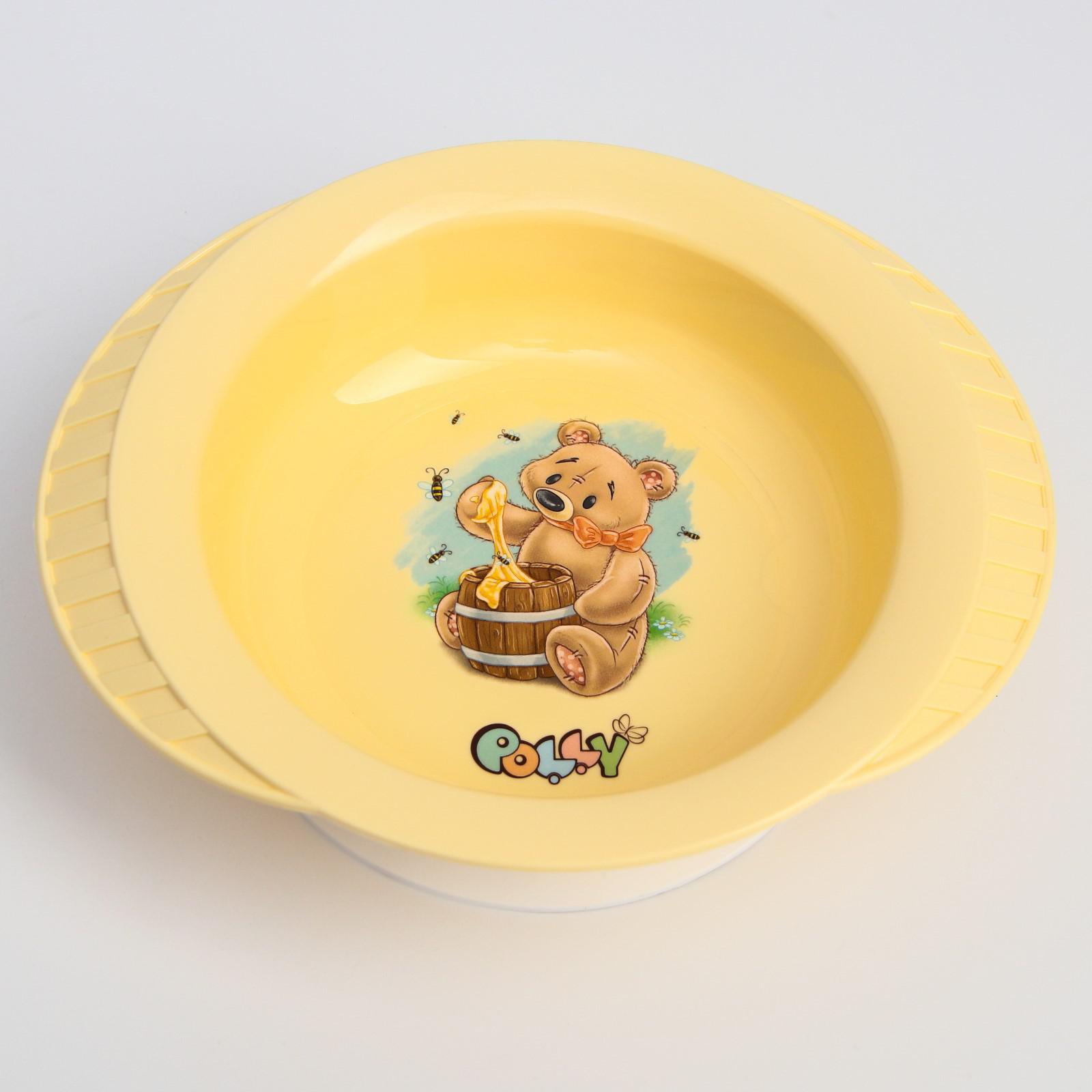 Тарелка детская глубокая на присоске Polly, рисунок микс, 350 мл, 19,5х16х5х5