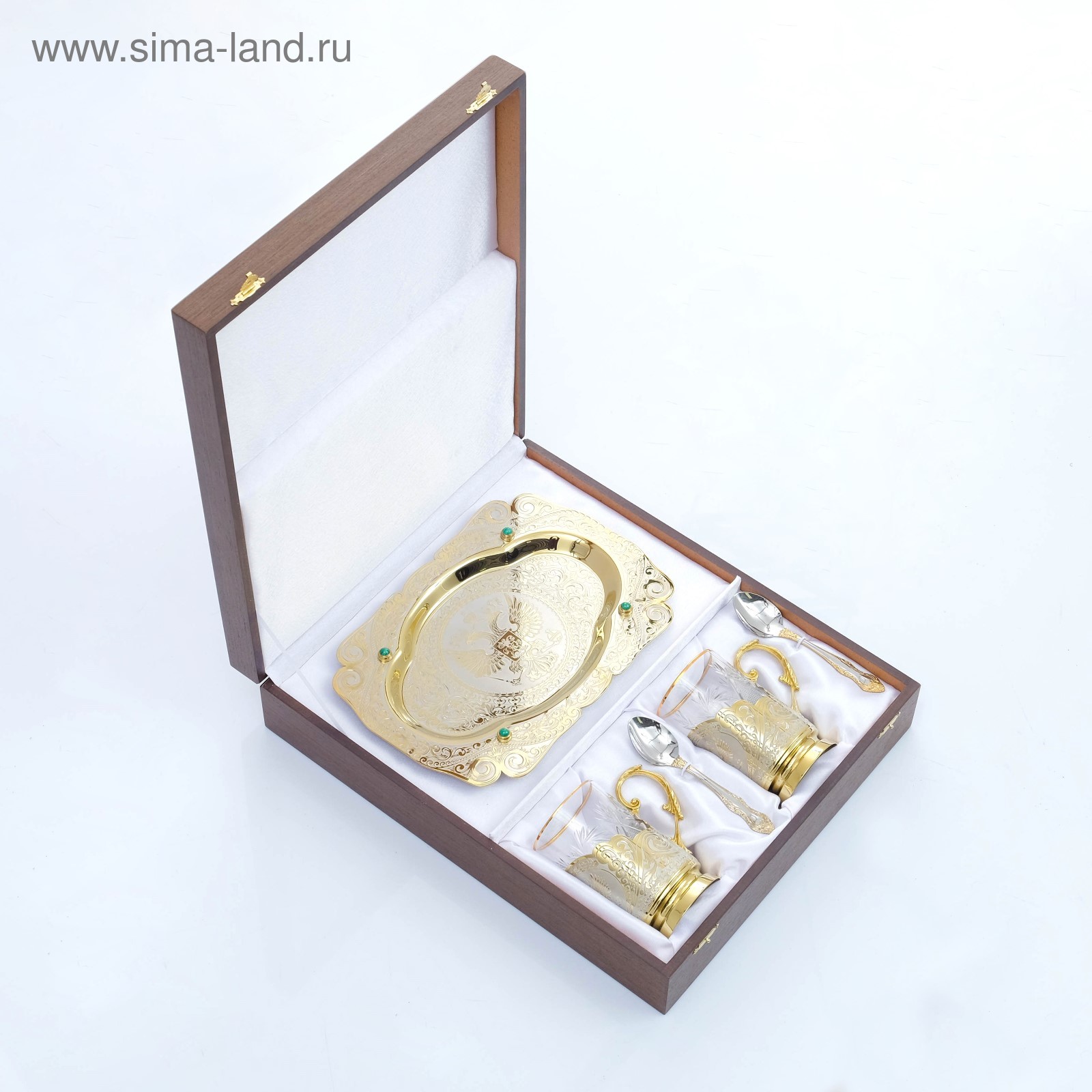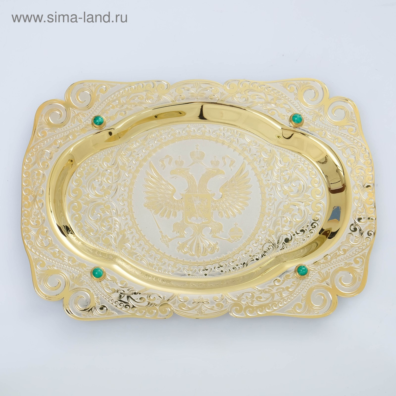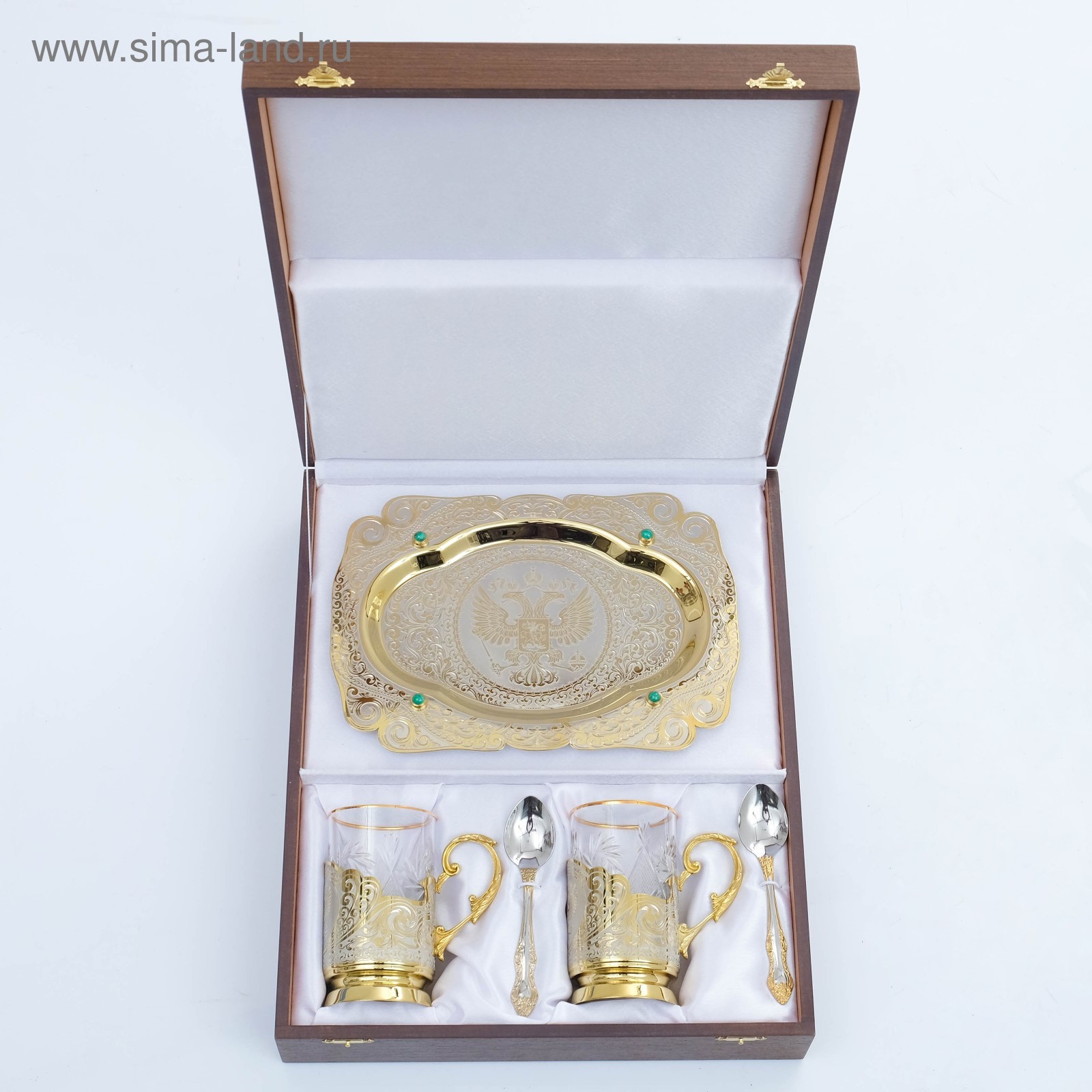 Чайный набор герб рф (2 подстаканника, 1 блюдо)
