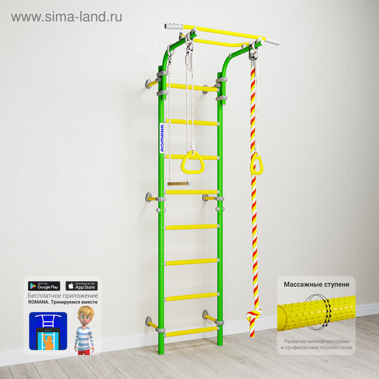 Детский спортивный комплекс next 1, цвет зелёное яблоко. Ширина, см: 86 Возраст: От 3 лет Высота, см: 227 Толщина металла, мм: 1.5 Диаметр ступени, см: 2.6 Шаг ступени, см: 26 Диаметр трубы, мм: 42 Ширина ступени, см: 49 Ширина турника, см: 86 Maксимальная нагрузка, кг: 100 Ширина комплекса, мм: 860 Материал: Металл Тип крепления: К стене Комплектация: Кольца Комплектация: Регулируемый турник Комплектация: Комплекс Комплектация: Канат Комплектация: Трапеция Высота комплекса, мм: 2270 Тип ступеней: Массажные  развернуть описание ▼