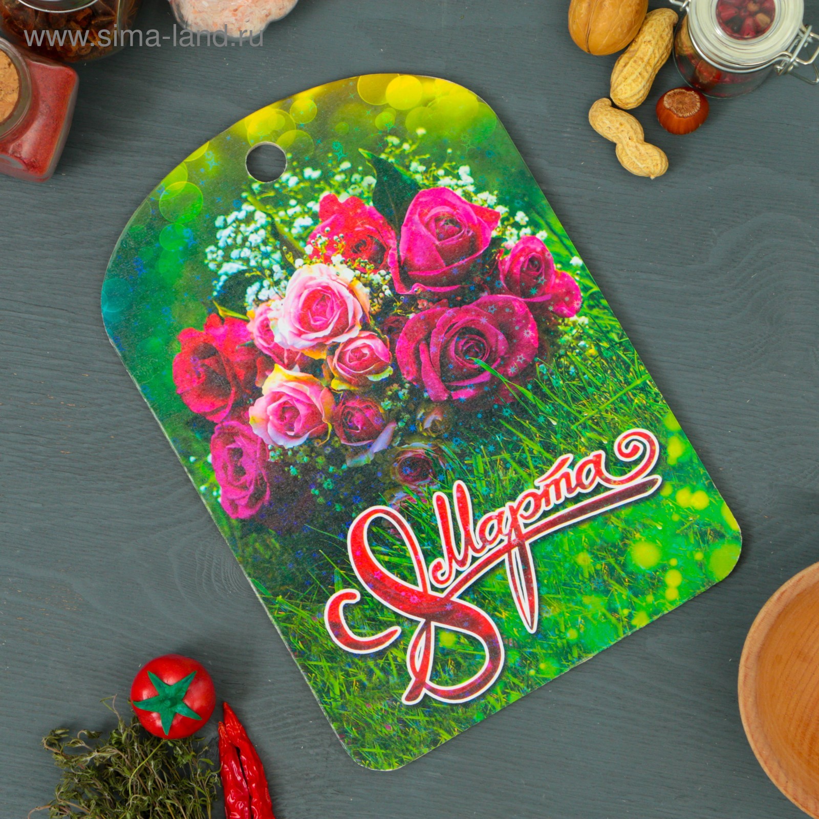 Доска разделочная большая «8 марта №4», 19,5x27,5 см