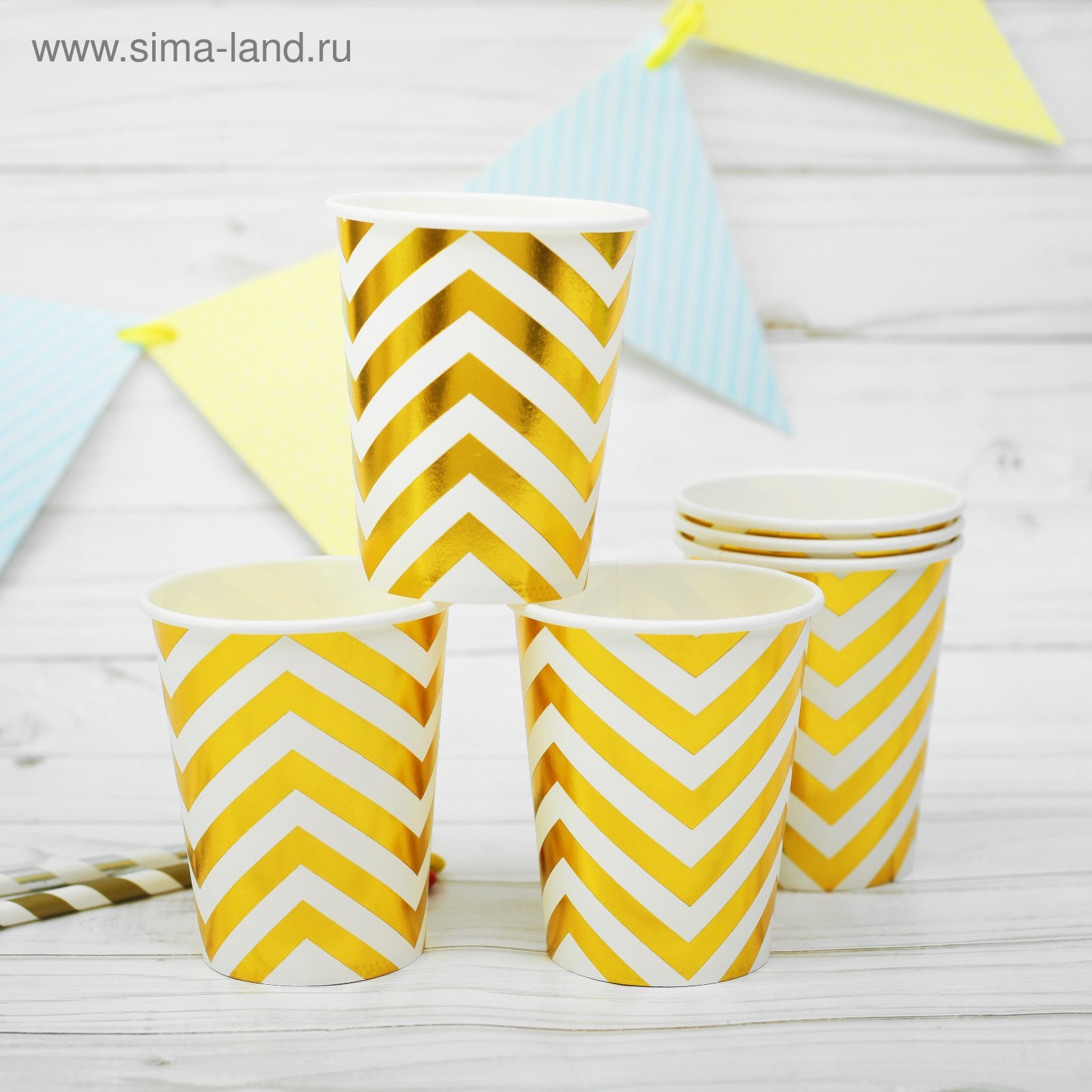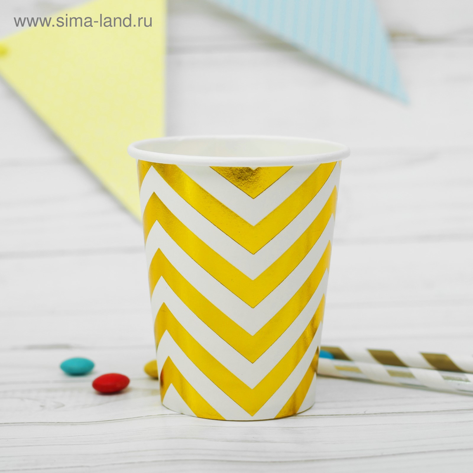 Стаканы бумажные «зигзаг», набор 6 шт., 250 мл, цвет золотой