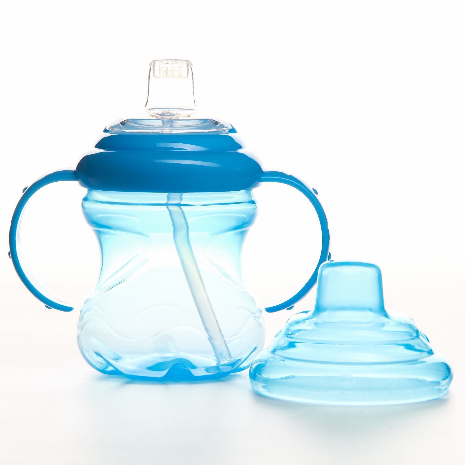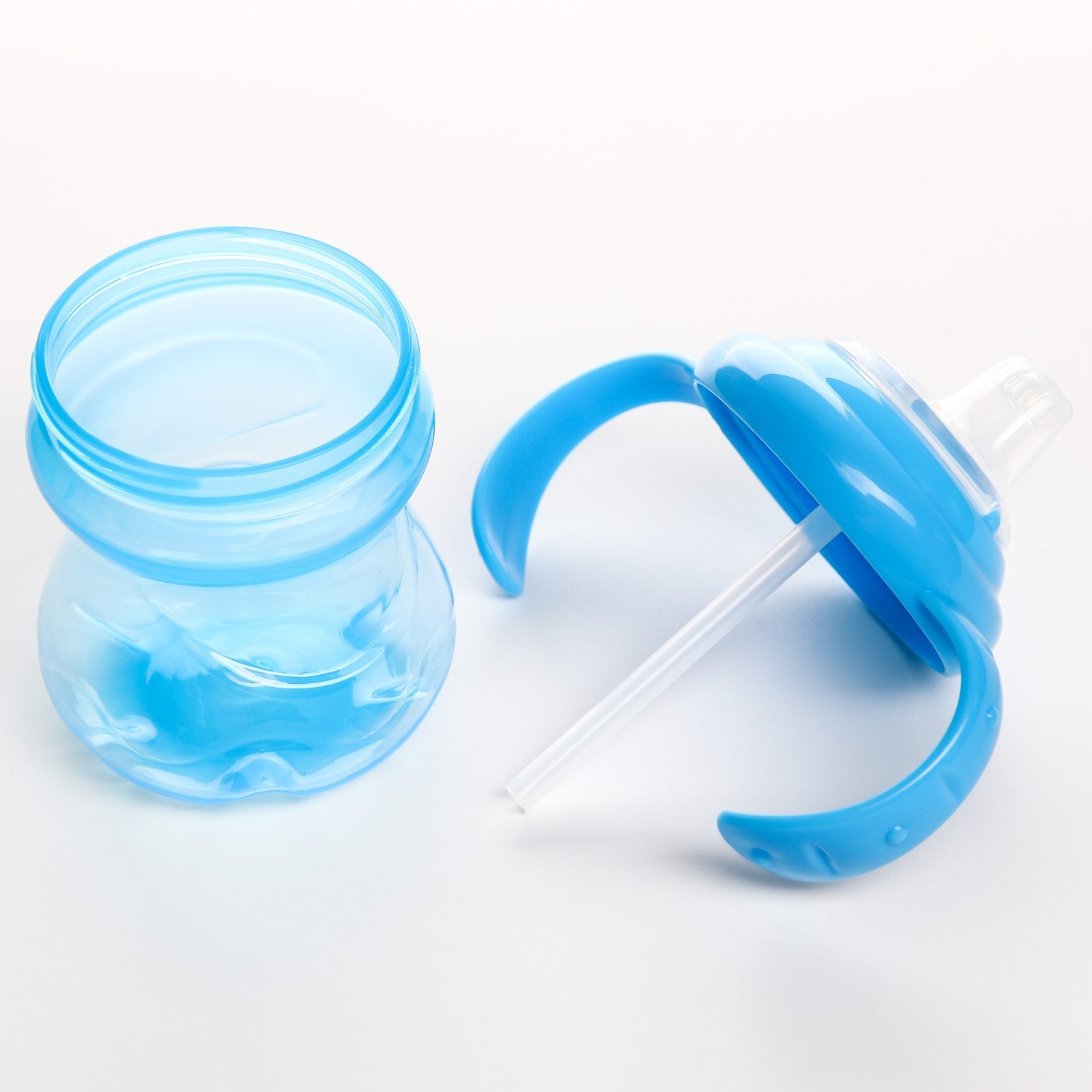 Поильник - непроливайка детский с мягким носиком, 240 мл., с ручками, цвет голубой