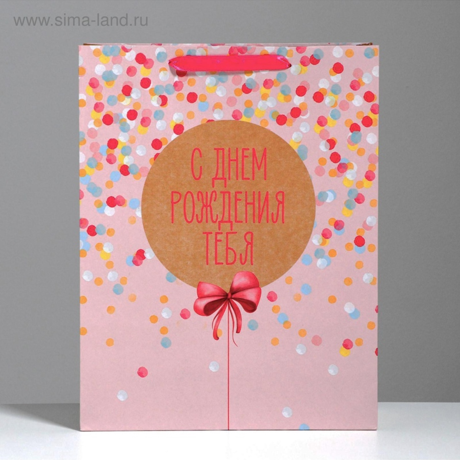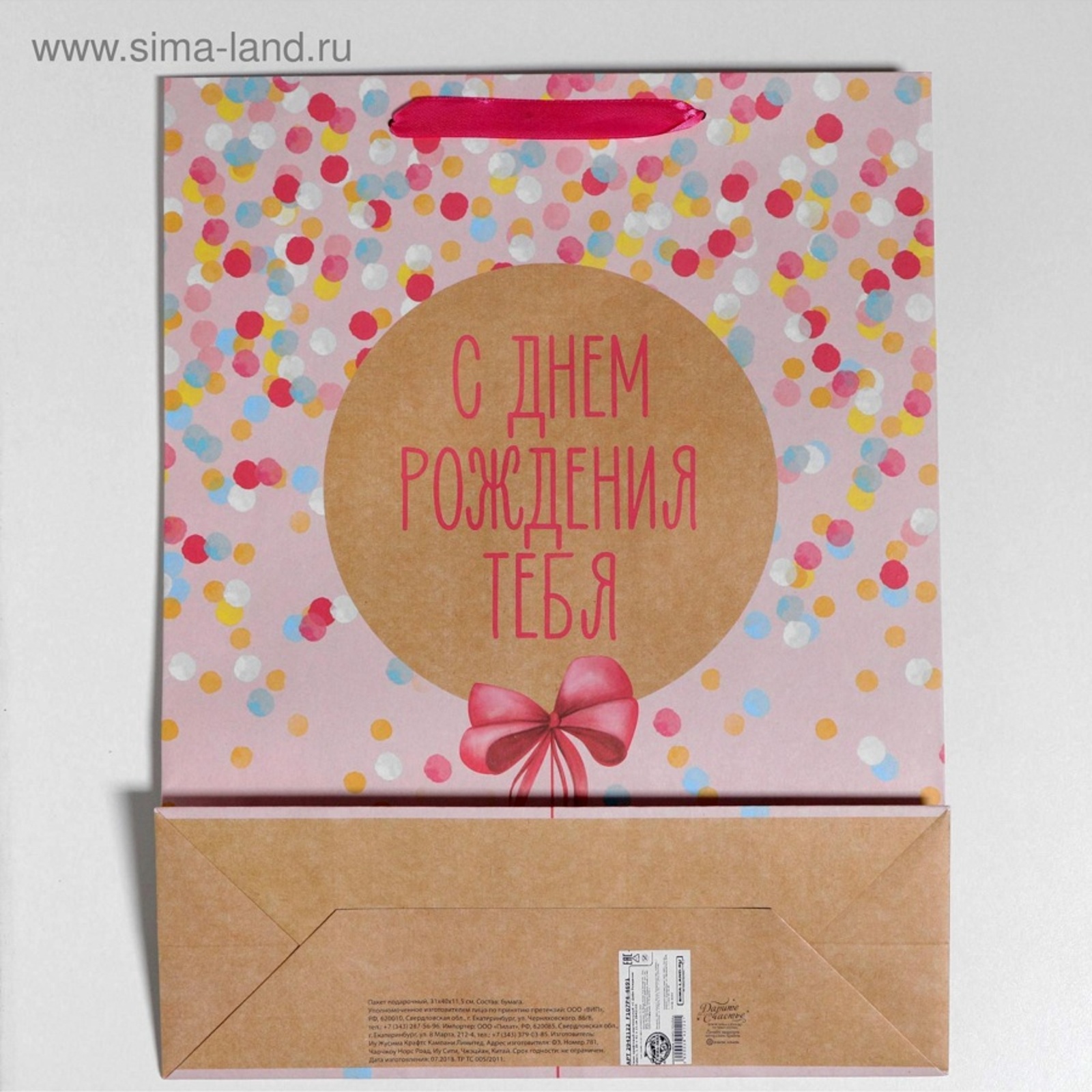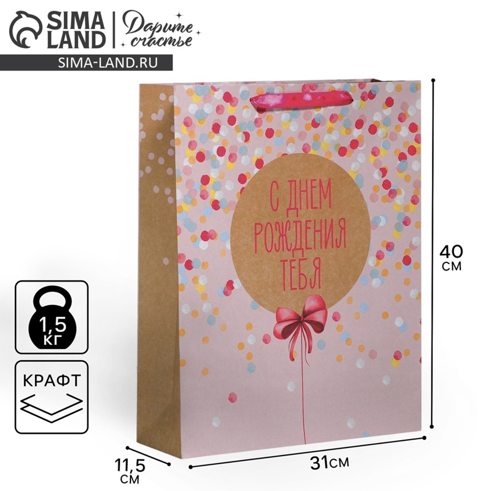 Пакет подарочный крафтовый, упаковка, «с днём рождения тебя!», 30 х 41 х 11.5 см