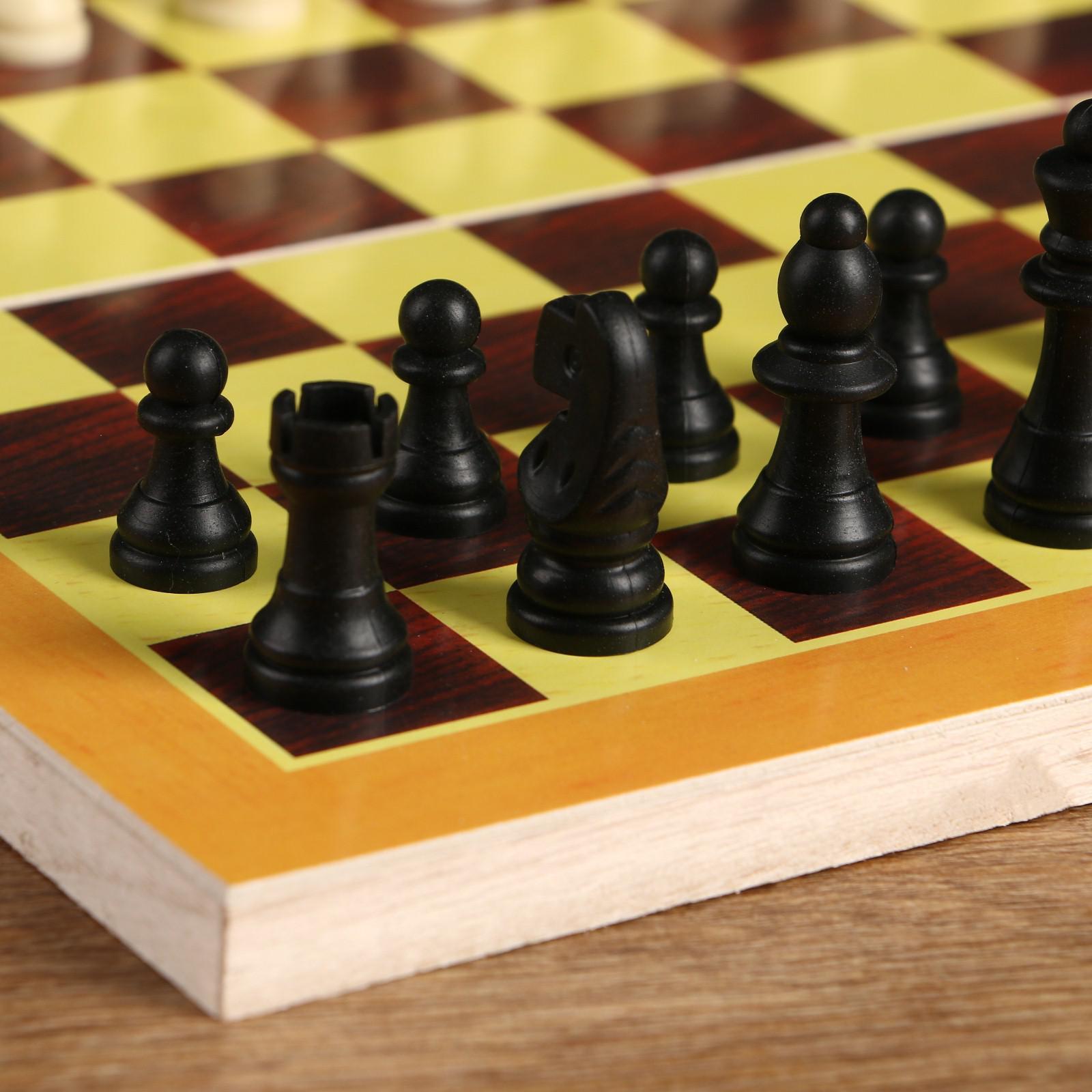 Шахматы настольные, 29 х 29 см, доска дерево, фигуры пластик. Размер, см: 29 х 29 Материал: Пластик Материал: Дерево Вид: Шахматы (доска + фигуры) Особенности: Без особенностей Материал шашек, шахмат: Пластик Материал игральной доски: Дерево  развернуть описание ▼