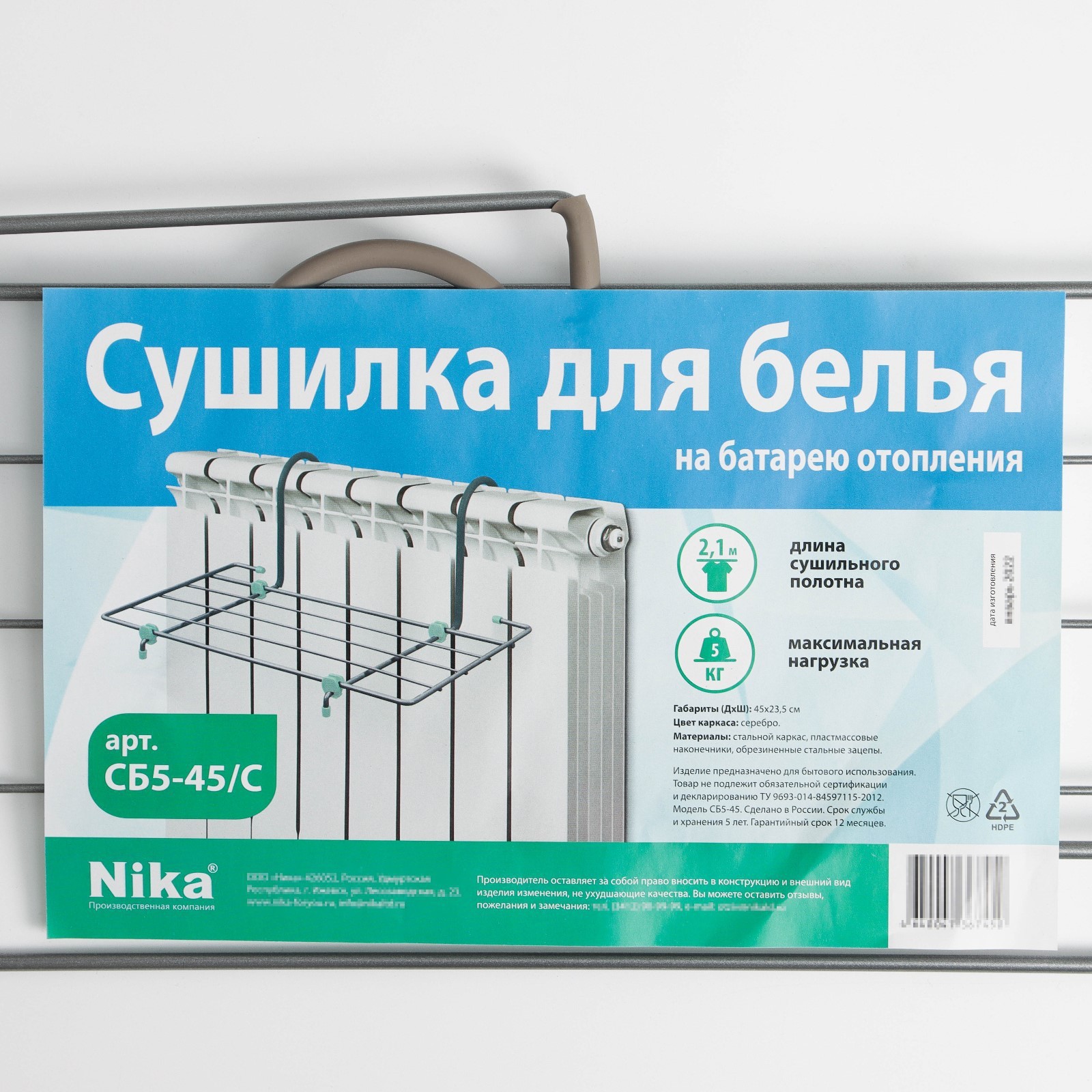 Сушилка для белья на радиатор, 45x23,5x18 см, цвет серый