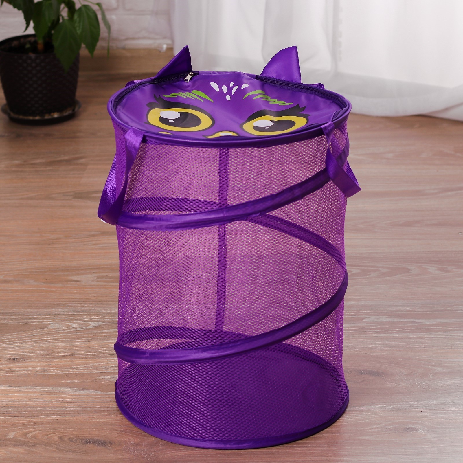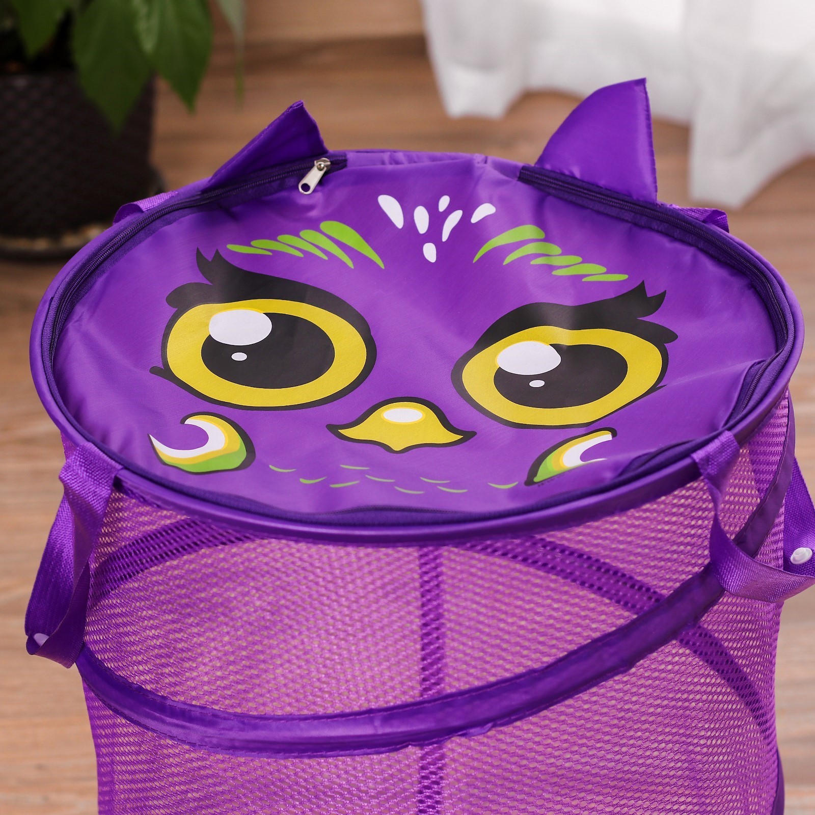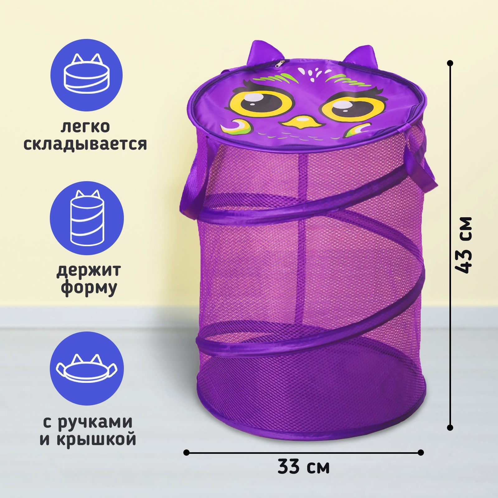 Корзина для игрушек «сова», с ручками и крышкой, 33 х 43 см. Данная корзина предназначена для хранения игрушек и других важных вещей малыша. Она поможет поддерживать чистоту в доме и приучить ребёнка к порядку. Отсутствие острых углов, прочные и лёгкие материалы делают предмет незаменимым в детской комнате. Благодаря крышке на молнии не потеряются даже мелкие детали, а безопасный металлический каркас не деформируется при использовании.