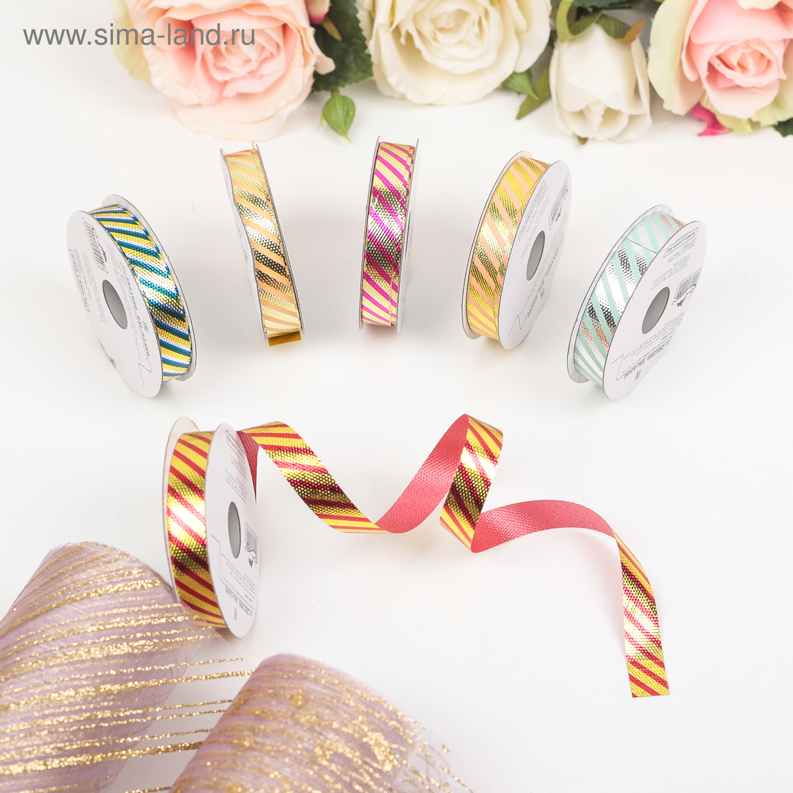 Лента упаковочная для декора и подарков, ассорти, 1.2 см 5 м