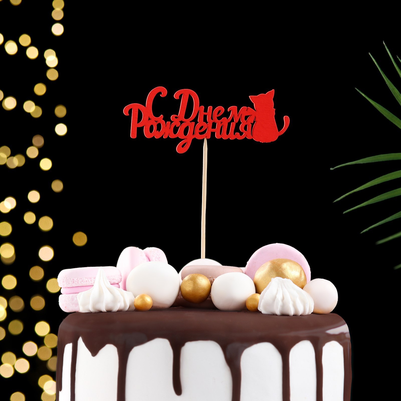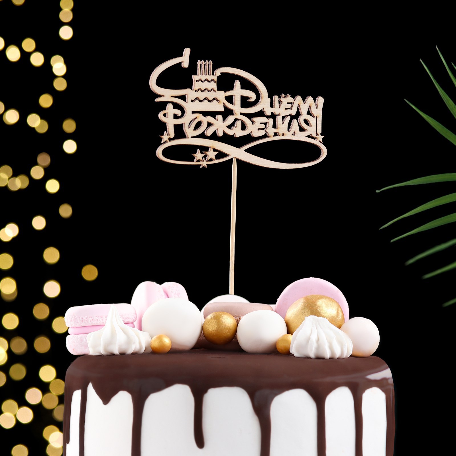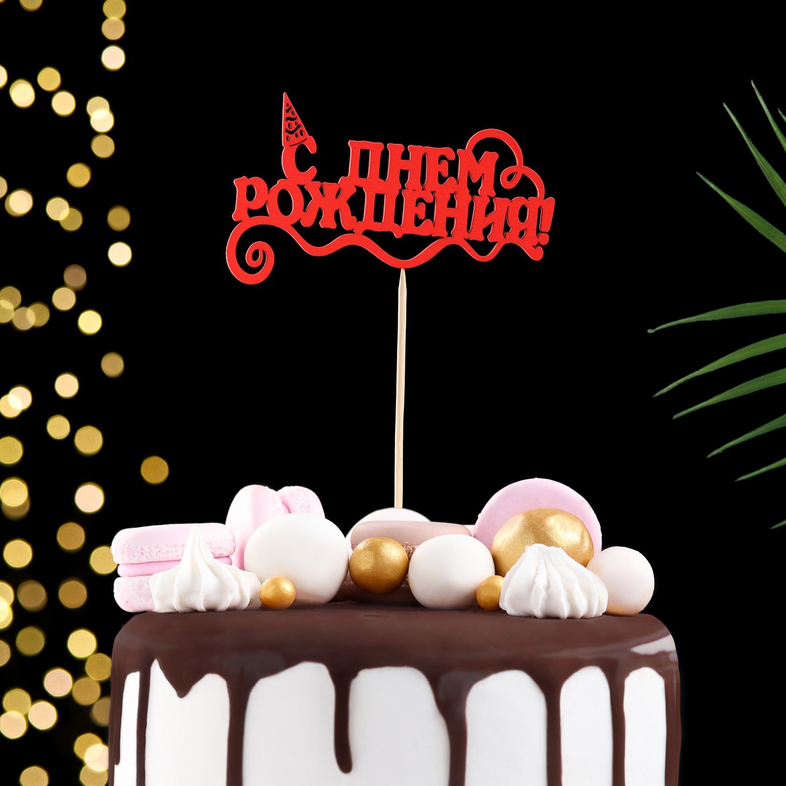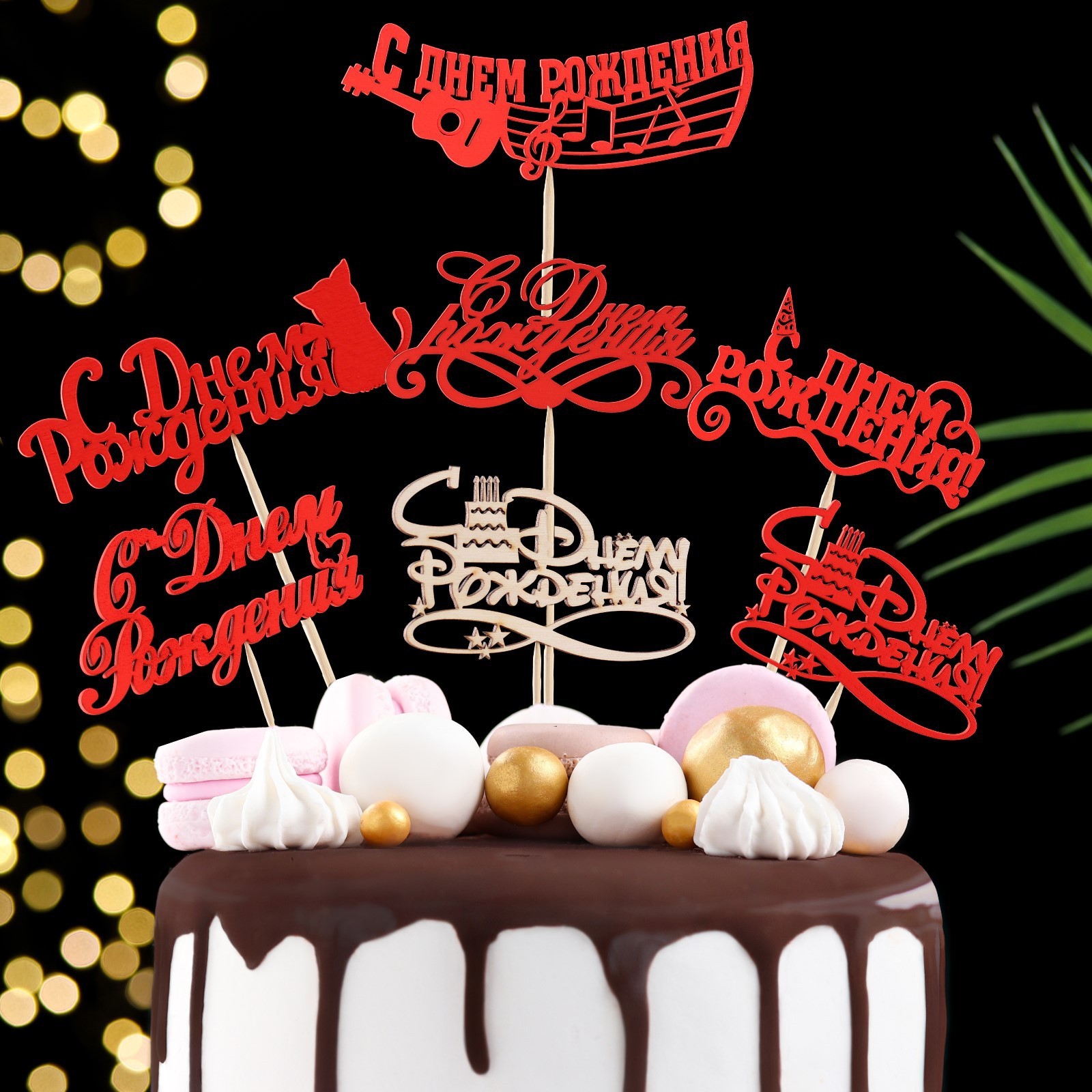 Топпер ассорти "с днём рождения", 1 шт., в фасовке 7 разных топперов дарим красиво