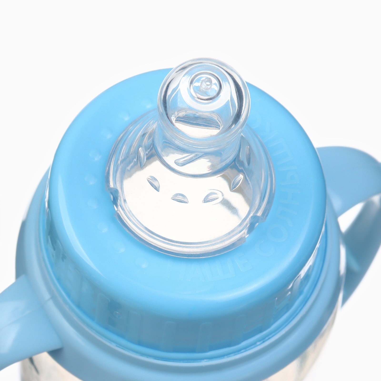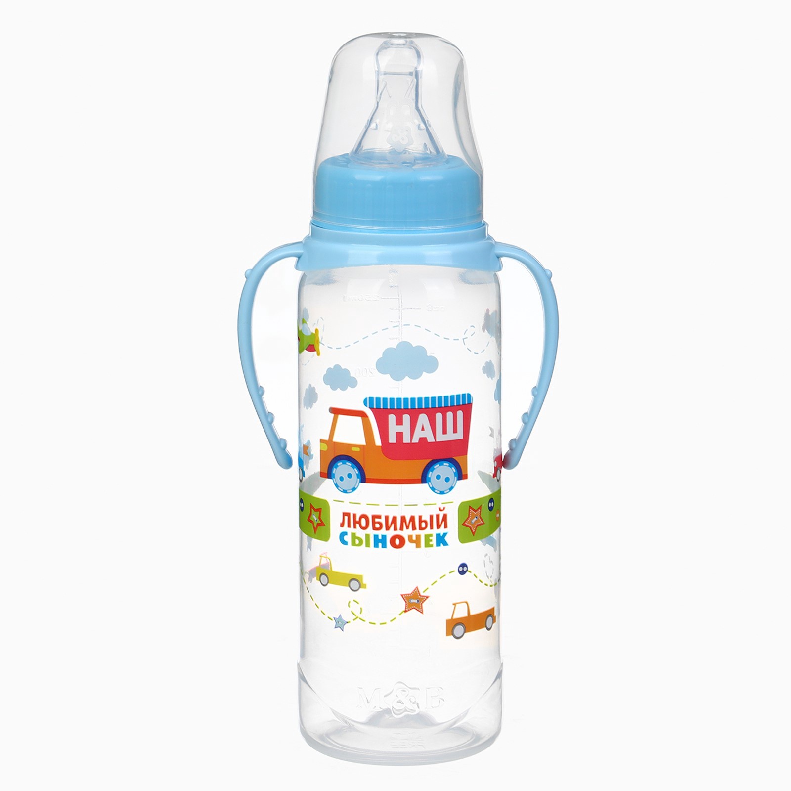 Бутылочка для кормления M&b «сыночек», классическое горло, с ручками, от 3 мес., 250 мл., голубой