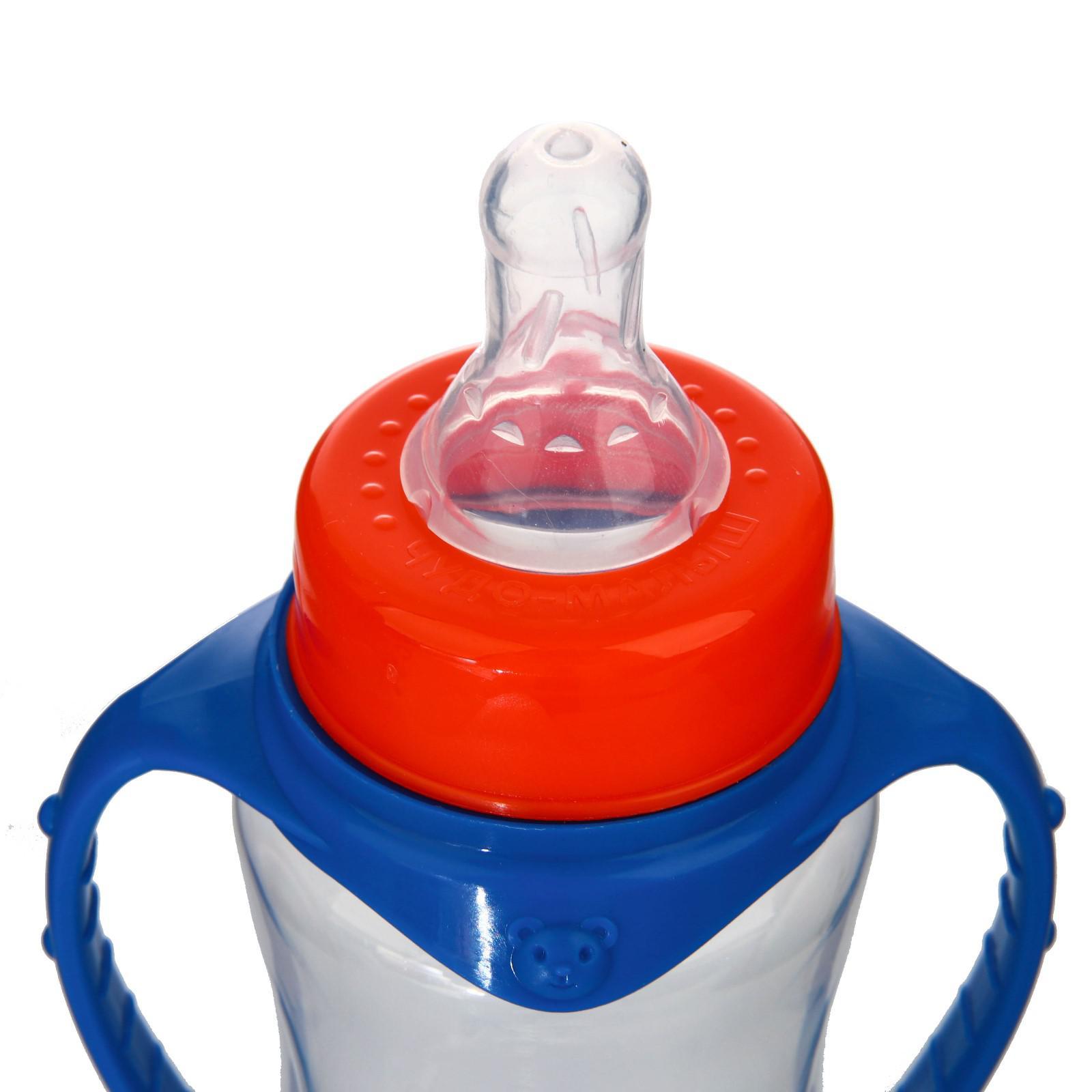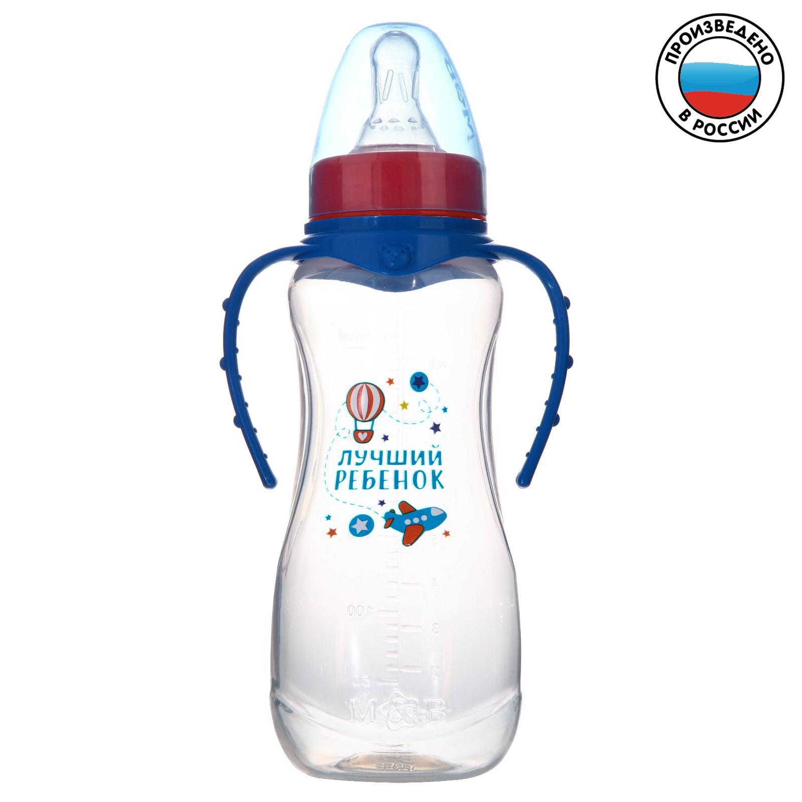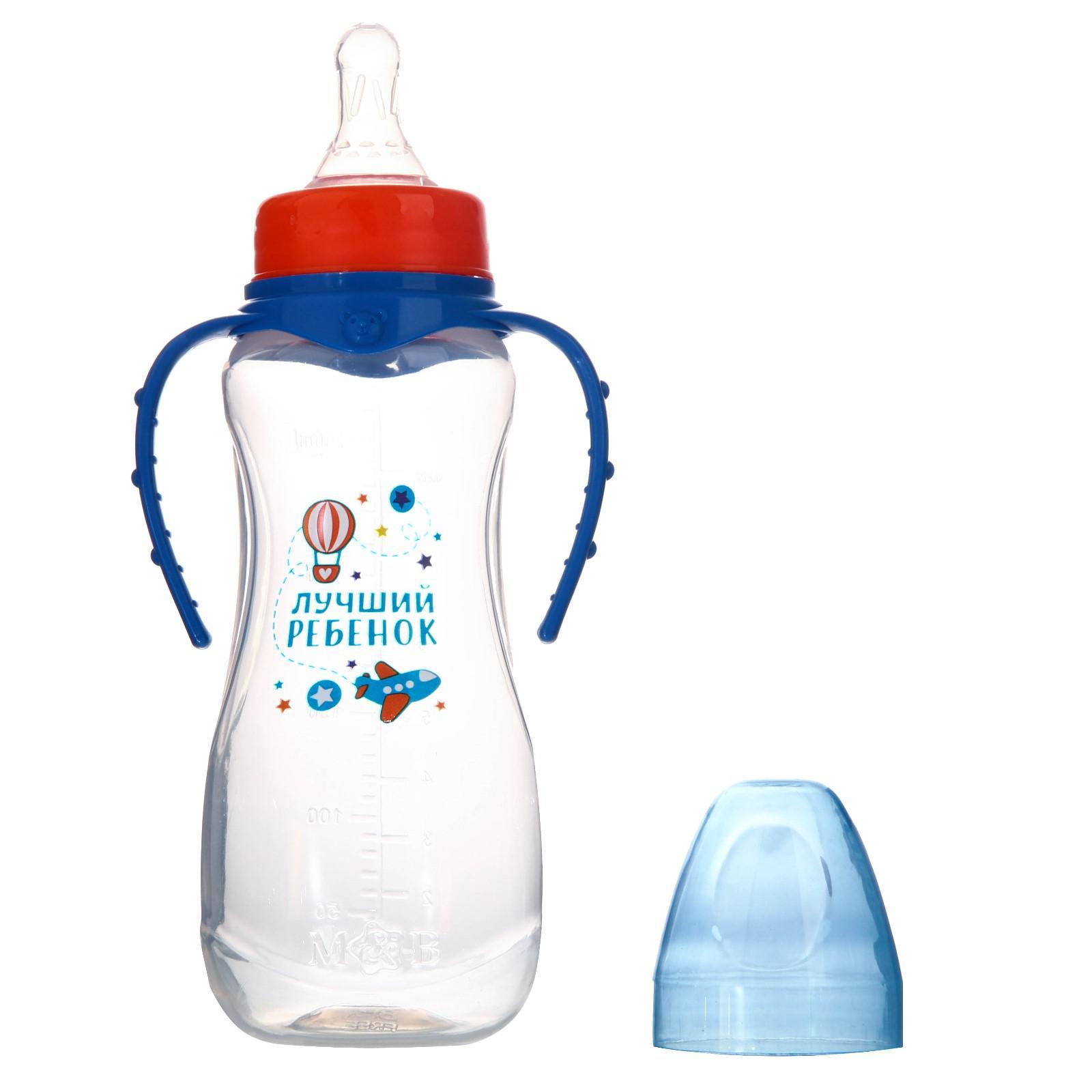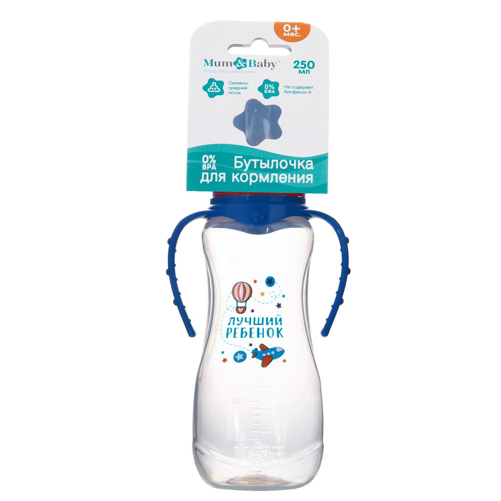 Бутылочка для кормления M&b «лучший ребёнок», классическое горло, с ручками, от 0 мес., 250 мл., приталенная, синий