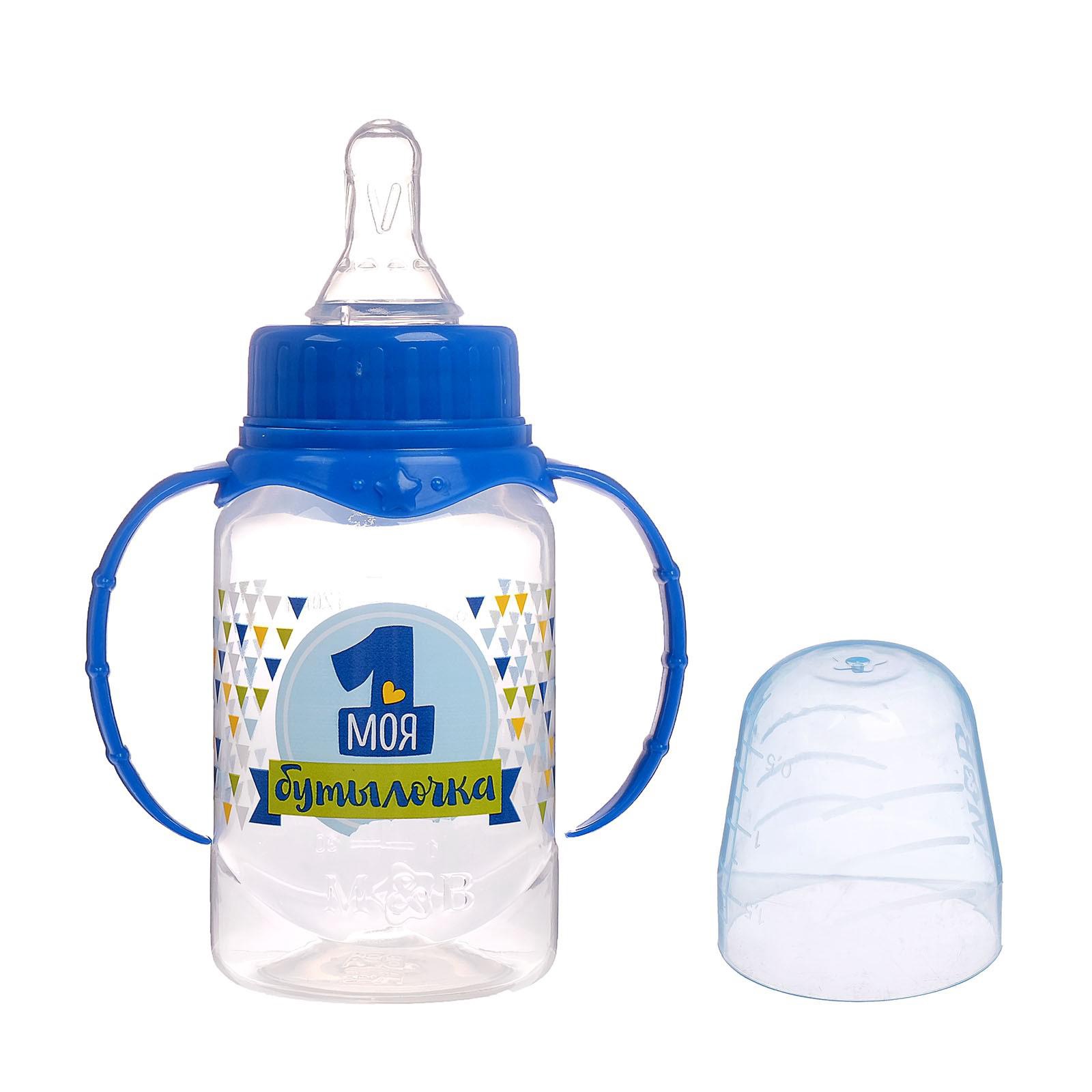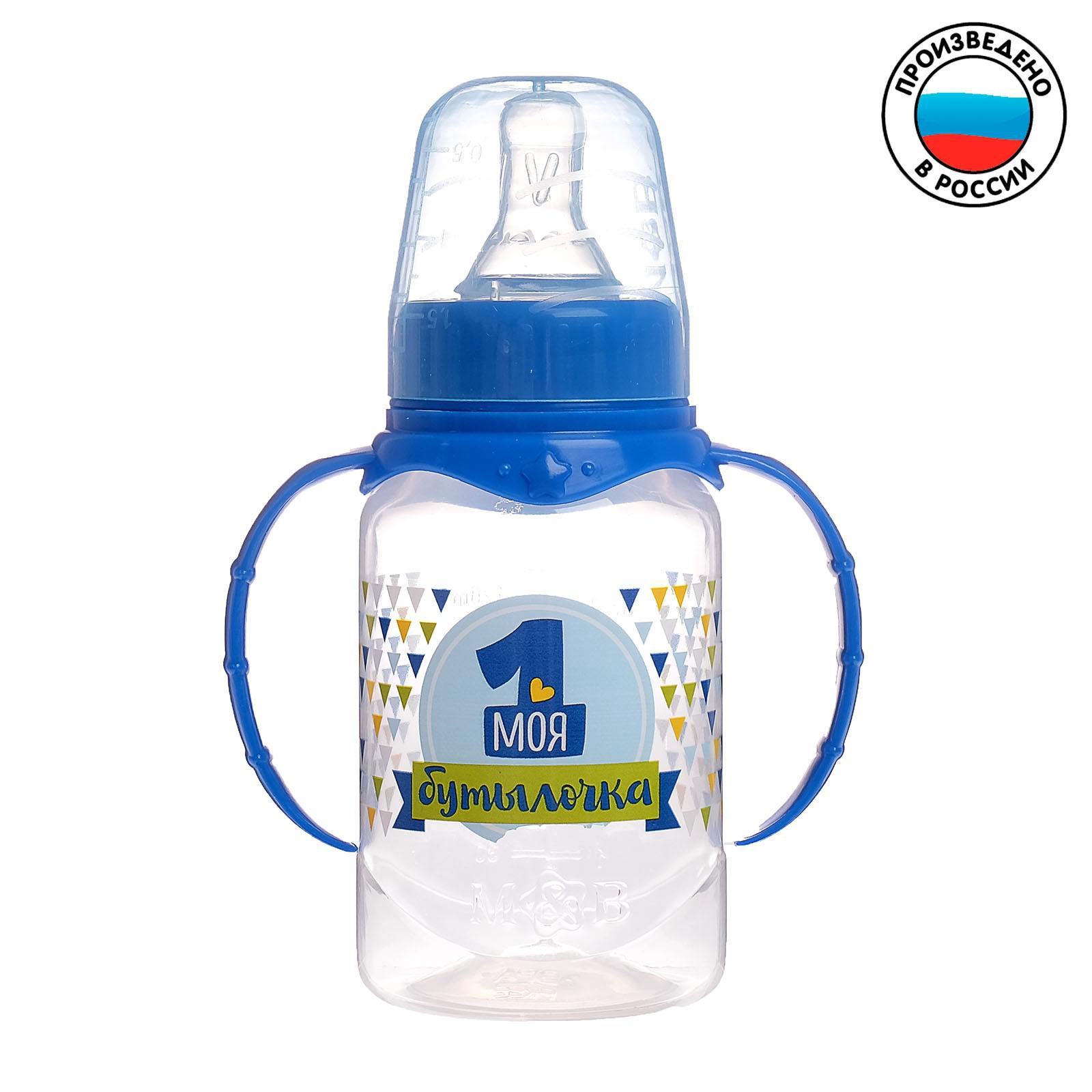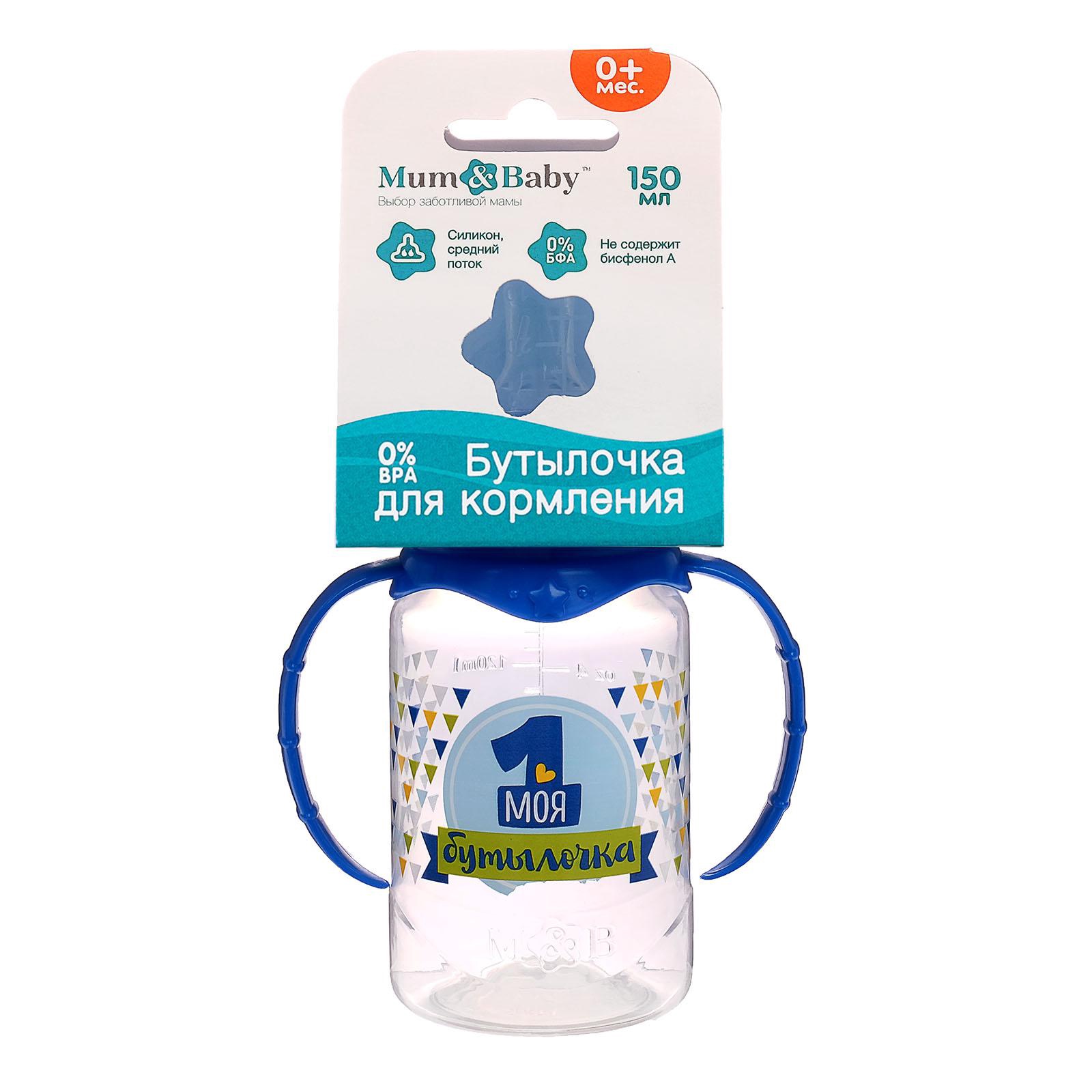 Бутылочка для кормления M&b «моя первая бутылочка» с ручками, классическое горло, от 0 мес., 150 мл., синий