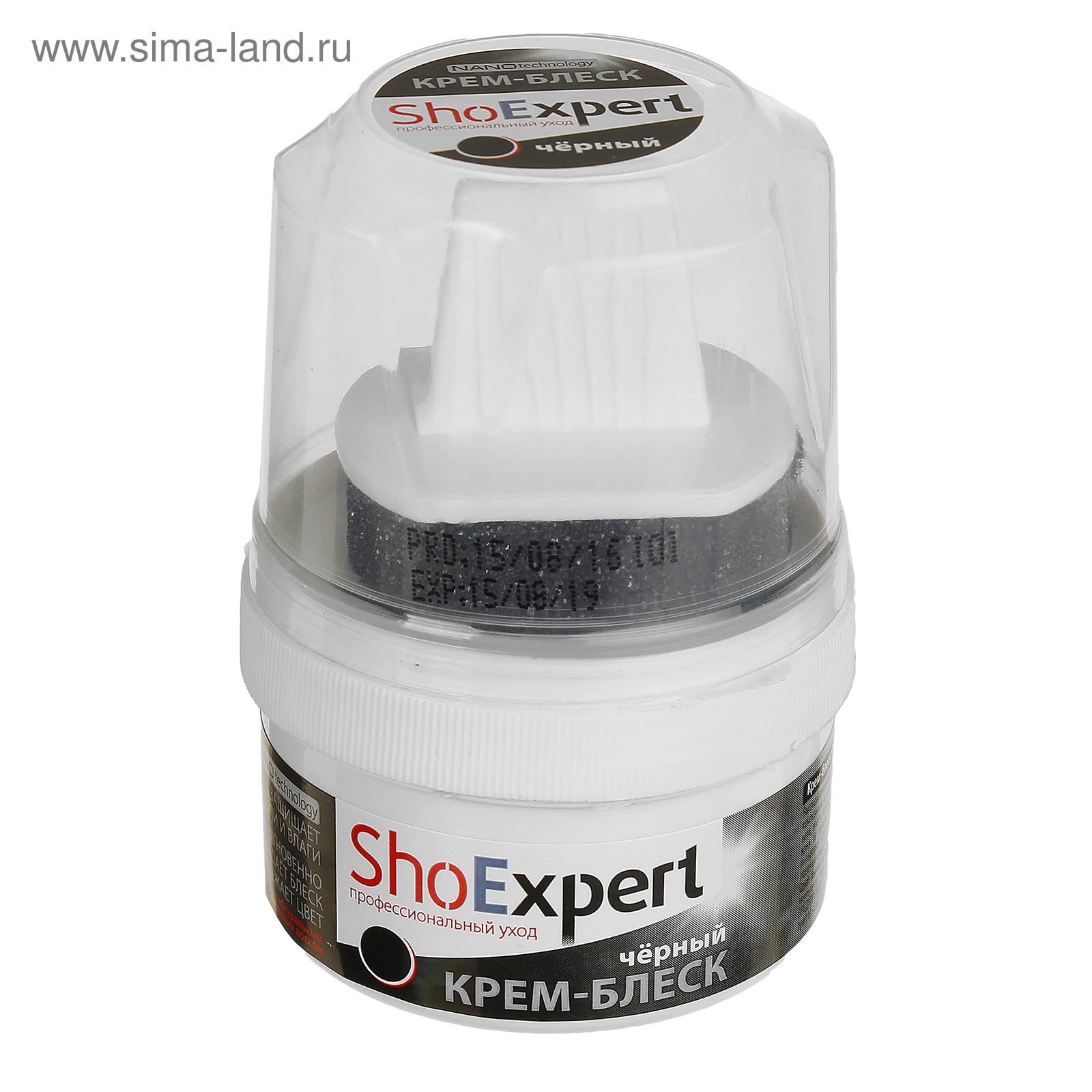Крем-блеск для обуви Shoexpert, цвет чёрный, банка с губкой, 60 мл